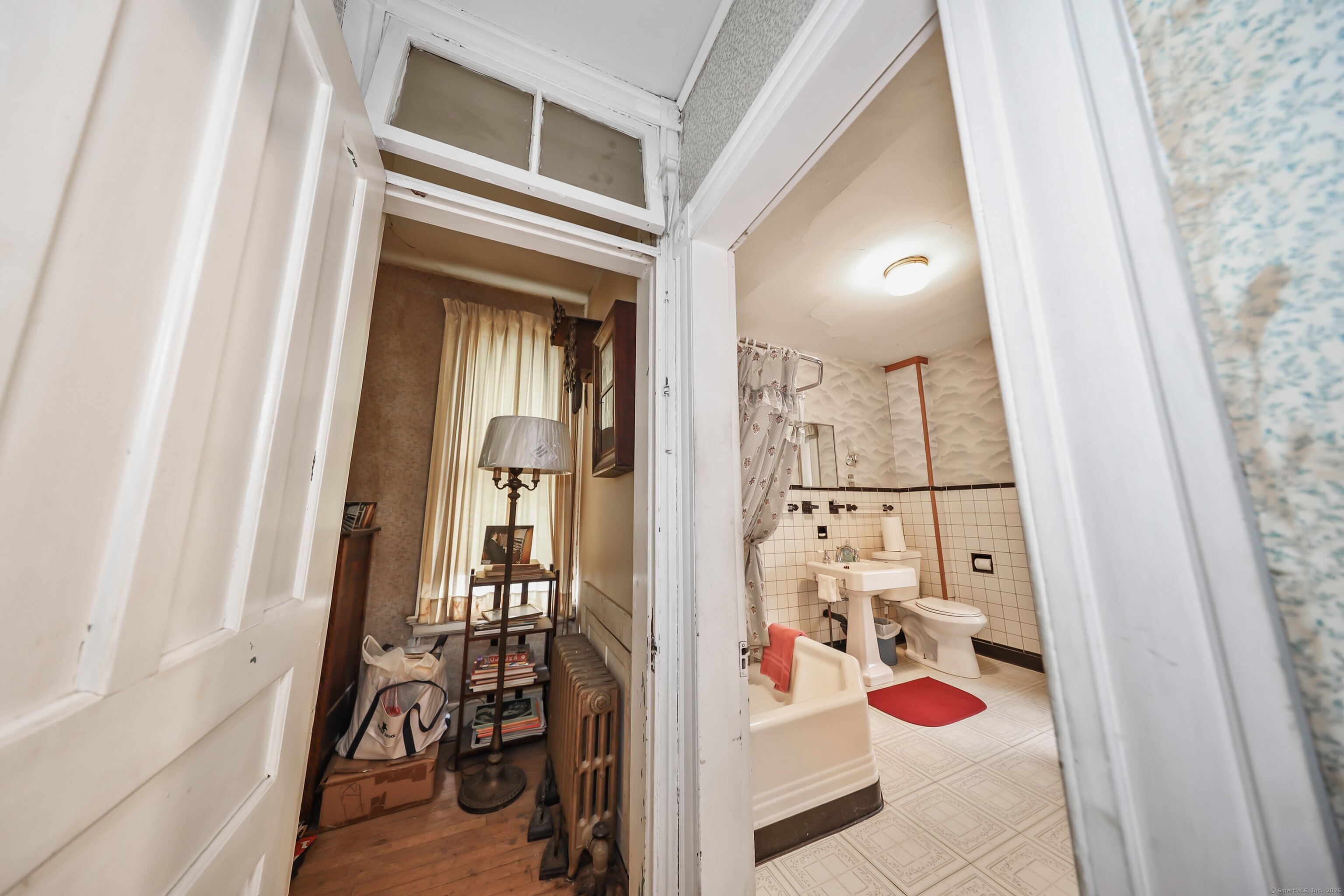 Expansive Victorian era home with a detached 2 car garage/barn with walk up loft. A handyman project ready for your restoration ideas. The bones are good here but house is in need of cleanout and complete renovation. Four second floor bedrooms, one without a closet. Plenty of room to use the current Dining Room as your fourth bedroom and utilize part of the oversized Living Room as a Dining Room. Charming front porch and rear enclosed porch with hatchway to full basement. You will not believe the size of the walk up attic! There is ample on street parking but access to the driveway and garage is from Mrytle Ave. Located near other large homes and the Ansonia library. Estate sale subject to probate approval( almost done) and sold "as is".