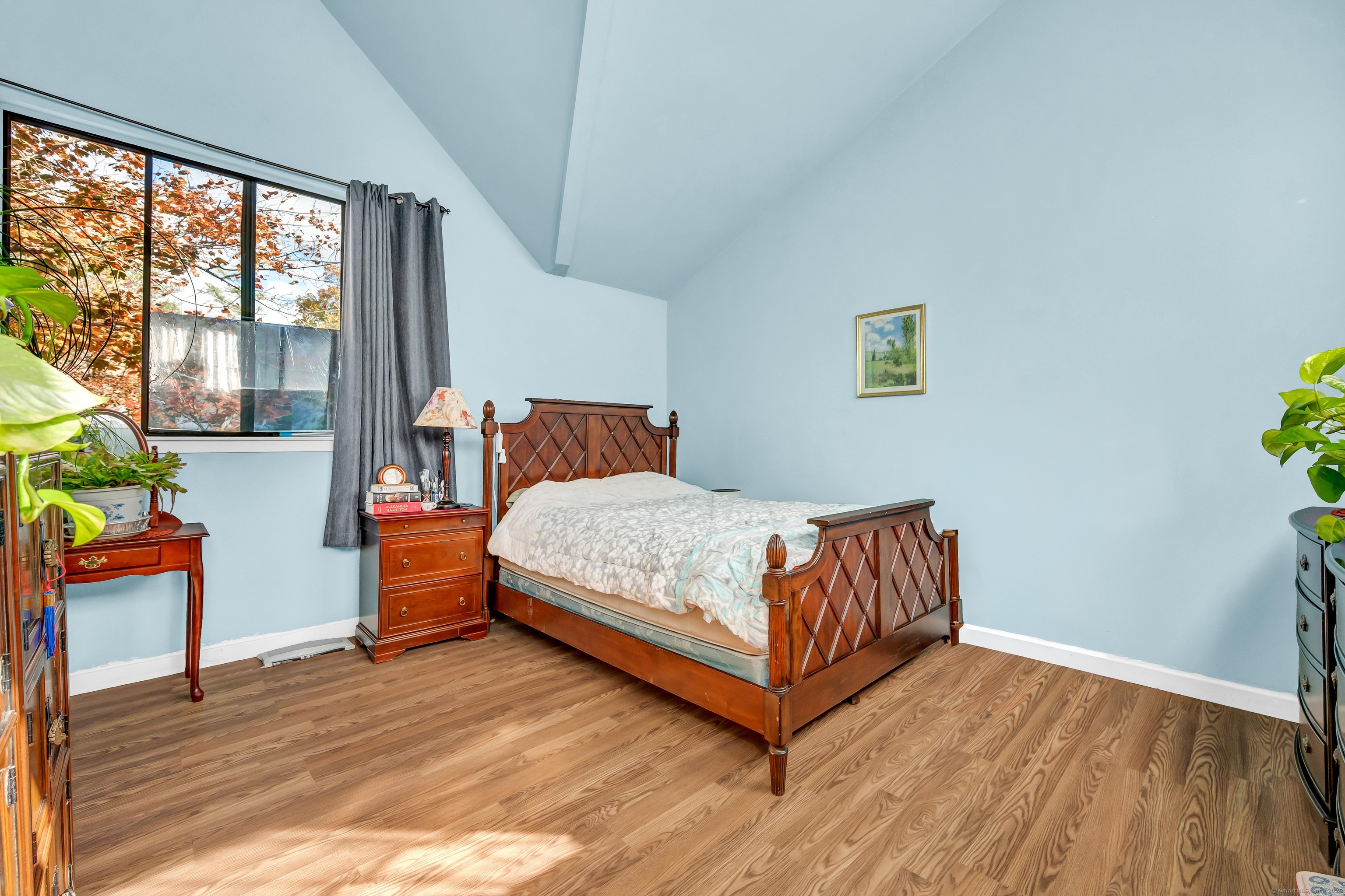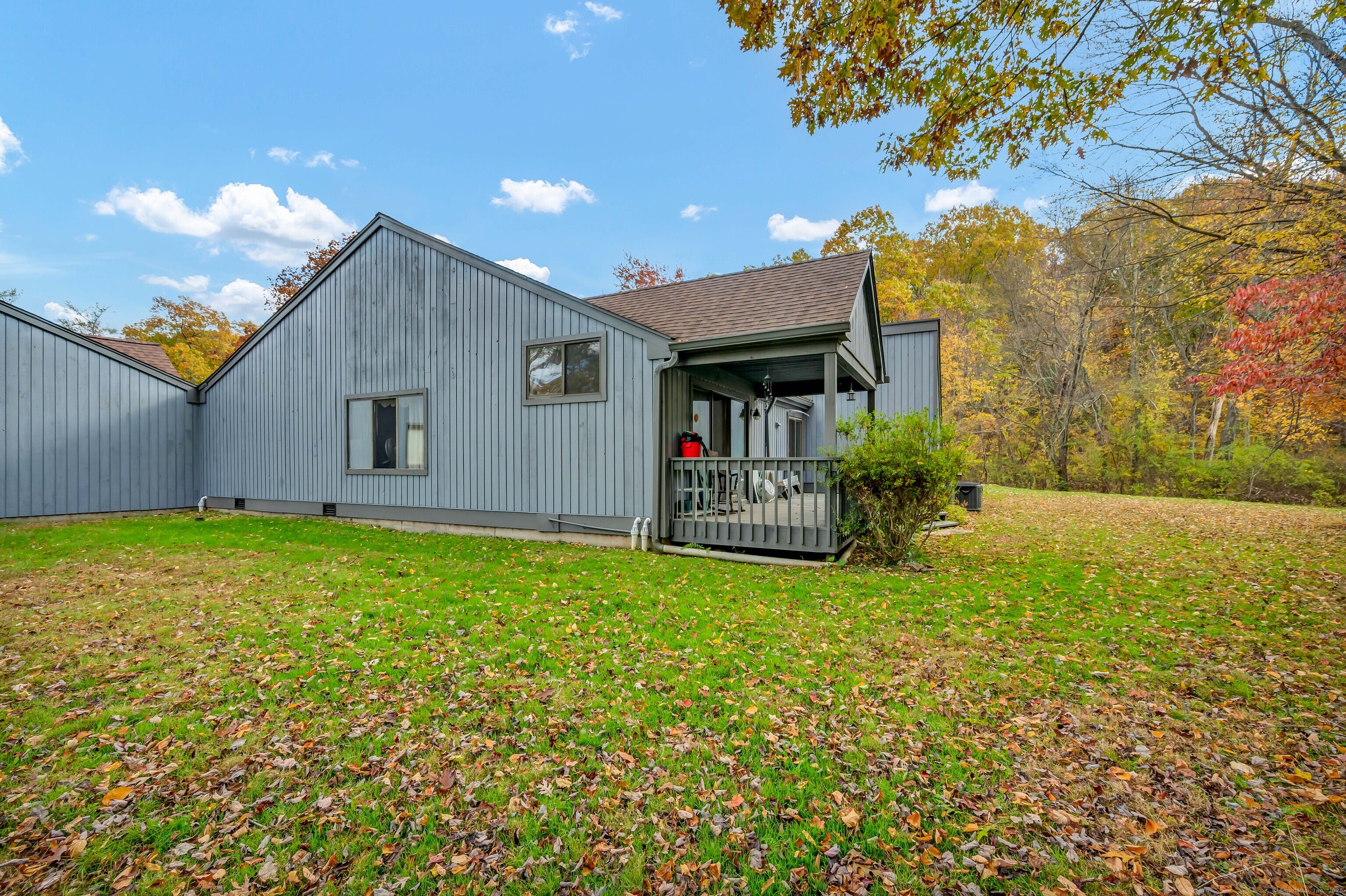 This beautiful end-unit ranch-style townhome offers an inviting open-concept layout with soaring vaulted ceilings and an oversized private deck. Perfectly situated on a quiet corner lot, it provides both privacy and charm. The home welcomes you through a gated front courtyard, ideal for a private garden or sitting area. Inside, you'll find a spacious living room featuring a fireplace with built-in bookshelves, creating a warm and cozy atmosphere. The main level includes two large bedrooms, including a primary suite with its own full bathroom. The kitchen and dining area open to the expansive deck and private backyard, perfect for outdoor dining and entertaining. Additional features include an attached garage, ample guest parking, and access to a private community lake where you can enjoy peaceful walks and summer evenings. Whether you're looking to downsize or invest in a rental property, this ranch-style townhome in a beautiful, quiet neighborhood is one you don't want to miss!