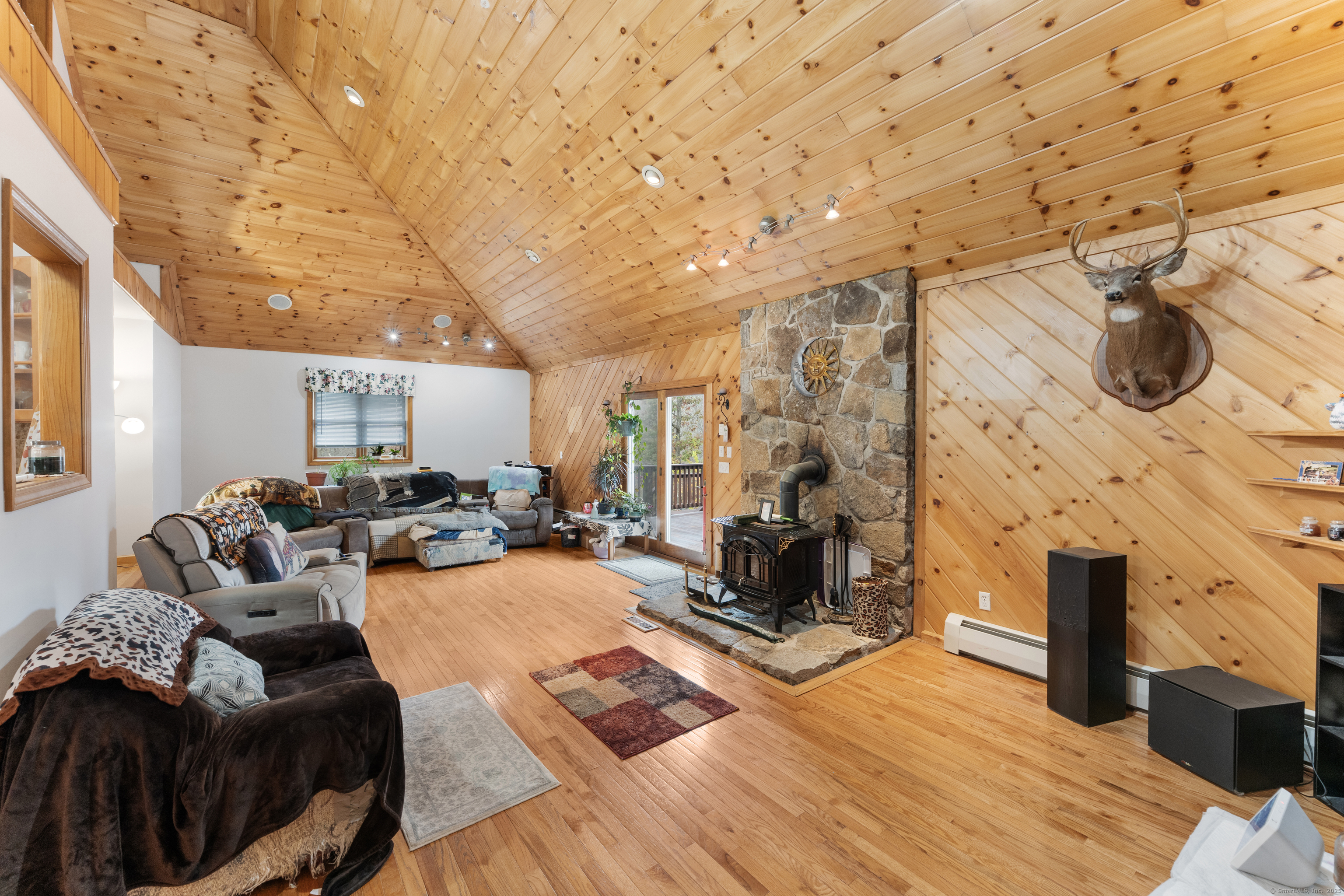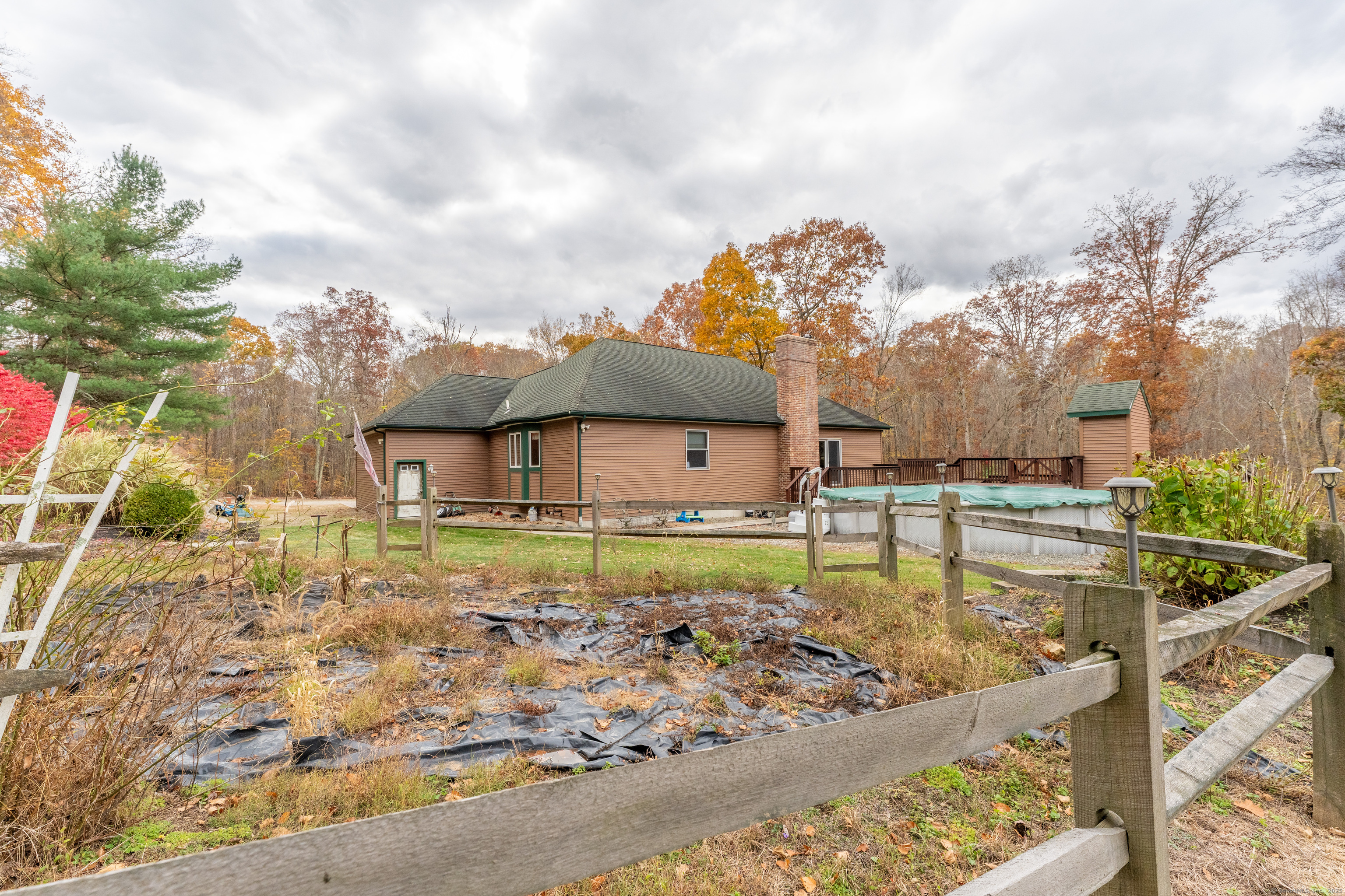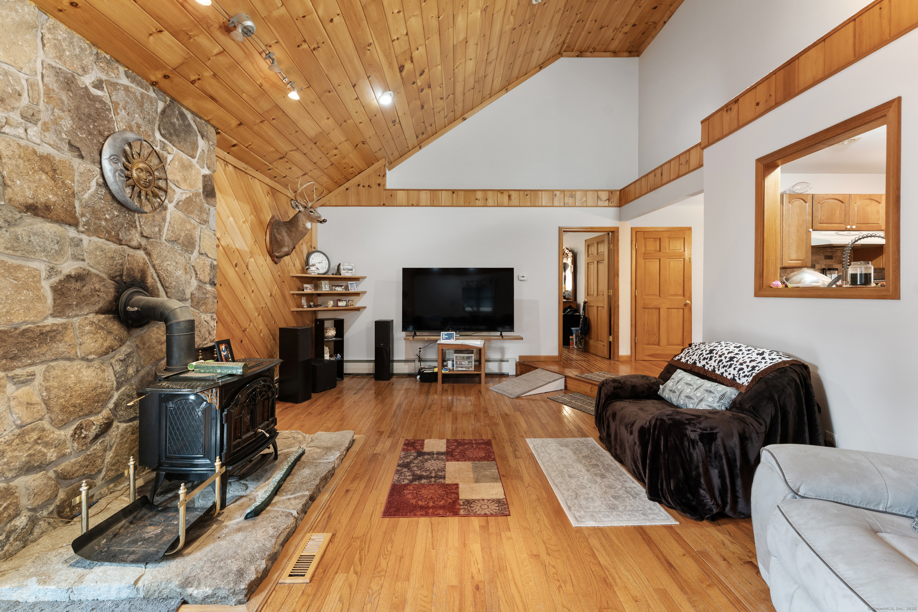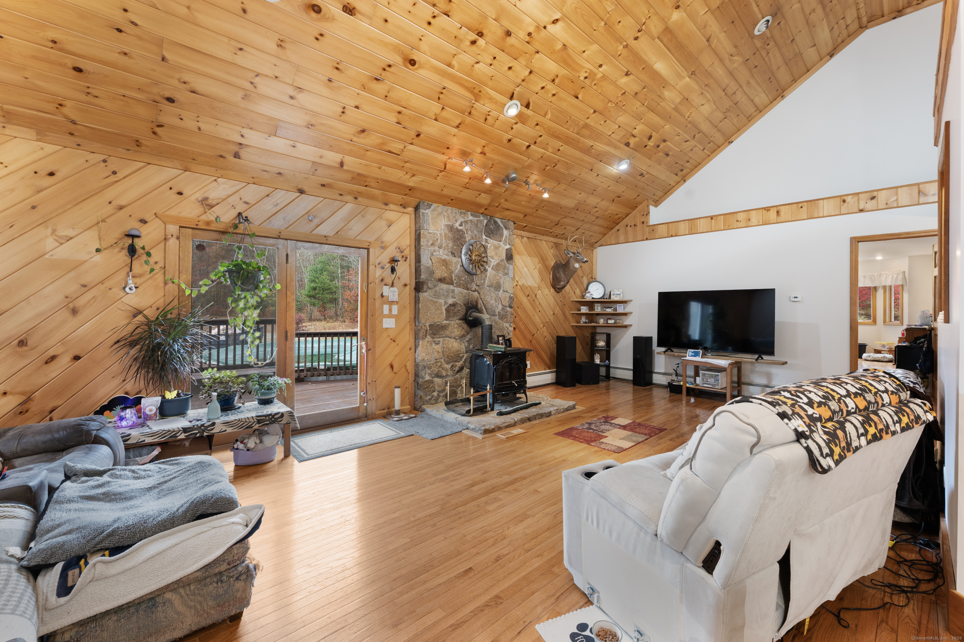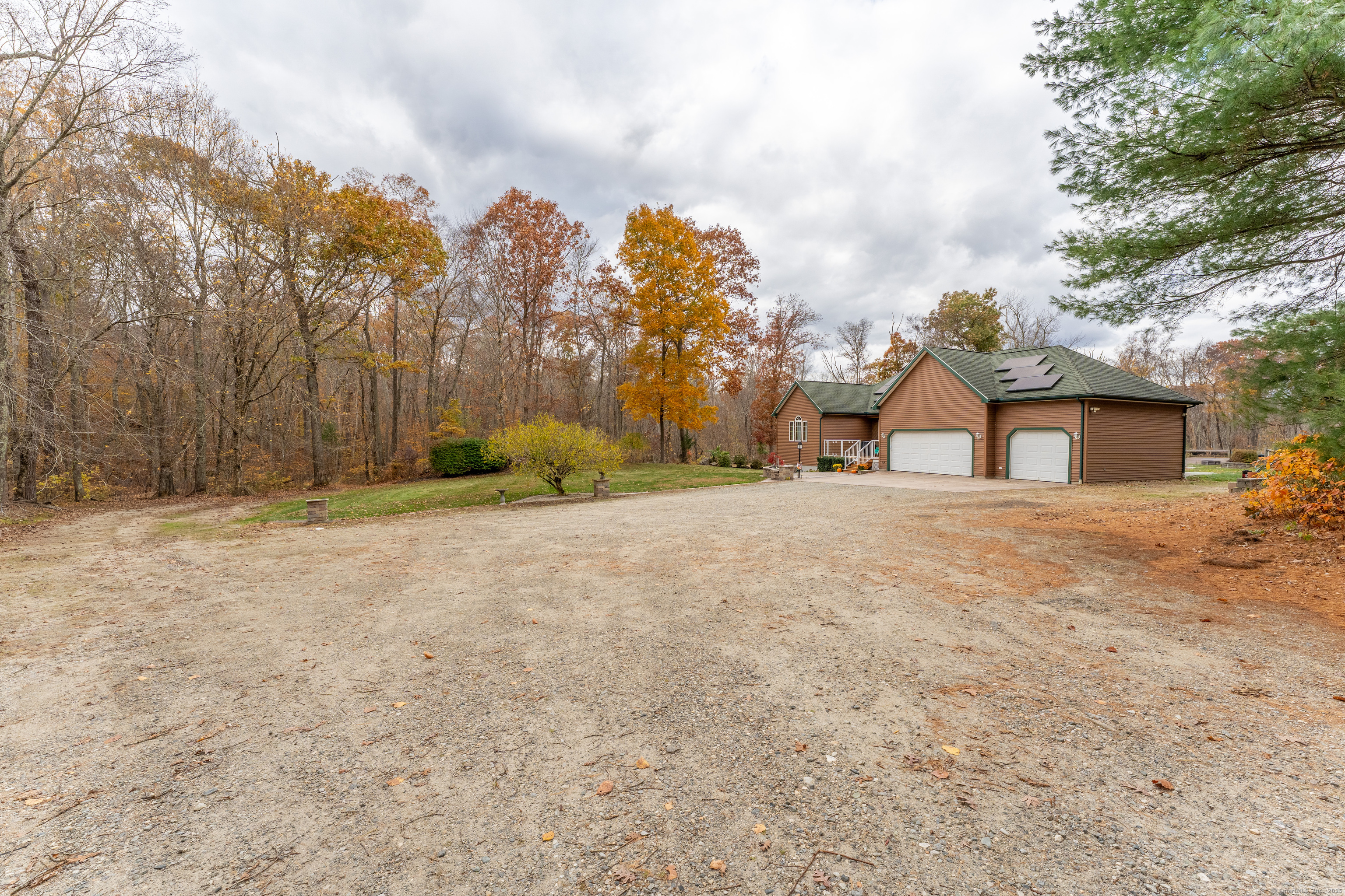 Experience the best of country living and modern design, all on 10 private acres, ideal for hunting and outdoor recreation. This stunning single-level ranch, with a 3 car garage offers an open-concept floor plan, filled with natural light, featuring gleaming hardwood floors, spacious kitchen with stainless steel appliances and a 32 x 27 great room - perfect for entertaining or family gatherings. Home offers a large primary suite with walk-in closet and a private full bath, complimented by 2 additional generously sized bedrooms and a 2nd full bath. Stay cozy with 2 wood stoves as a supplemental heat source or enjoy year-round comfort with 2 mini splits for heating and cooling. Home boasts 39 energy efficient solar panels, which are owned and paid-in-full! Home also offers 2 oil tanks, a 1500 gallon septic tank and a generator hookup for peace of mind. Outside, relax by the above-ground pool, entertain on the large deck, and take in the tranquility of your private retreat. This Canterbury property delivers it all!