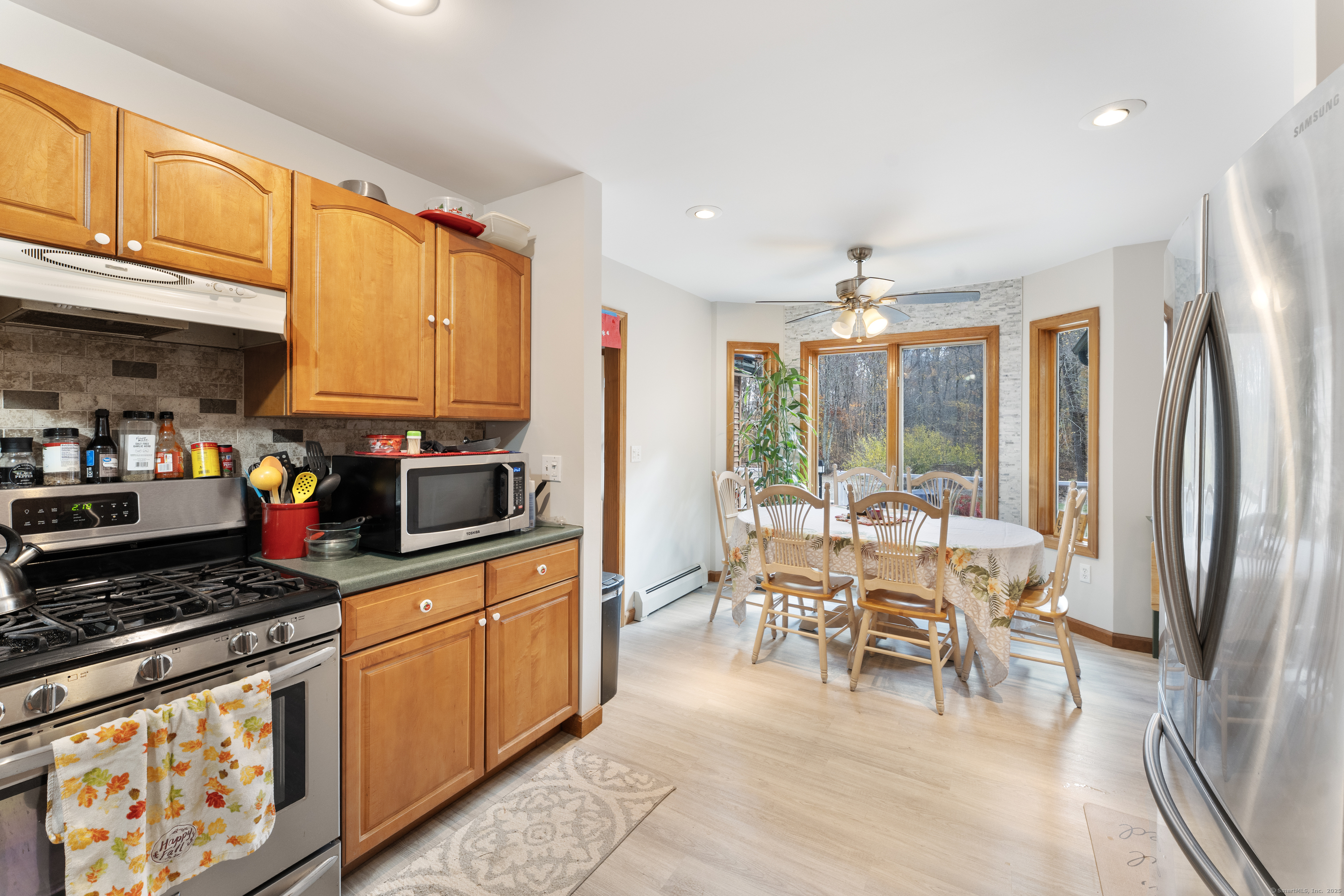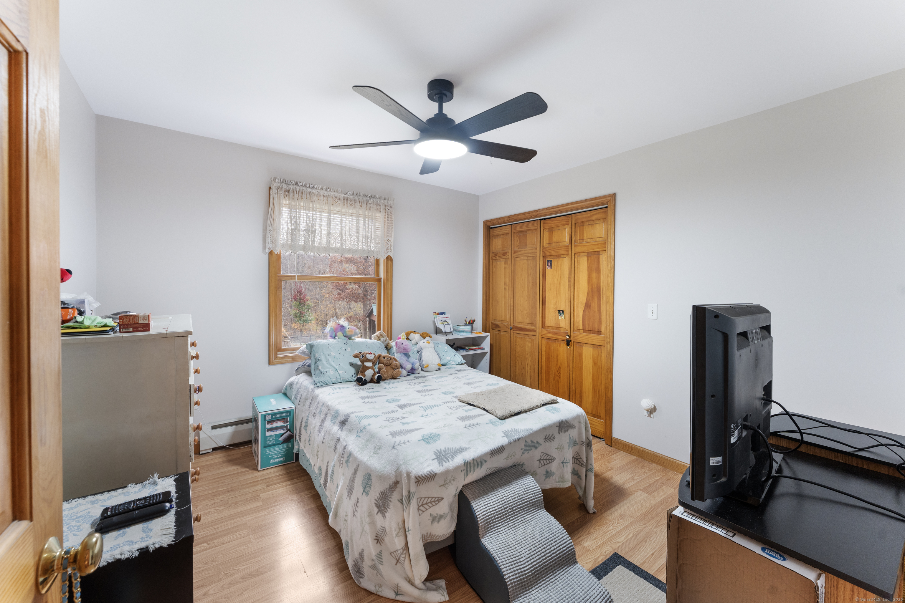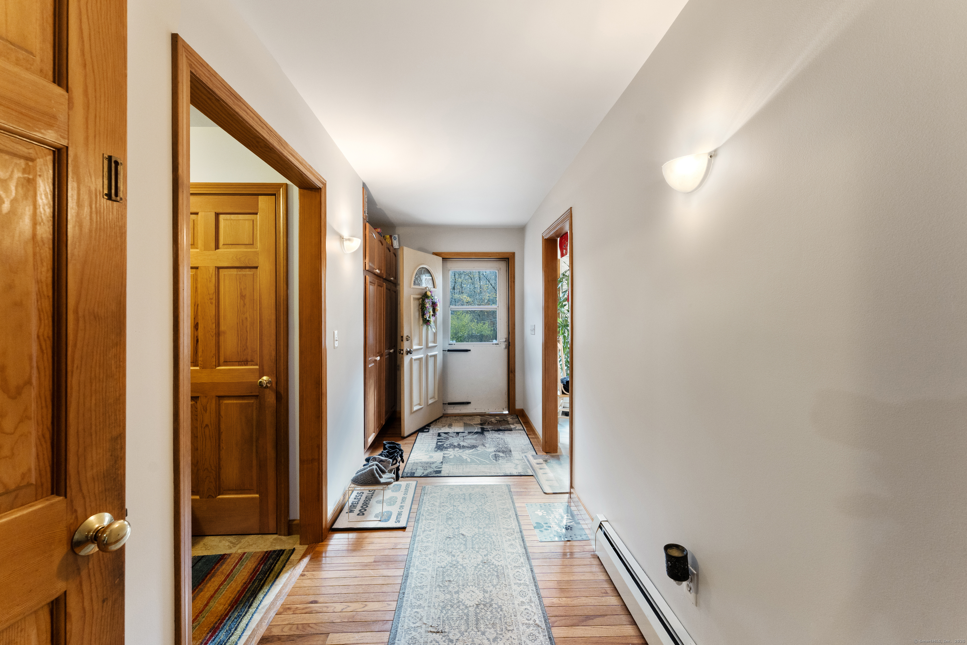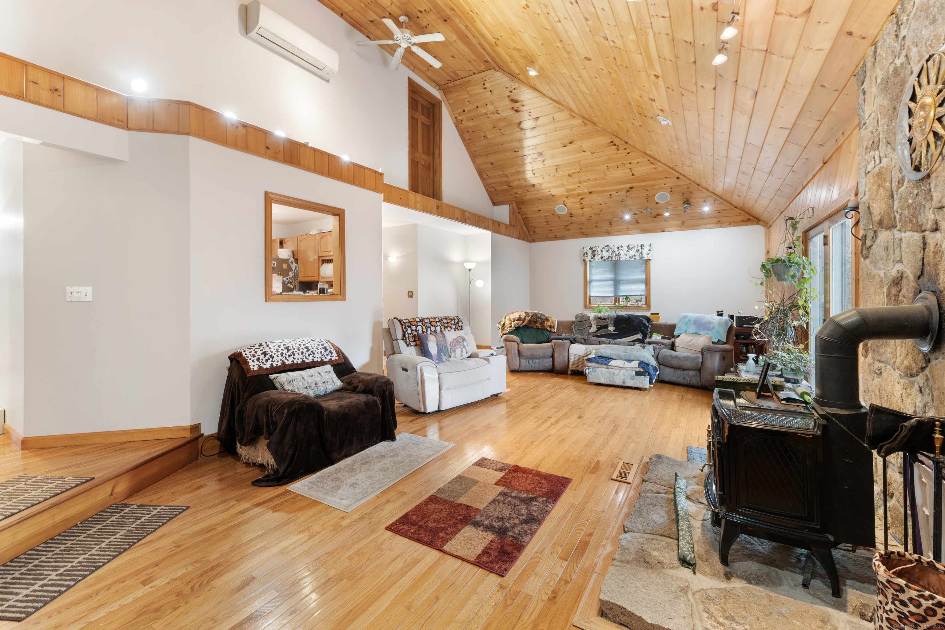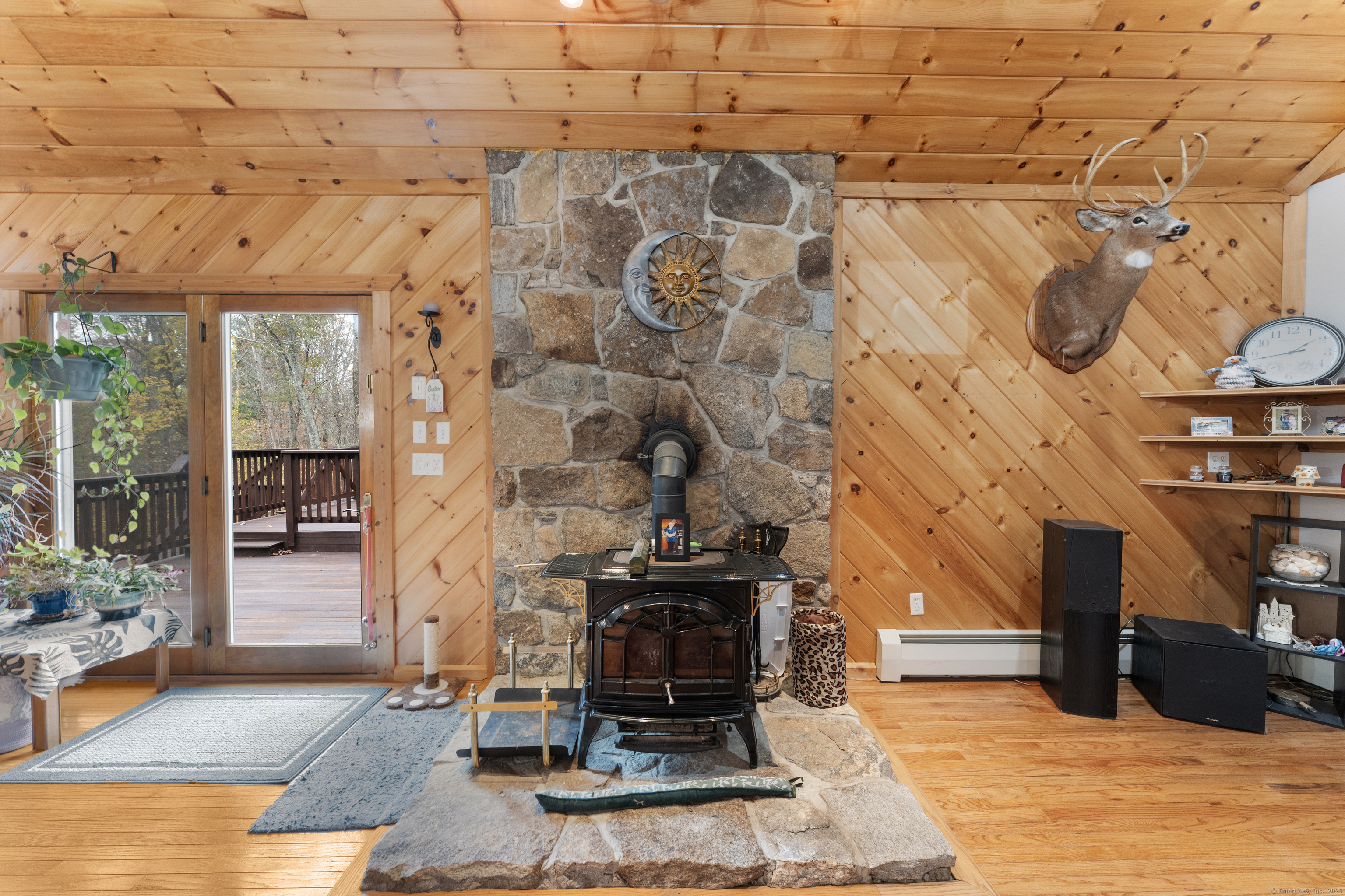Experience the best of country living and modern design, all on 10 private acres, ideal for hunting and outdoor recreation. This stunning single-level ranch, with a 3 car garage offers an open-concept floor plan, filled with natural light, featuring gleaming hardwood floors, spacious kitchen with stainless steel appliances and a 32 x 27 great room - perfect for entertaining or family gatherings. Home offers a large primary suite with walk-in closet and a private full bath, complimented by 2 additional generously sized bedrooms and a 2nd full bath. Stay cozy with 2 wood stoves as a supplemental heat source or enjoy year-round comfort with 2 mini splits for heating and cooling. Home boasts 39 energy efficient solar panels, which are owned and paid-in-full! Home also offers 2 oil tanks, a 1500 gallon septic tank and a generator hookup for peace of mind. Outside, relax by the above-ground pool, entertain on the large deck, and take in the tranquility of your private retreat. This Canterbury property delivers it all!