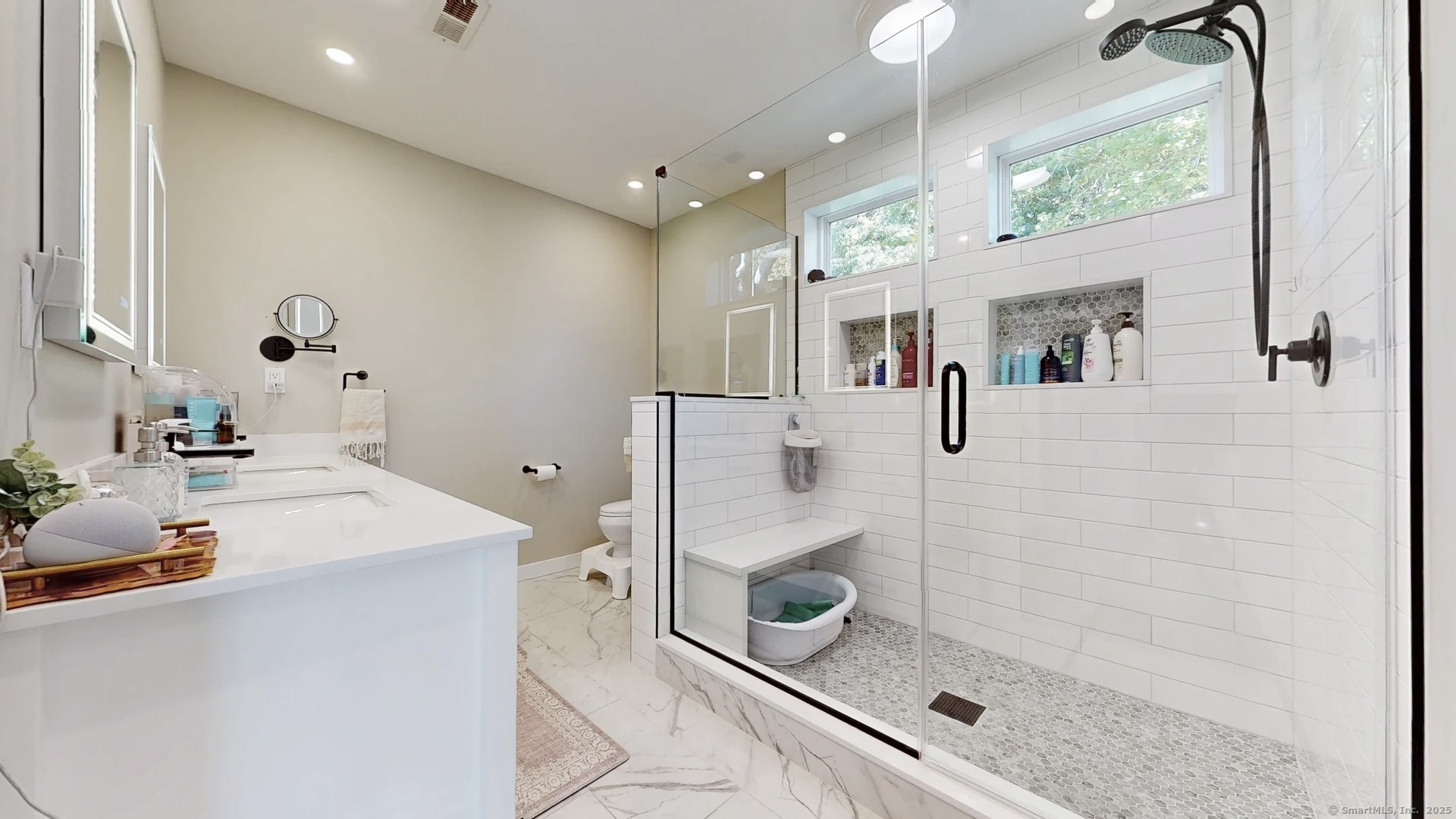 Ranch style living at it's BEST! Welcome to 15 Alpha Street located on the corner of a Cul-de-sac in the private Glen Ridge community. This 3 bedroom, 2 full bath open floor plan home has been meticulously renovated in 2024. Enjoy plenty of light streaming through the picture window in the Living Room as you stroll through an open floor plan to the Dining Room and kitchen which is equipped with stainless steel appliances, granite counters and a convenient pantry with built ins. The primary suite welcomes you through the bedroom into a well appointed full bath with tile flooring, double sinks, lighted mirrors and a spacious walk in glass enclosed shower. A walk in closet was also added in the primary suite. Plenty of storage awaits you along with updated amenities! If Peace and tranquility is what you are looking for you have found it. The backyard is adjacent to open space making more privacy for you and guests while relaxing or entertaining on your patio along with a pergola. This property is conveniently located to Anchor Beach in Woodmont, downtown Milford, shops, entertainment and restaurants. It is a commuter's delight within minutes to Metro North train station, I-95, and the Merritt Parkway. The HOA includes your Spring and Fall clean up, mowing your lawn, trash and recycling pick up, plowing the street and your water. Comfort and convenience await you, come visit 15 Alpha Street! Click on the movie reel on the listing to view the 3D Tour of this home.