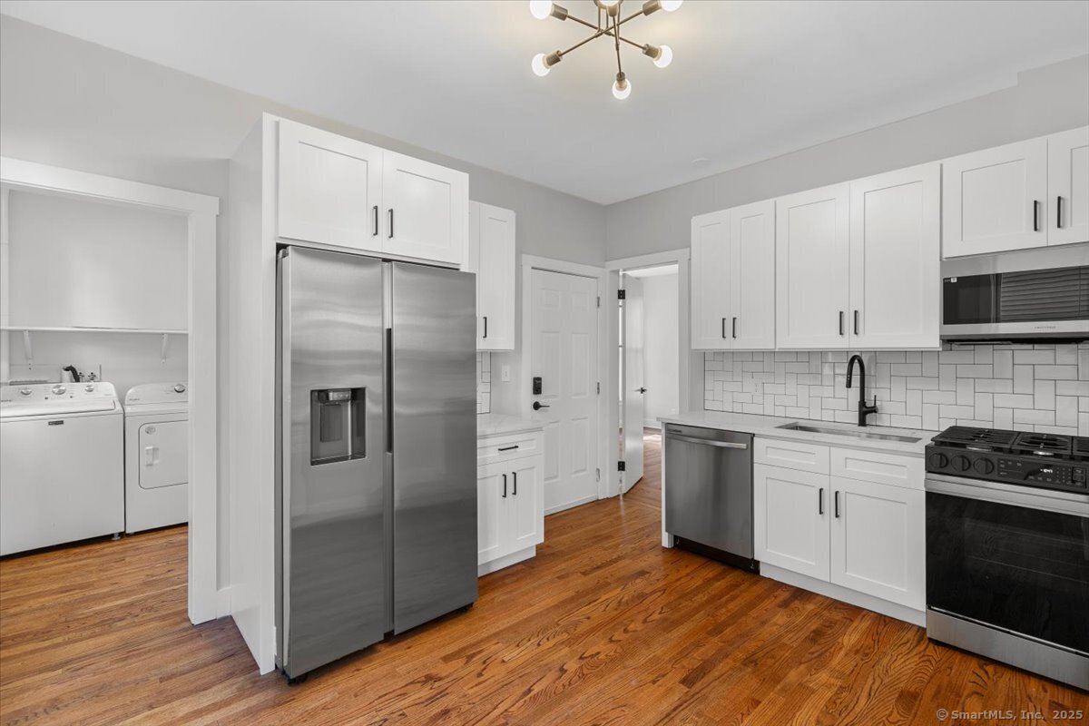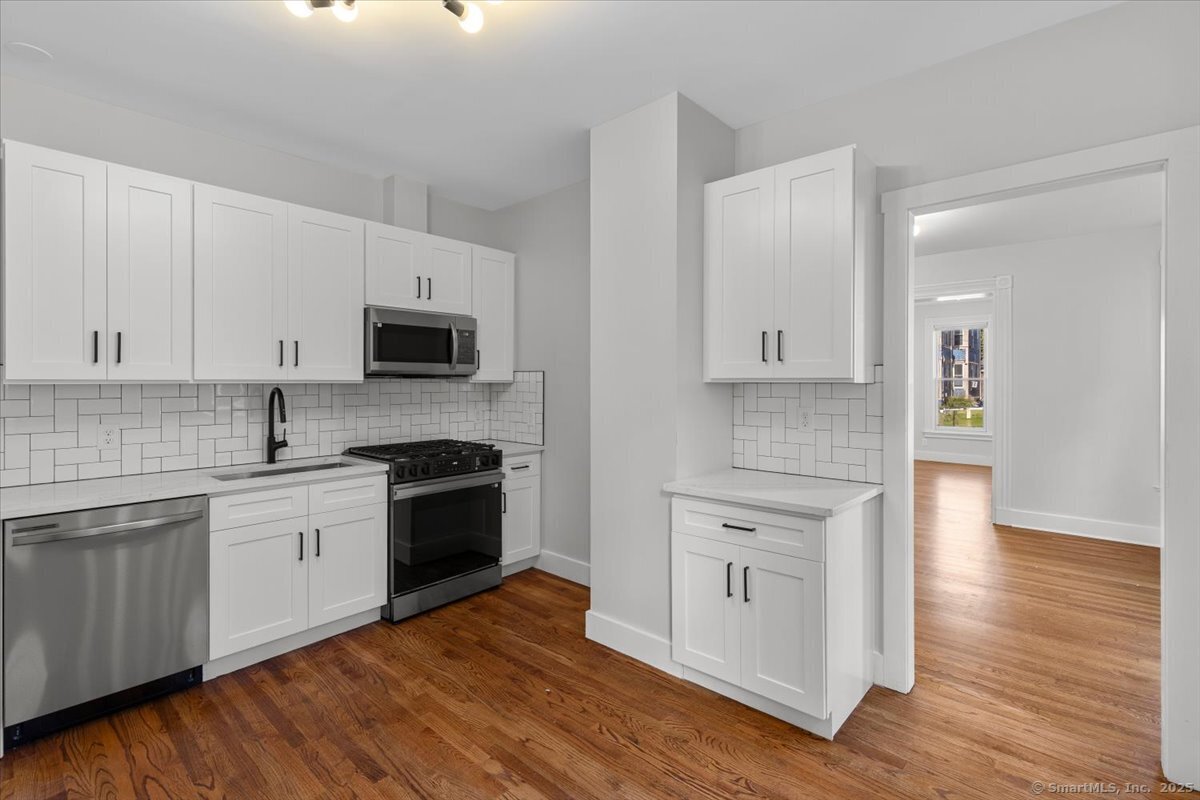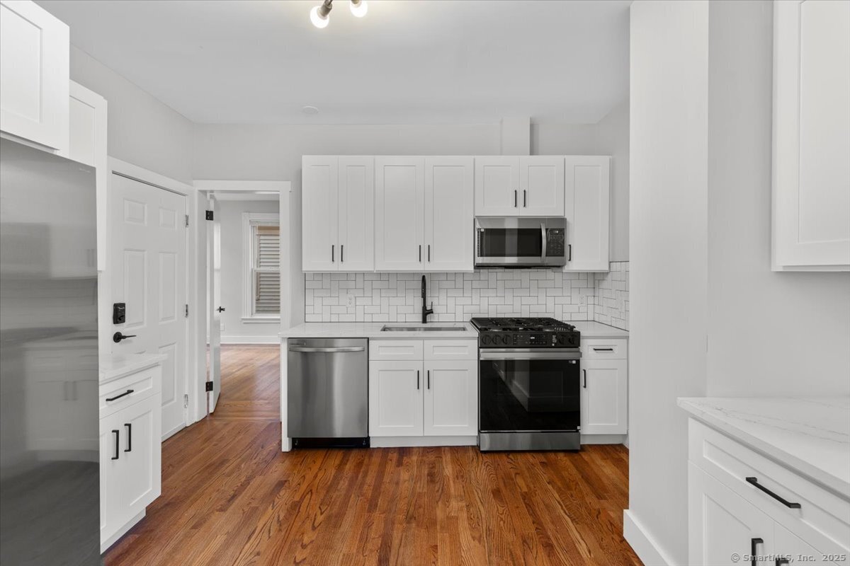 Just renovated inside and out! This spacious sunny 2 bedroom first floor unit is ready for move in. Wood floors, all new kitchen and bath, IN UNIT LAUNDRY, central air, and parking are perks that make this your perfect new home. Excellent location is walkable to Yale's St. Raphael's Campus. Good to excellent credit required.