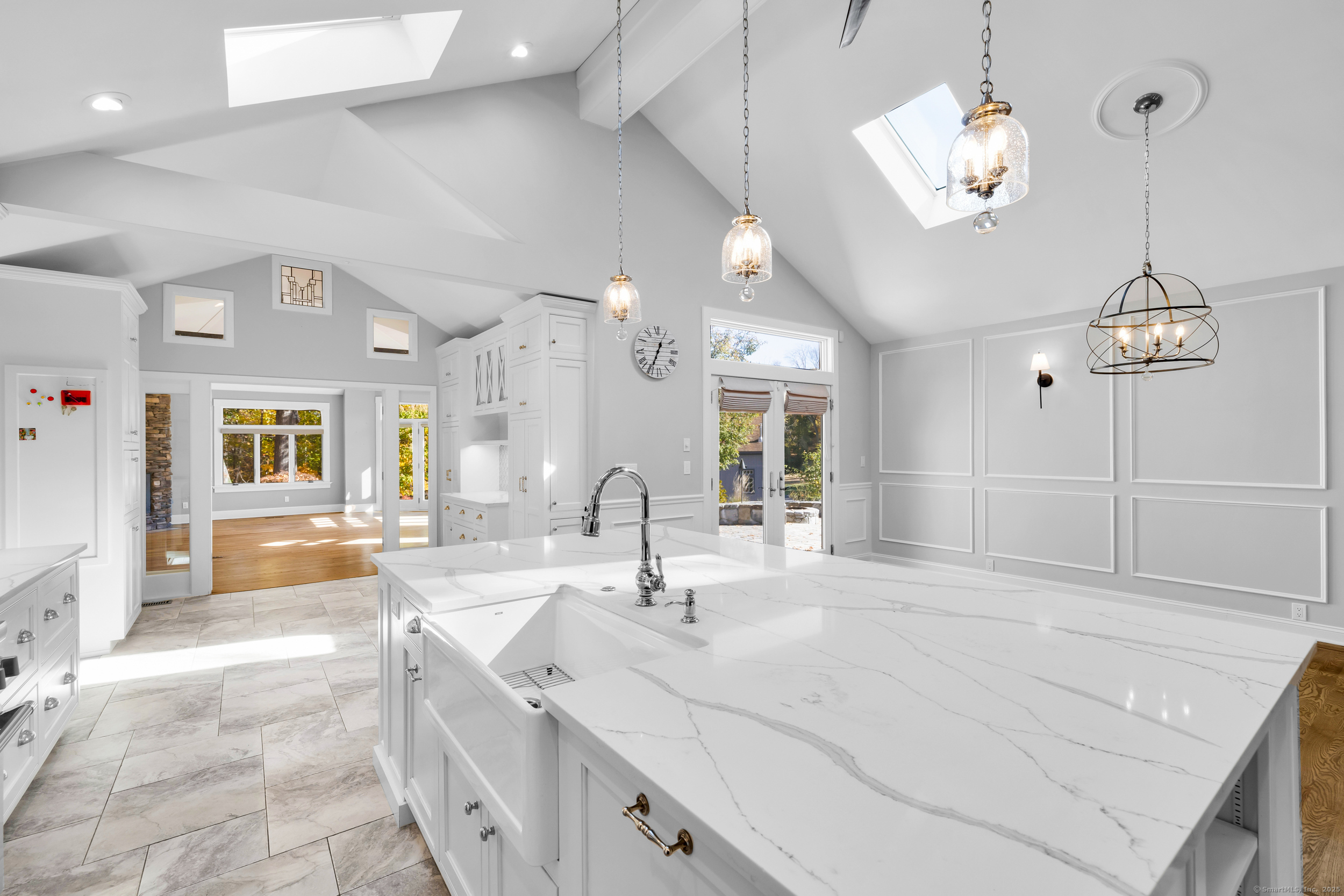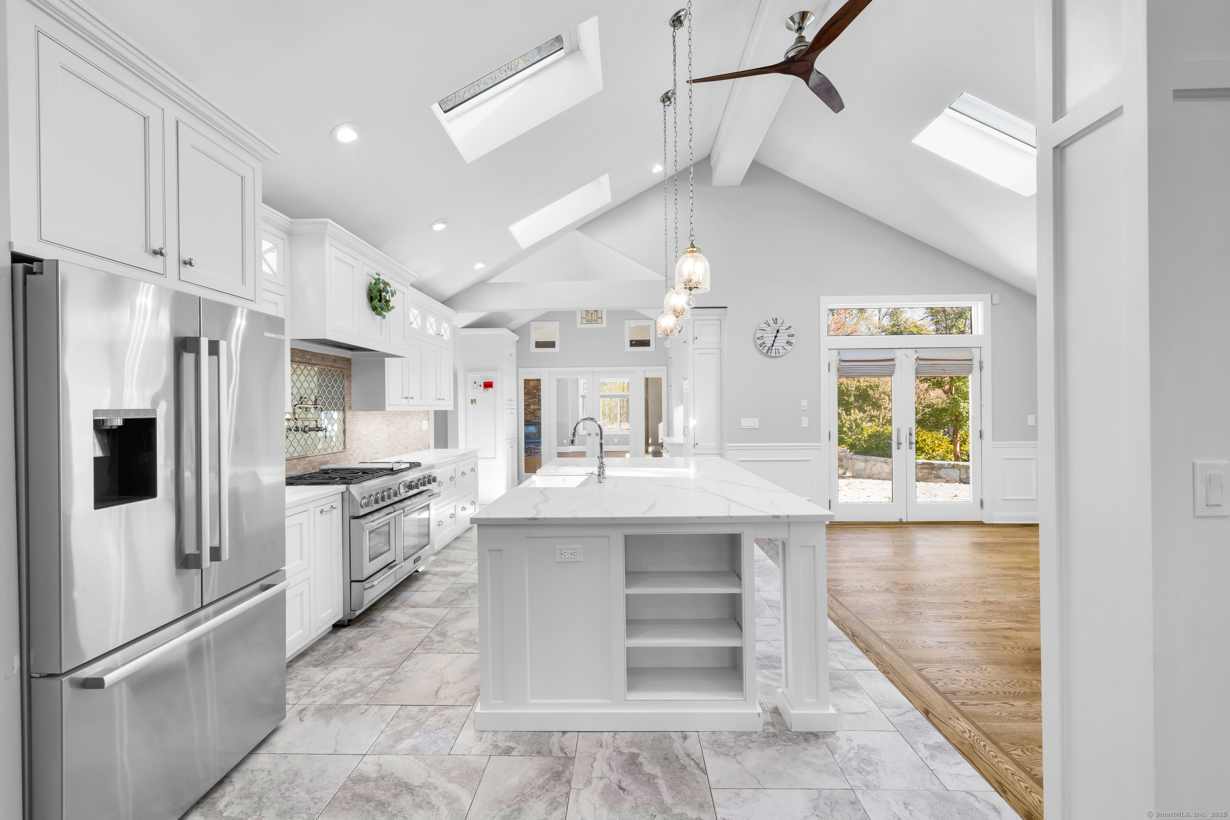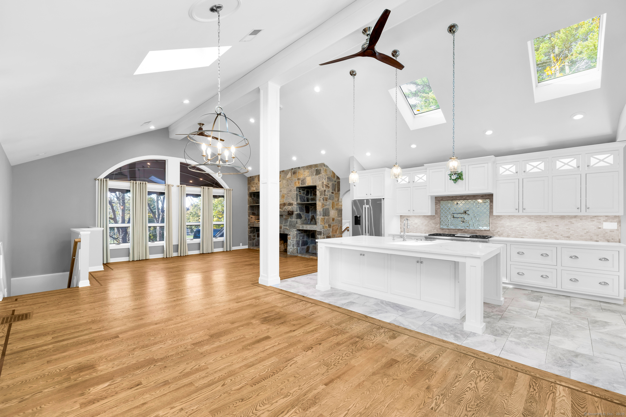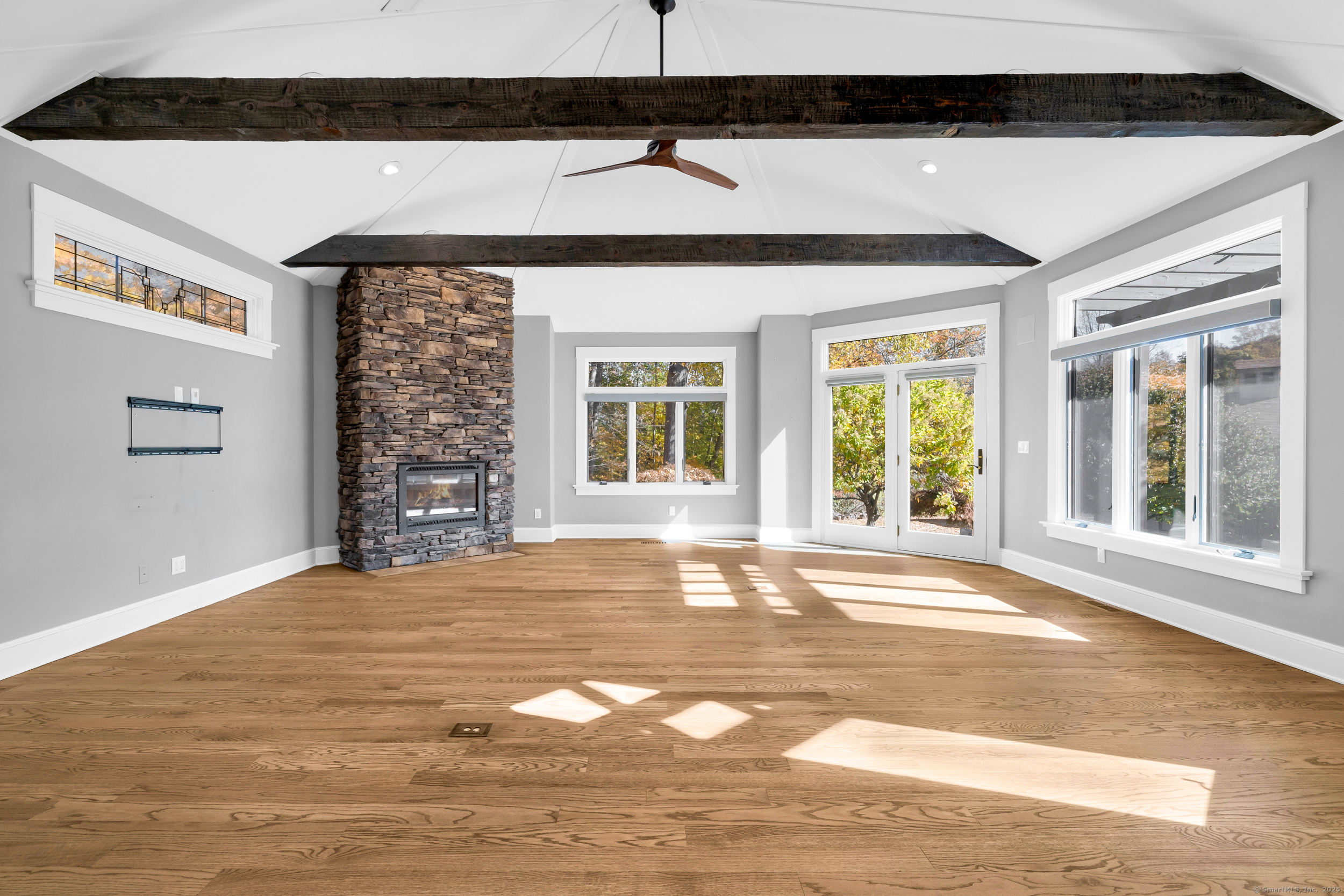 Welcome to a Home that feels like a Private Retreat. Fully renovated kitchen and baths, stone patio with built-in outdoor grill & stone fire pit, heated, salt water, in-ground pool & hot tub. This home blends warmth with modern comfort. Lutron lighting throughout sets the perfect mood, while professional landscaping with stone masonry leads you to the resort-style backyard. Enter through the lower level to a cozy living space with gas fireplace, two bedrooms, and a full bath-ideal for guests or a home office setup. Upstairs, the heart of the home, features an open kitchen, dining, and family area with cathedral ceilings. The kitchen has a farmhouse sink, pot filler, and dual Thermador gas/electric range with steam oven. A second family room with gas fireplace adds additional comfort. A step up leads to the serene primary suite, complete with custom walk-in closet, steam shower, and clawfoot tub. Two additional bedrooms and another full bath sit just off the main living area. The living room offers cathedral ceilings, wood beams, recessed lighting, Sonos surround sound, and direct access to the patio and pool-perfect for entertaining. An additional barn provides endless potential for storage, studio, workshop, or personal retreat. Backing up to Patterson Elementary, the setting feels private, peaceful, and convenient.