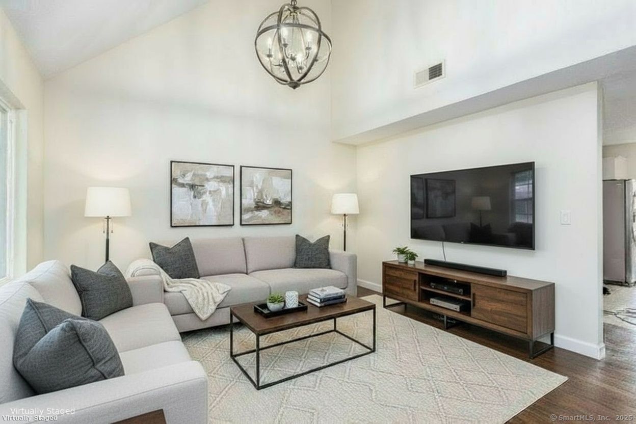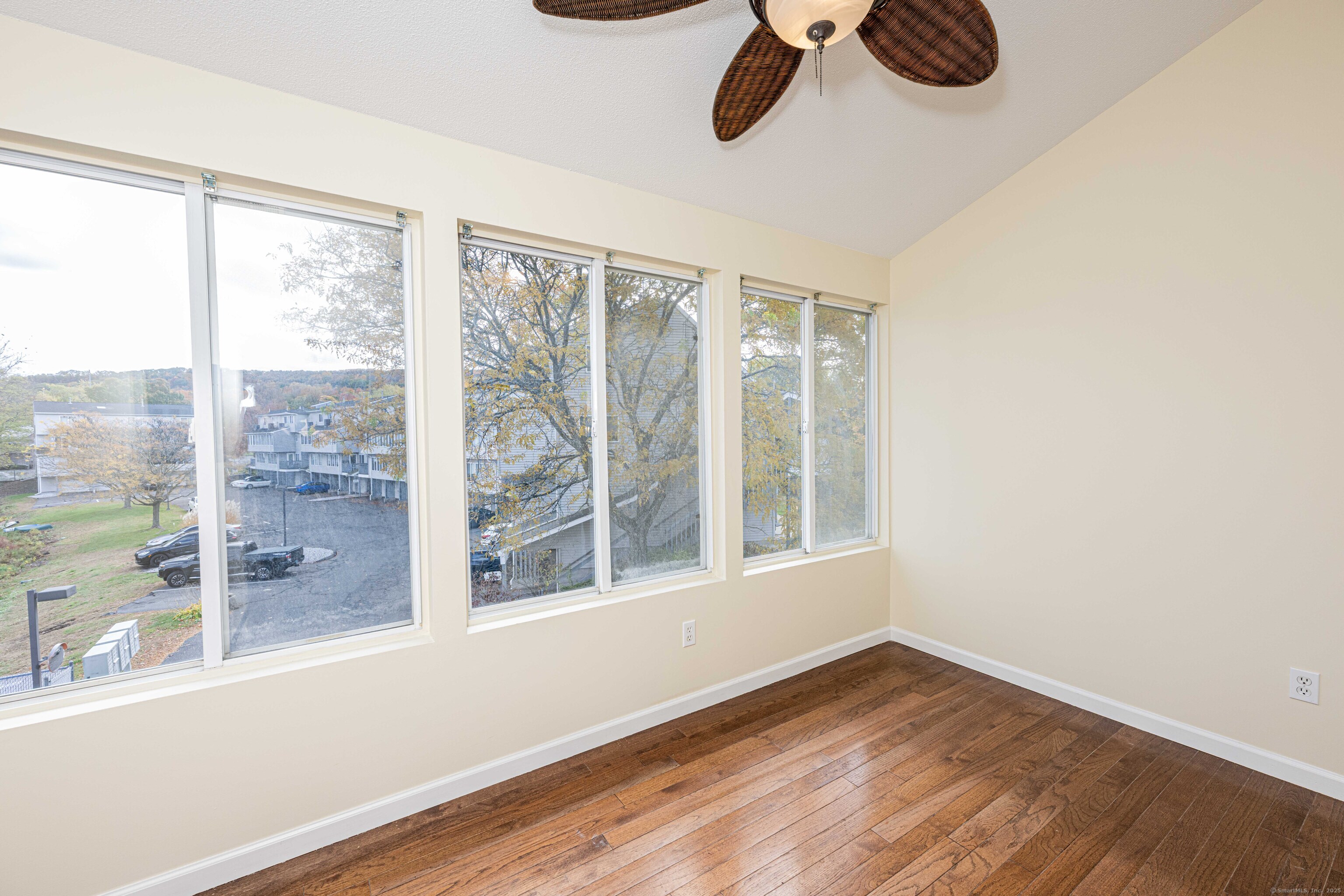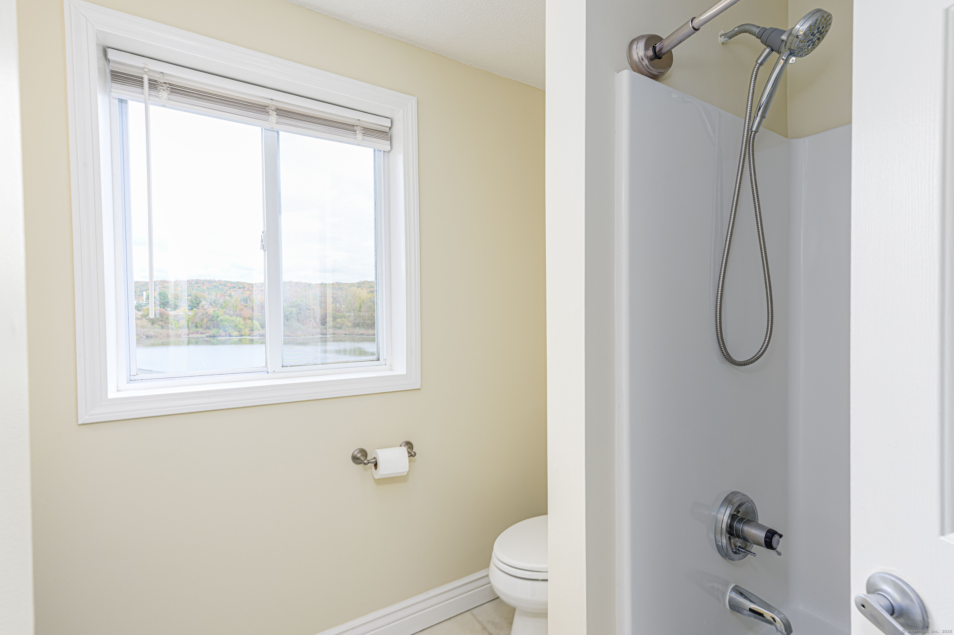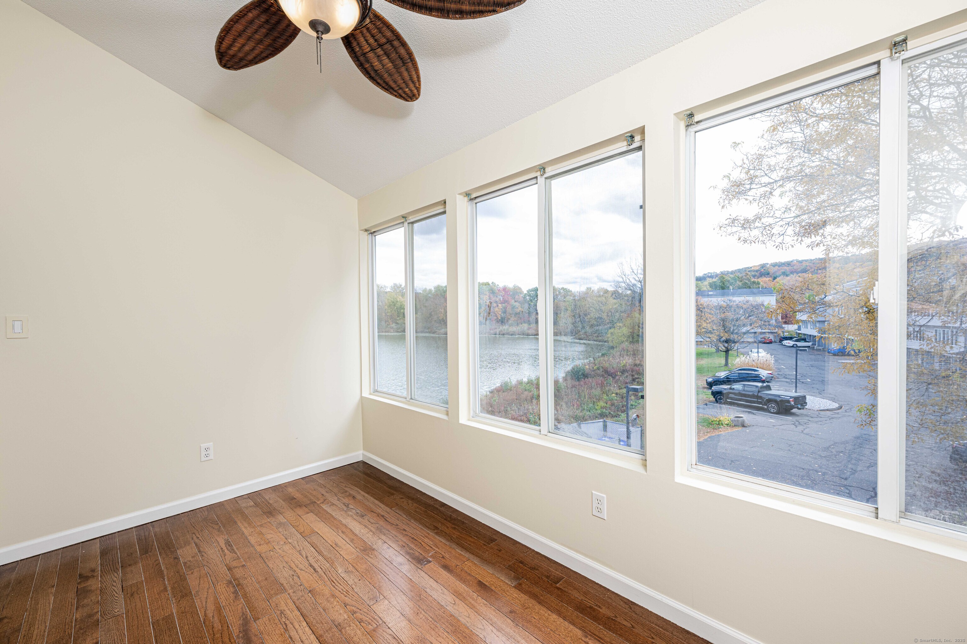 Welcome to easy living with a view! This rare one-bedroom townhouse overlooks the tranquil waters of Hamlin Pond, offering the perfect blend of comfort, convenience, and natural beauty. Step inside to an open and airy living room with vaulted ceilings that create a sense of space and light. The eat-in kitchen features brand-new granite countertops and a new oven/range - ready for you to cook, dine, and entertain. Just off the kitchen, a versatile bonus room provides the ideal spot for a home office, workout area, or peaceful reading nook. Upstairs, the primary bedroom is a true retreat with serene water views, a full bath, and a walk-in closet that also houses the laundry for ultimate convenience. Recent improvements include a freshly painted interior and a new central air compressor installed this summer, so you can move right in and enjoy. Love the outdoors? Step outside and take advantage of direct access to Hamlin Pond, where you can kayak, sail, fish, or simply unwind at the water's edge. Electric motorboats are also allowed. The boat launch is located right next to the building for easy access. With quick connections to Interstate 84, commuting and shopping are effortless. Don't miss this opportunity to own your own piece of waterfront living - it's the perfect time to stop renting and start investing in yourself.