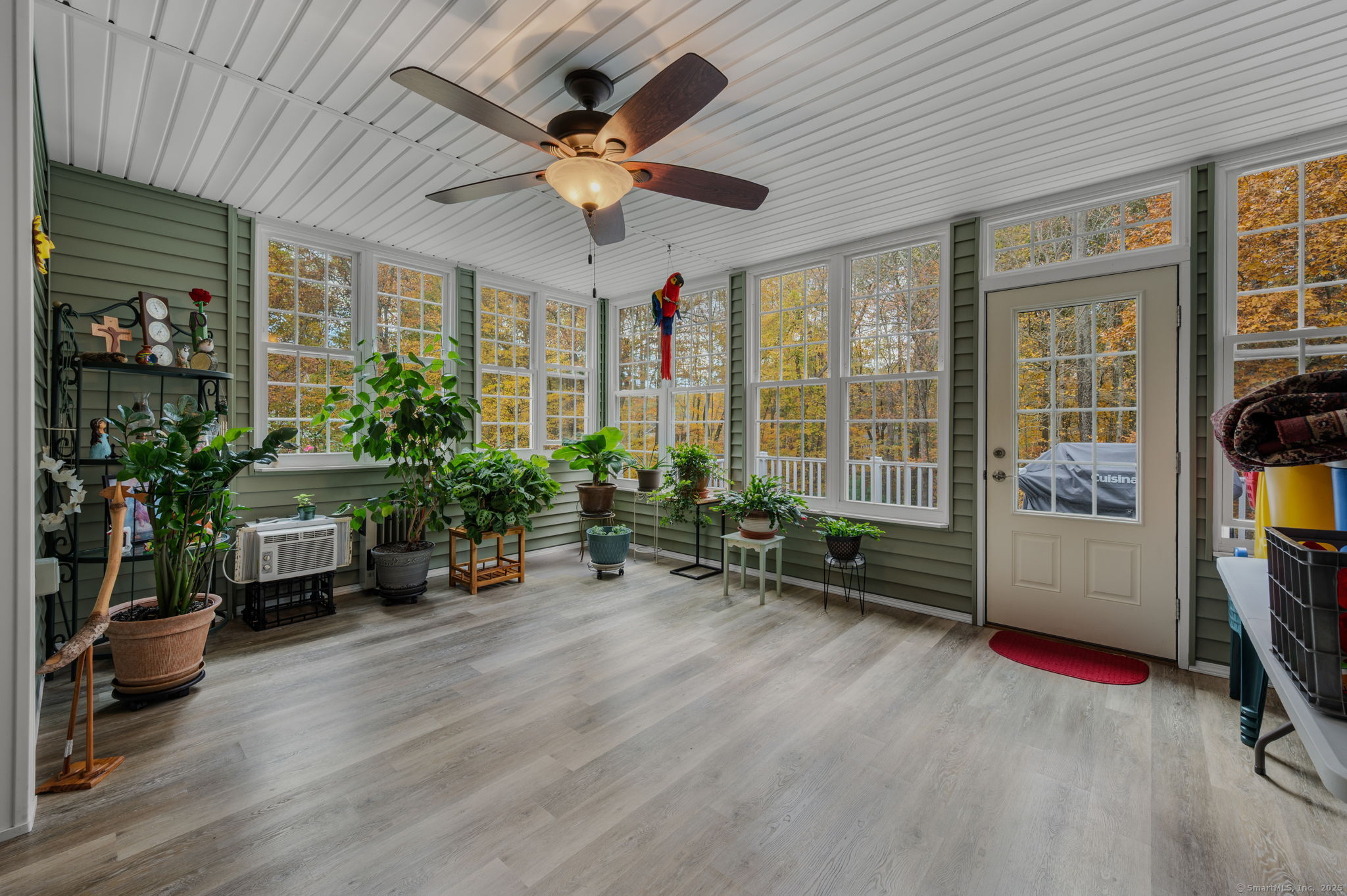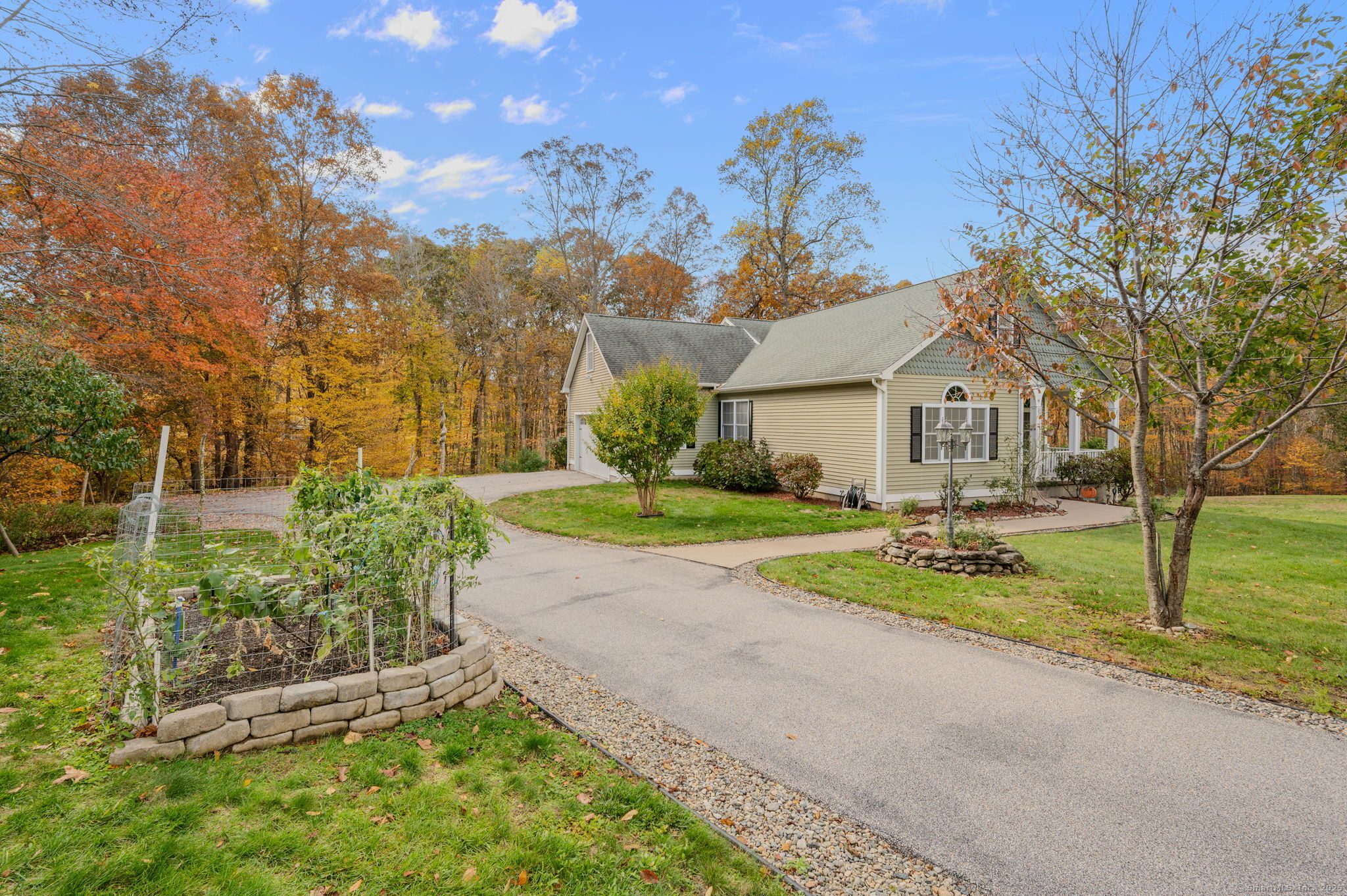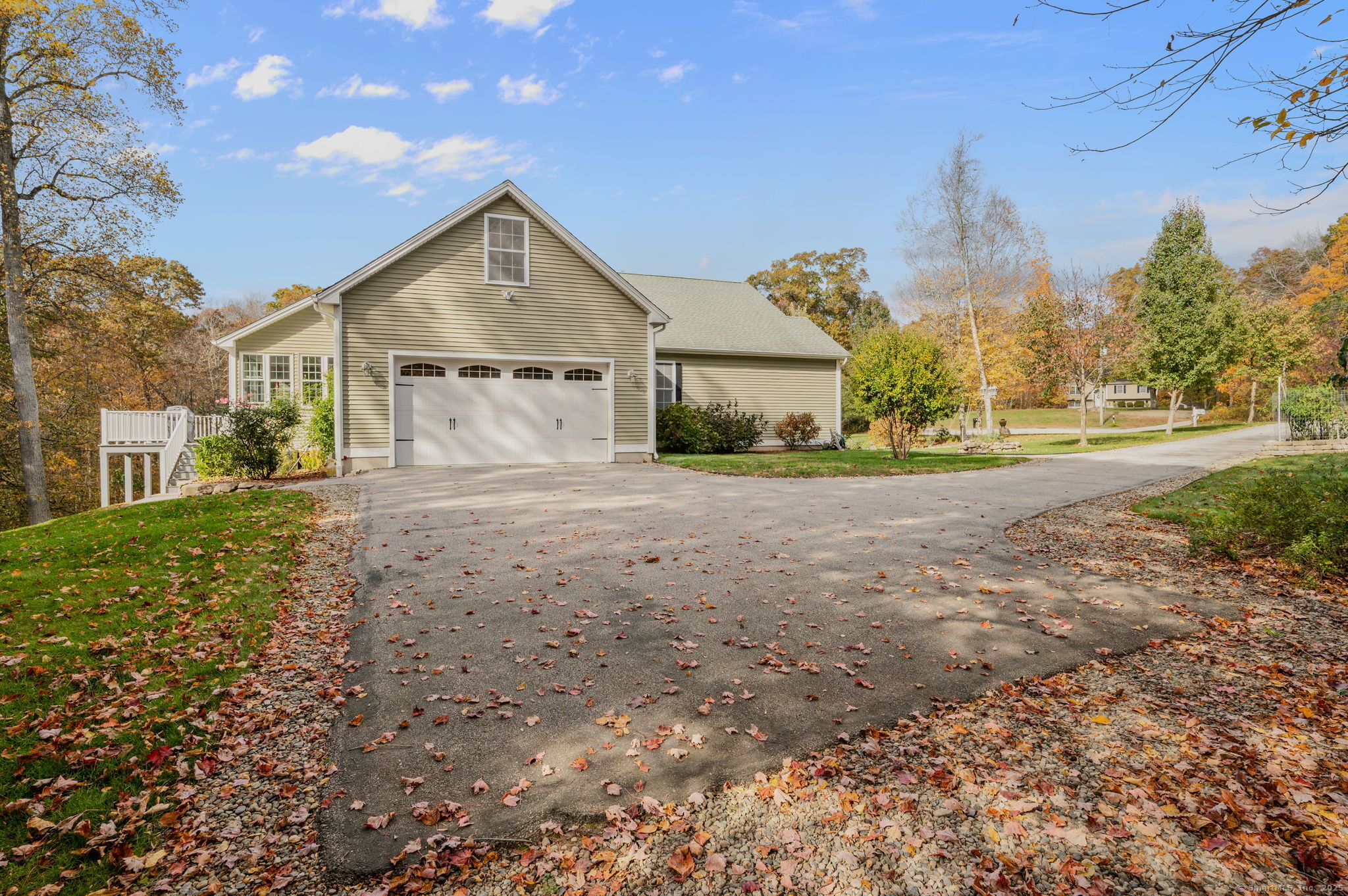 First time offered! Custom-built 3-4 BR, two bath Contemporary Ranch set on a quiet cul-de-sac and located minutes to Ledyard Center, Mystic, and major highways. This spectacular Ranch offers an open floor plan with 9-foot ceilings, a living room and formal dining room with hardwood floors and a double-sided gas fireplace, a spacious eat-in kitchen with tiled floor, a center island, a gas range, and granite counters. There is a first-floor primary suite with a waterfall-tiled shower, a whirlpool tub, and his-and-her walk-in closets. Two additional bedrooms with hardwood floors, a full bath, laundry room, and sunroom all on the main level, and a 4th bedroom/rec room upstairs. Massive unfinished walk-out basement offering plenty of possibilities for expansion with roughed-in plumbing for a full bath, a sliding door, and plenty of windows to bring in the natural light. Updates include a tankless water heater, a new HVAC system and AC condenser, and a permanent Generac Generator. Conveniently located within minutes of the Subase, Electric Boat, and Coast Guard Academy.