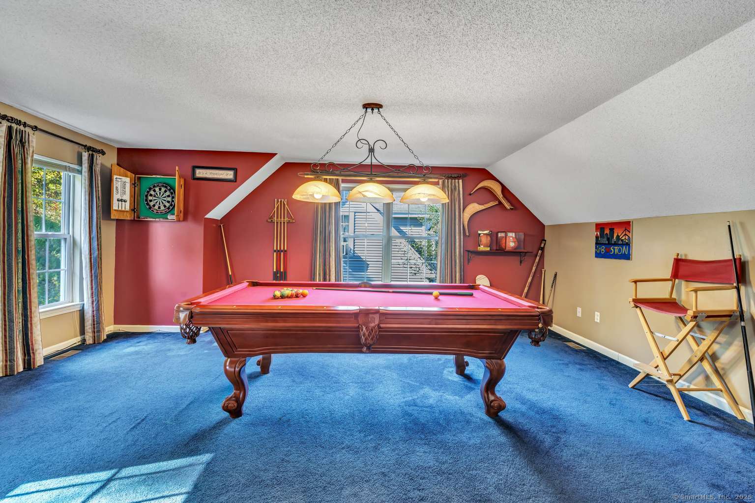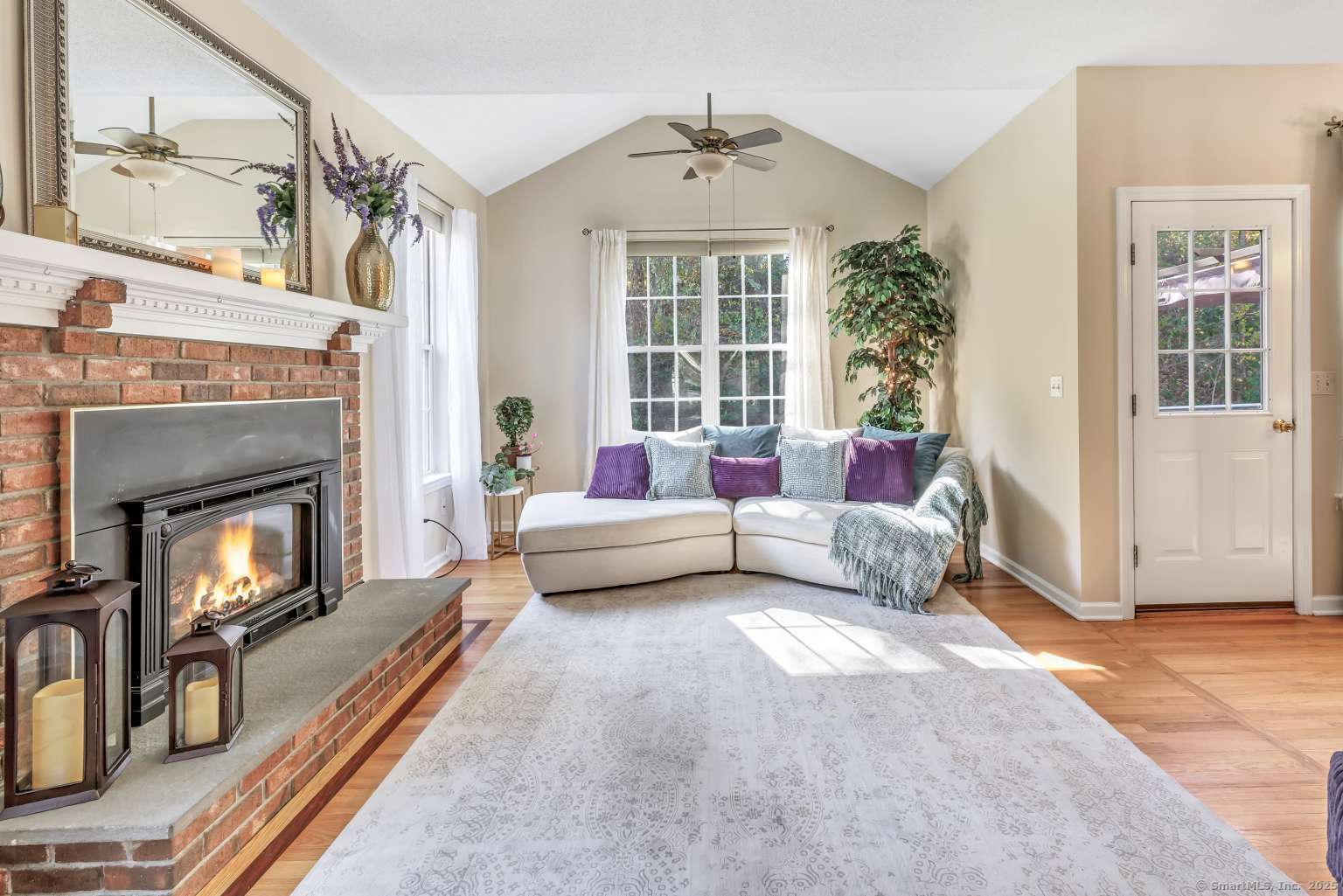 Pristine 4-bed, 2.5-bath Colonial in sought-after Moss Farms Village. Set on a quiet cul-de-sac, this thoughtfully updated home features a spacious kitchen, vaulted living room with fireplace, spacious primary suite & huge bonus room. Enjoy peaceful outdoor living with a deck overlooking a quiet forest & a beautifully landscaped yard. This 1998-built home offers 2,305 square feet of main living space, plus a 575-square-foot finished basement & attached two-car garage - everything you need to move right in & start making memories. The main level welcomes you with hardwood floors & an open, flowing layout. The kitchen connects seamlessly to the living room, anchored by a cozy propane fireplace - perfect for gathering on cooler evenings. The living room extends through a set of French doors, making it ideal for a larger gathering space or home office. A formal dining room provides space for everyday meals or special occasions. Upstairs, the primary suite is a true retreat with a walk-in closet & en-suite bath featuring double vanity, shower, and private water closet. Three additional bedrooms & a second full bath round out the upper level. The large fourth bedroom upstairs can also be used as a bonus room for fun & entertainment or a spacious playroom. The finished lower level can be transformed into a home office, fitness room or recreation space. A large laundry room & ample storage keep everyday life organized. Seller willing to provide concessions to buyer at closing.