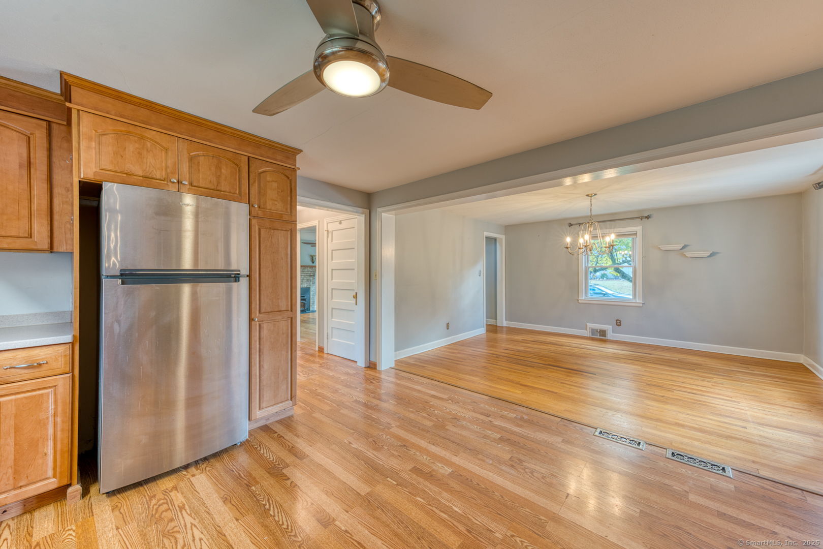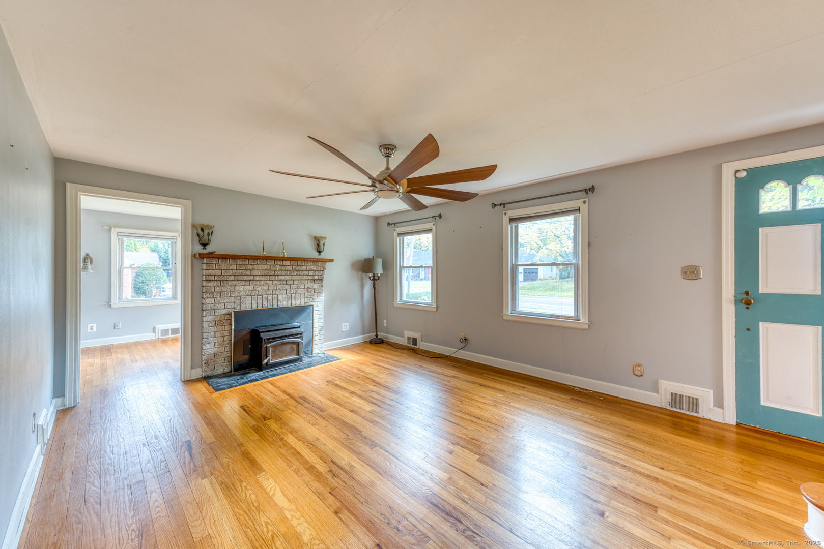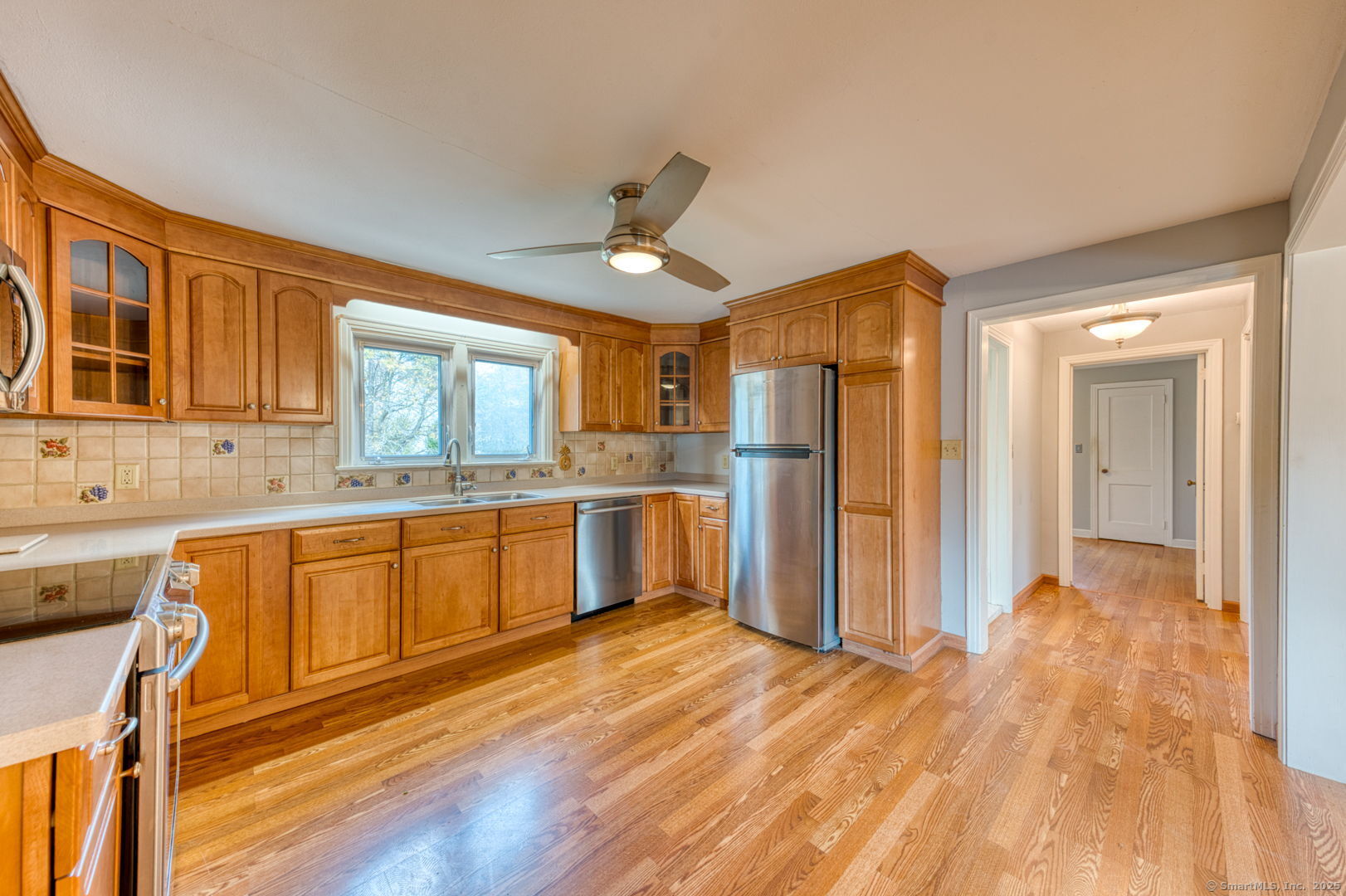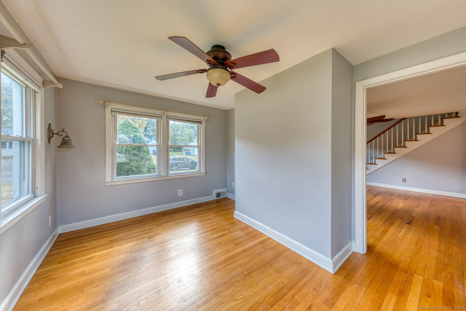 This beautifully maintained seven-room, three-bedroom home offers over 1,500 sq. ft. of comfortable living space with an inviting open floor plan. The fully applianced kitchen opens to a bright dining area, perfect for entertaining. A cozy living room with a fireplace and pellet stove creates a warm and welcoming atmosphere, while the sunroom adds extra space for relaxation or hobbies. The first floor features a bedroom and full bath, ideal for guests or one-level living. Throughout the home, gleaming hardwood floors and ceiling fans add to its charm and comfort. Upstairs, you'll find two additional bedrooms and another full bath, offering plenty of room for family or guests. An attached garage with breezeway provides direct access to the kitchen for added convenience. Enjoy the spacious backyard with two storage sheds, perfect for gardening, storage, or outdoor activities. With a newer roof and siding, this home is move-in ready and worry-free. Located in a desirable area within walking distance to Stanley Park and CCSU, this property offers both comfort and convenience - a wonderful place to call home.