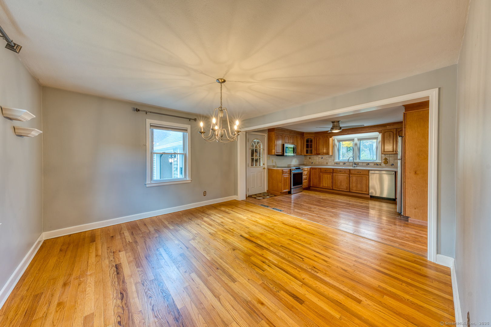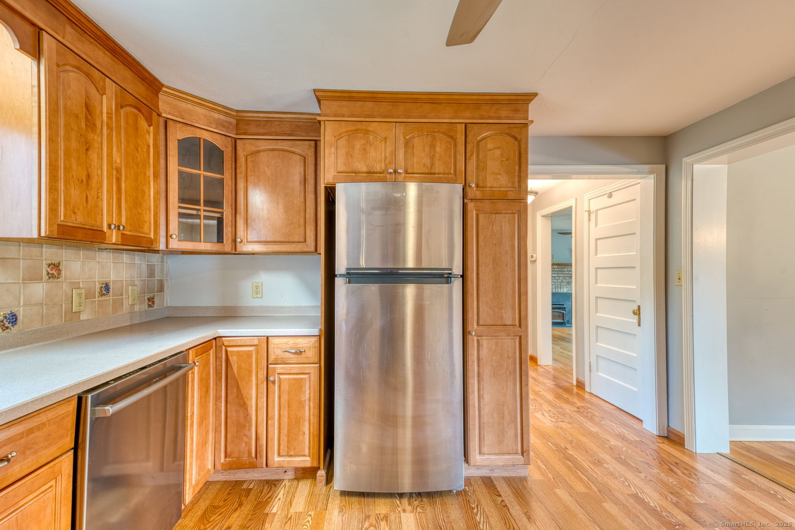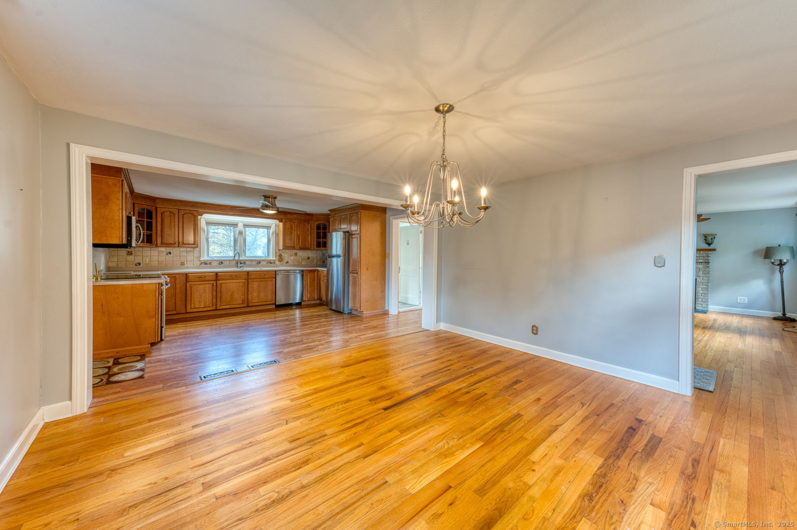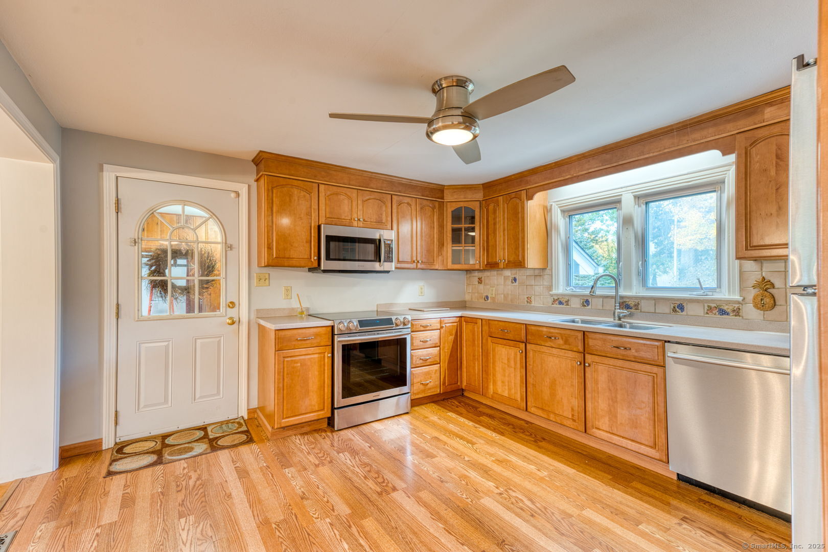 This beautifully maintained seven-room, three-bedroom home offers over 1,500 sq. ft. of comfortable living space with an inviting open floor plan. The fully applianced kitchen opens to a bright dining area, perfect for entertaining. A cozy living room with a fireplace and pellet stove creates a warm and welcoming atmosphere, while the sunroom adds extra space for relaxation or hobbies. The first floor features a bedroom and full bath, ideal for guests or one-level living. Throughout the home, gleaming hardwood floors and ceiling fans add to its charm and comfort. Upstairs, you'll find two additional bedrooms and another full bath, offering plenty of room for family or guests. An attached garage with breezeway provides direct access to the kitchen for added convenience. Enjoy the spacious backyard with two storage sheds, perfect for gardening, storage, or outdoor activities. With a newer roof and siding, this home is move-in ready and worry-free. Located in a desirable area within walking distance to Stanley Park and CCSU, this property offers both comfort and convenience - a wonderful place to call home.