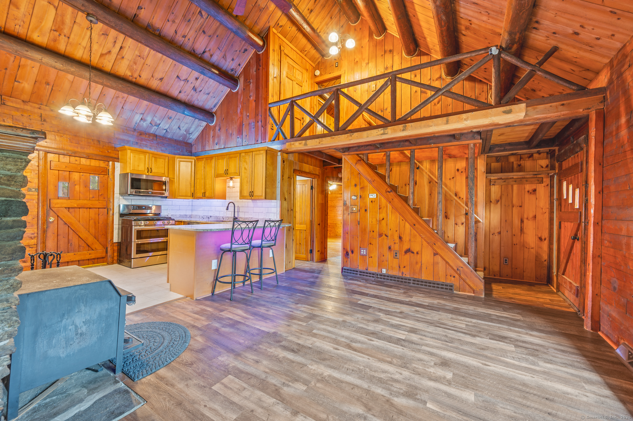 Log cabin with side porch set on 2.48 acres in a private setting. Features vaulted ceiling, stone fireplace, woodstove and open floor plan. Kitchen with granite countertops and stainless-steel appliances. New roof. Large deck. Yard suitable for gardening. Make this home yours! PLEASE SUBMIT HIGHEST AND BEST OFFERS BY WEDNESDAY 11/5 10:00AM. THANK YOU.