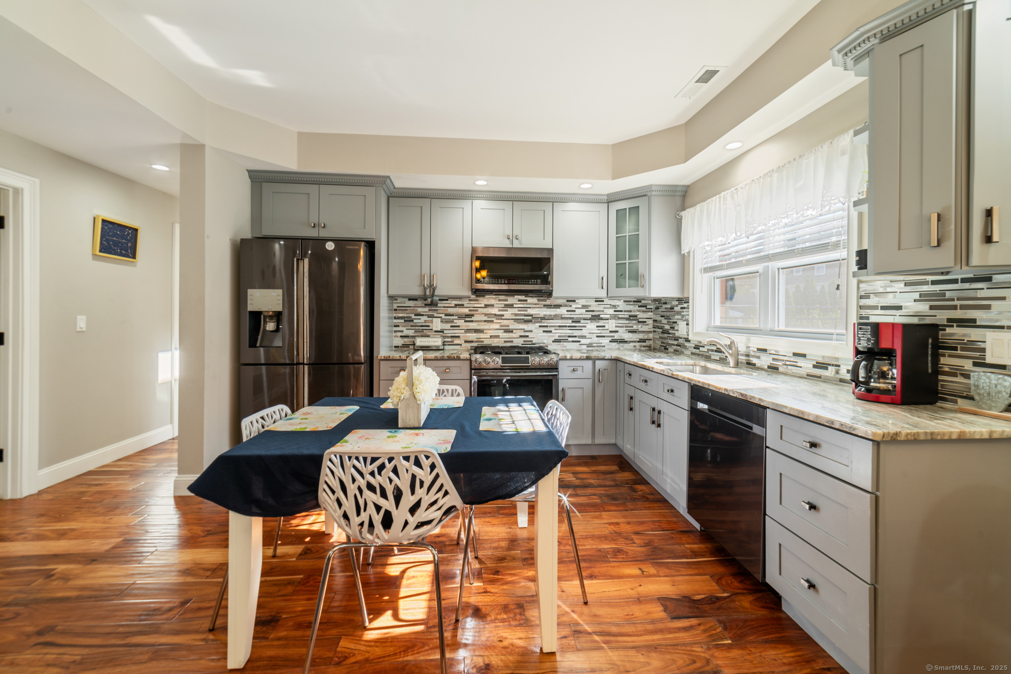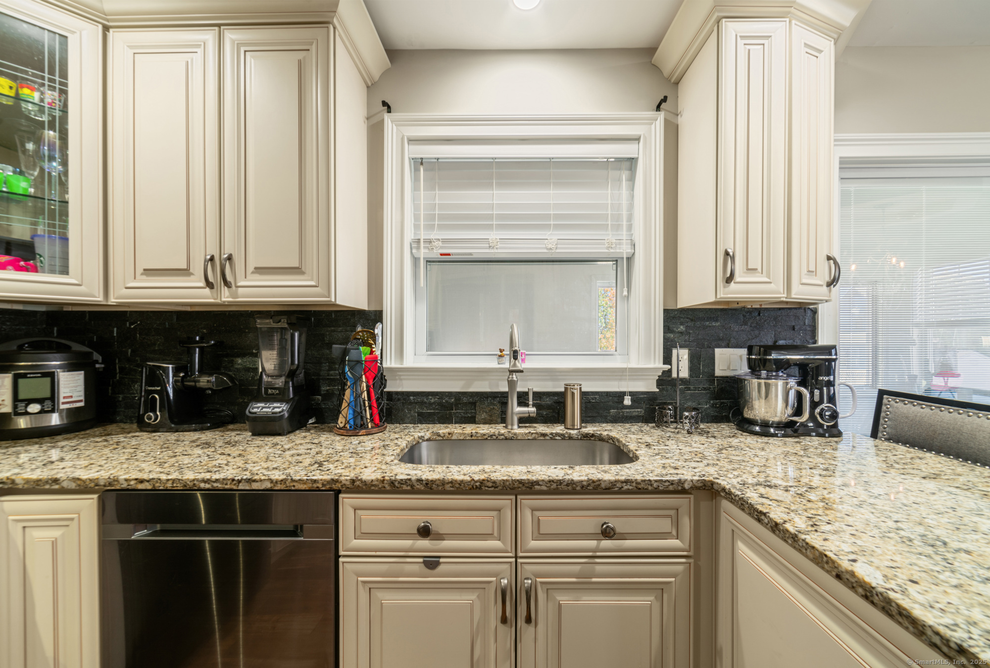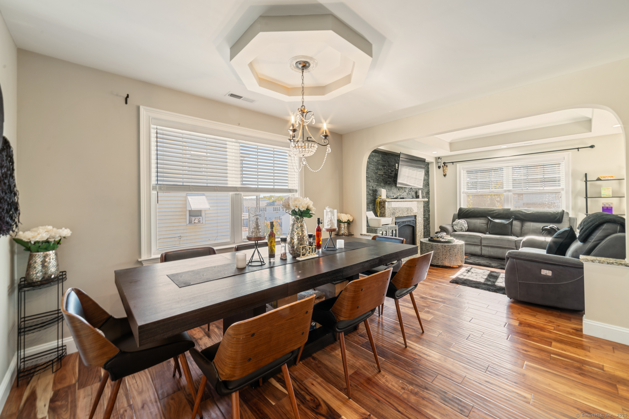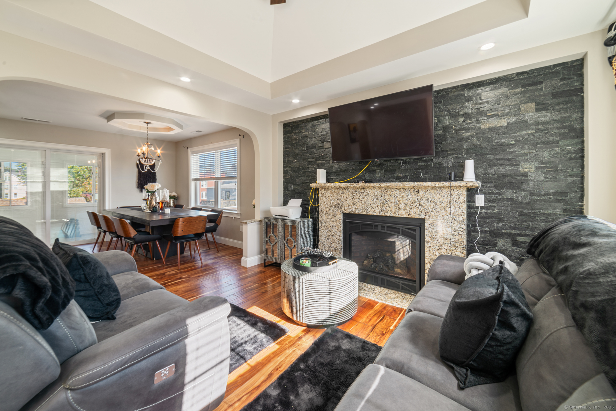 A rare find! This spacious home offers a full in-law setup that delivers both versatility & long-term value, whether you're looking to keep loved ones close or generate rental income. Every inch of this home has been thoughtfully designed & perfected with premium materials, custom finishes, & quality craftsmanship. The upper level features an open-concept layout with cathedral ceilings, a marble gas fireplace w/ remote, & bright living and dining areas perfect for entertaining. The kitchen offers granite countertops, SS appliances, & ample cabinetry for storage and organization. Down the hall you'll find 3 generous bedrooms, including the primary suite with a walk-in closet & private bath, completed by another full bath for family or guests. Off the kitchen, a pantry/additional laundry room w/ hookups provides access to the finished attic via pull-down stairs. A bright breezeway past the kitchen, currently used as a home gym, leads to stairs down to the driveway, private patio and a separate exterior access room with a window. This room is an ideal office space for remote professionals, offering both peace & privacy. The fully finished lower-level functions as its own residence, with a full kitchen, gas fireplace, 2 bedrooms, & 2 full baths offering endless possibilities for family living or added income. Every space has been carefully planned & finished with intention, creating a home that offers exceptional comfort, function, & long-term value!