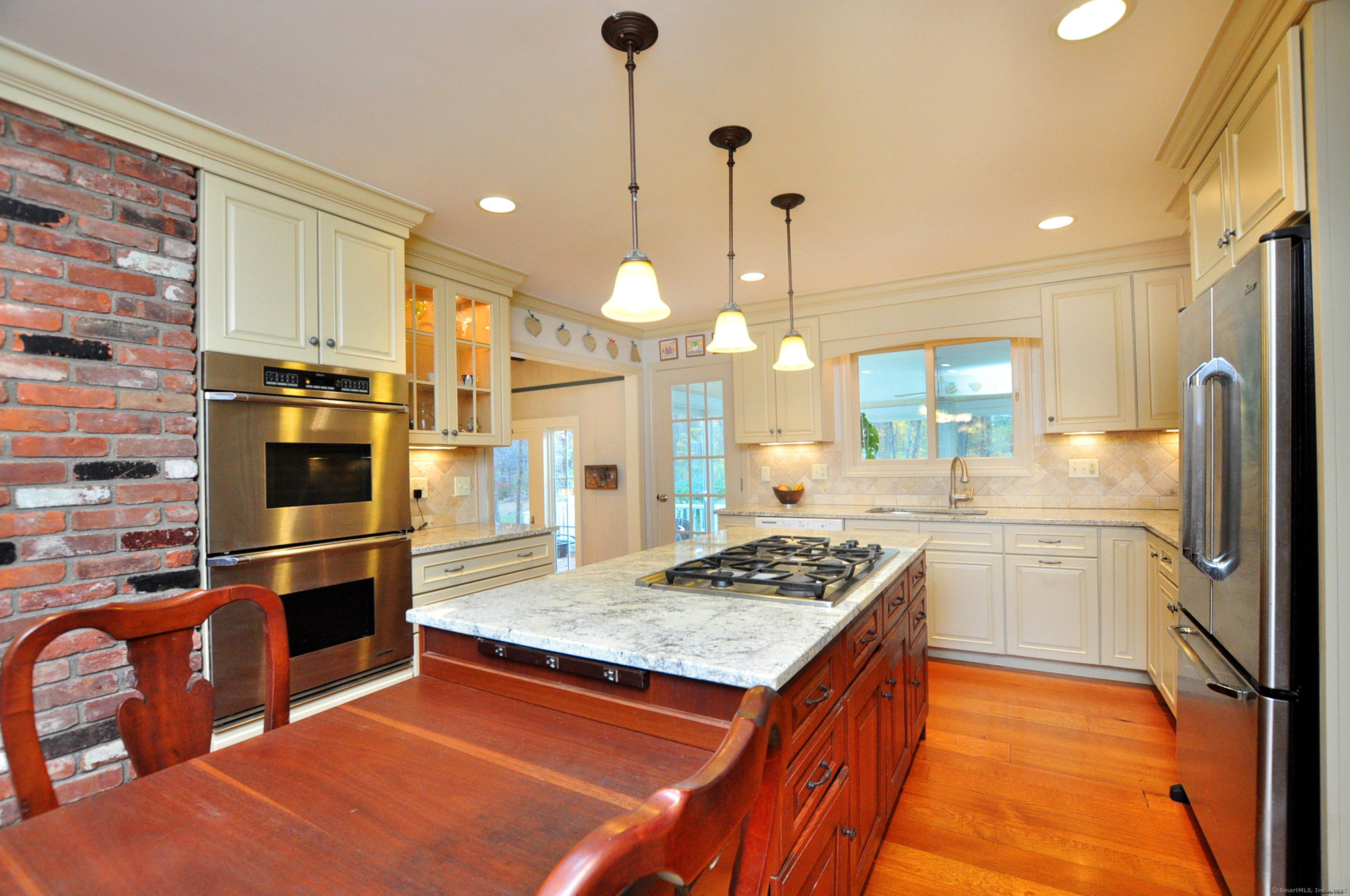 This unique & charming home is filled with wonderful surprises! First, is the delightfully appealing & practical main level floor plan, offering the option of one-level living. The fully re-designed and renovated kitchen features quality cabinetry & granite, an extended center cooking island, upscale appliances & fully-open adjoining dining room. The front-to-back kitchen & dining areas are highlighted by a front bay window & accent brick wall. The kitchen opens to a 3-season sunroom/enclosed porch which will draw you in with its beauty, as it overlooks the most beautiful yard, with sprawling lawn, gardens, great privacy & serene natural setting, including a small footbridge & stream. The cozy front-to-back FR features a center FPL, built-ins and accesses a spacious, newer rear deck & open front porch. The lovely and versatile LR space features French doors, dentil molding and a tranquil bay-window view over the beautiful front landscape. The inviting wide foyer opens to a sweet & sizable main level BR and full bath, ideal for full-time family; guest room or office. A large mudroom connects the att. garages to the living space and opens to the back yard for optimum convenience. All 3 full baths have been beautifully updated. The upper-level BRs are each cheerful, big & bright. Hardwood floors throughout. Radiant heat in kitchen, FR, DR & bath. Newer roof, chimney liner, deck and sliders. An exceptional offering in Southern New Milford's favorite Meadowbrook neighborhood.
