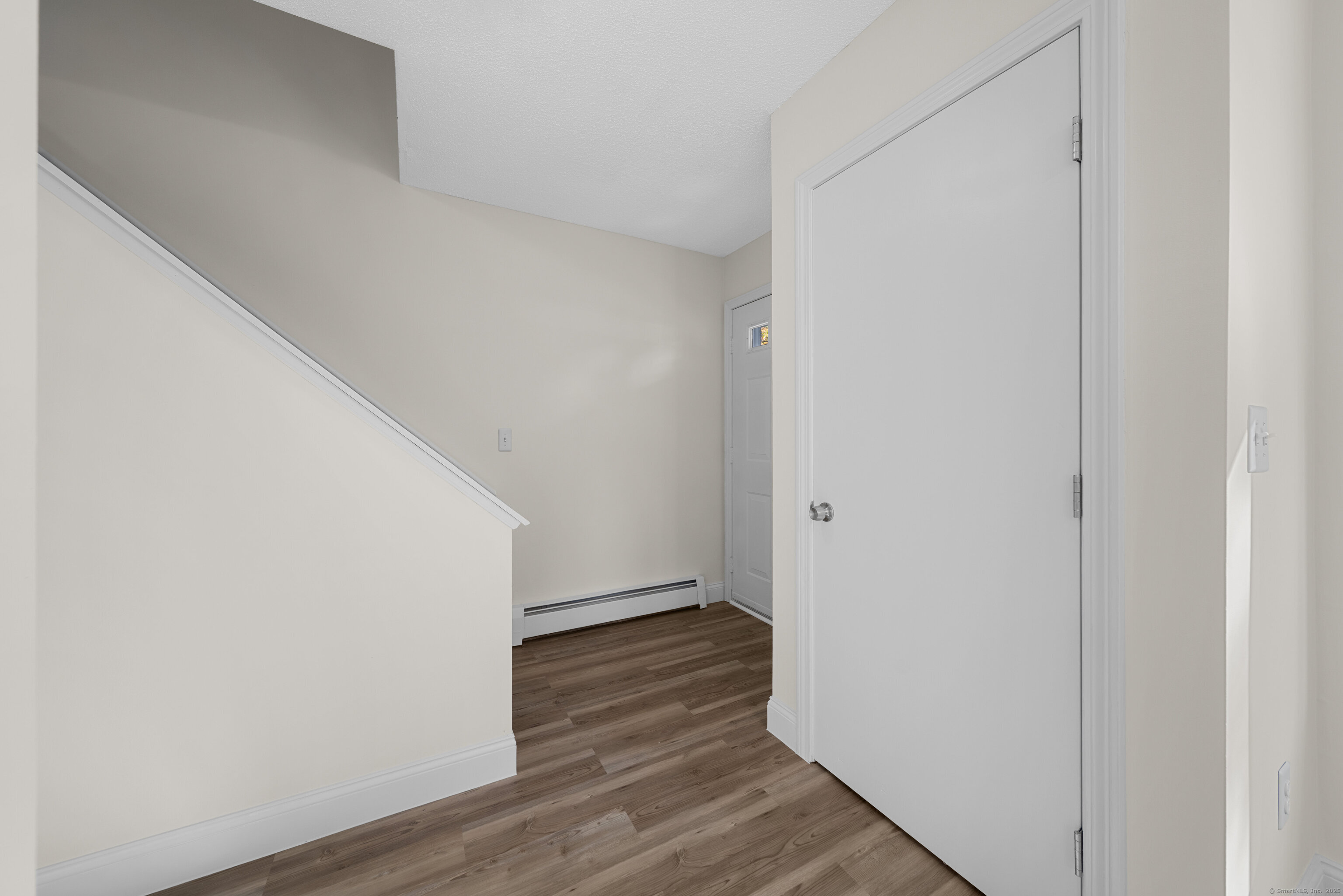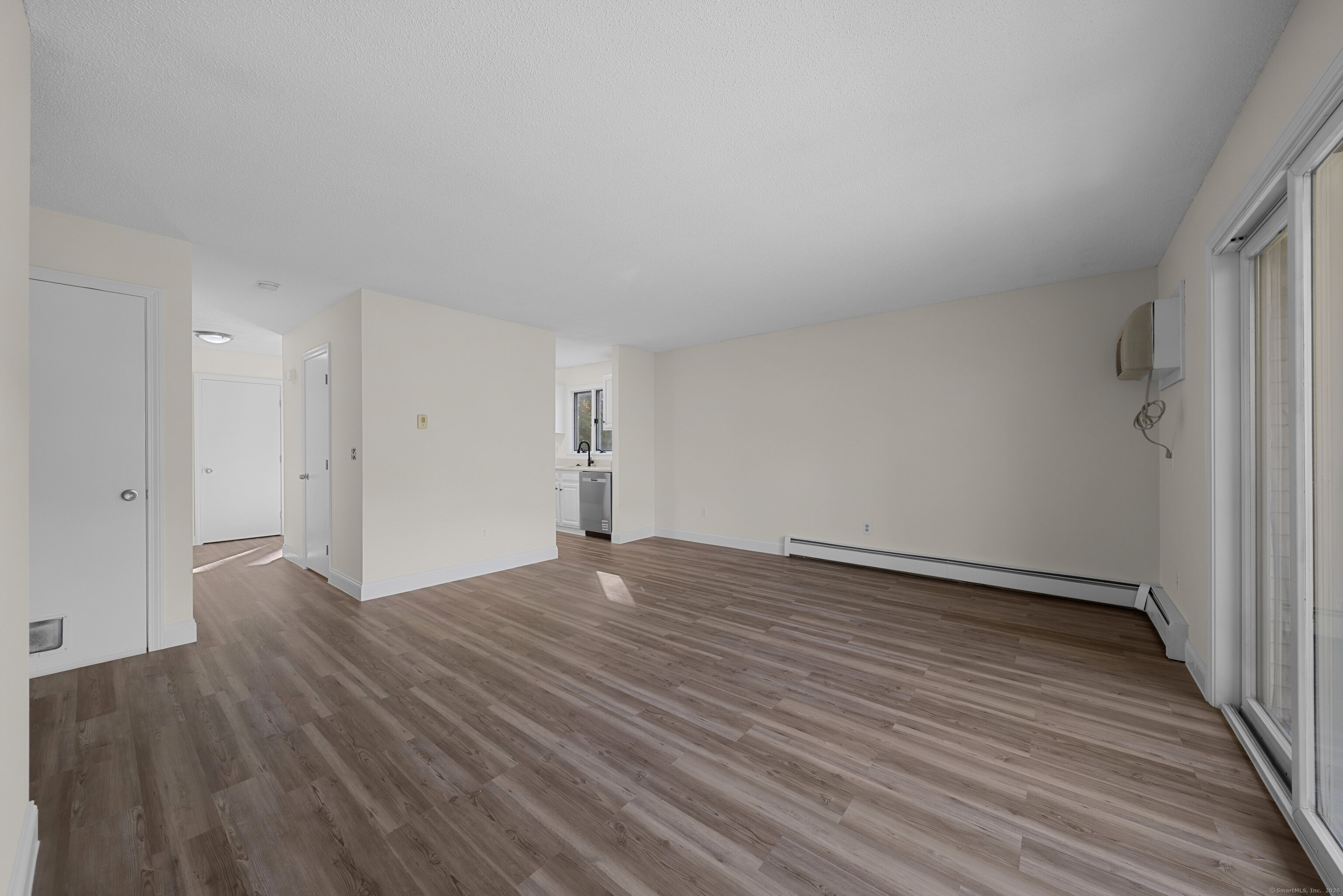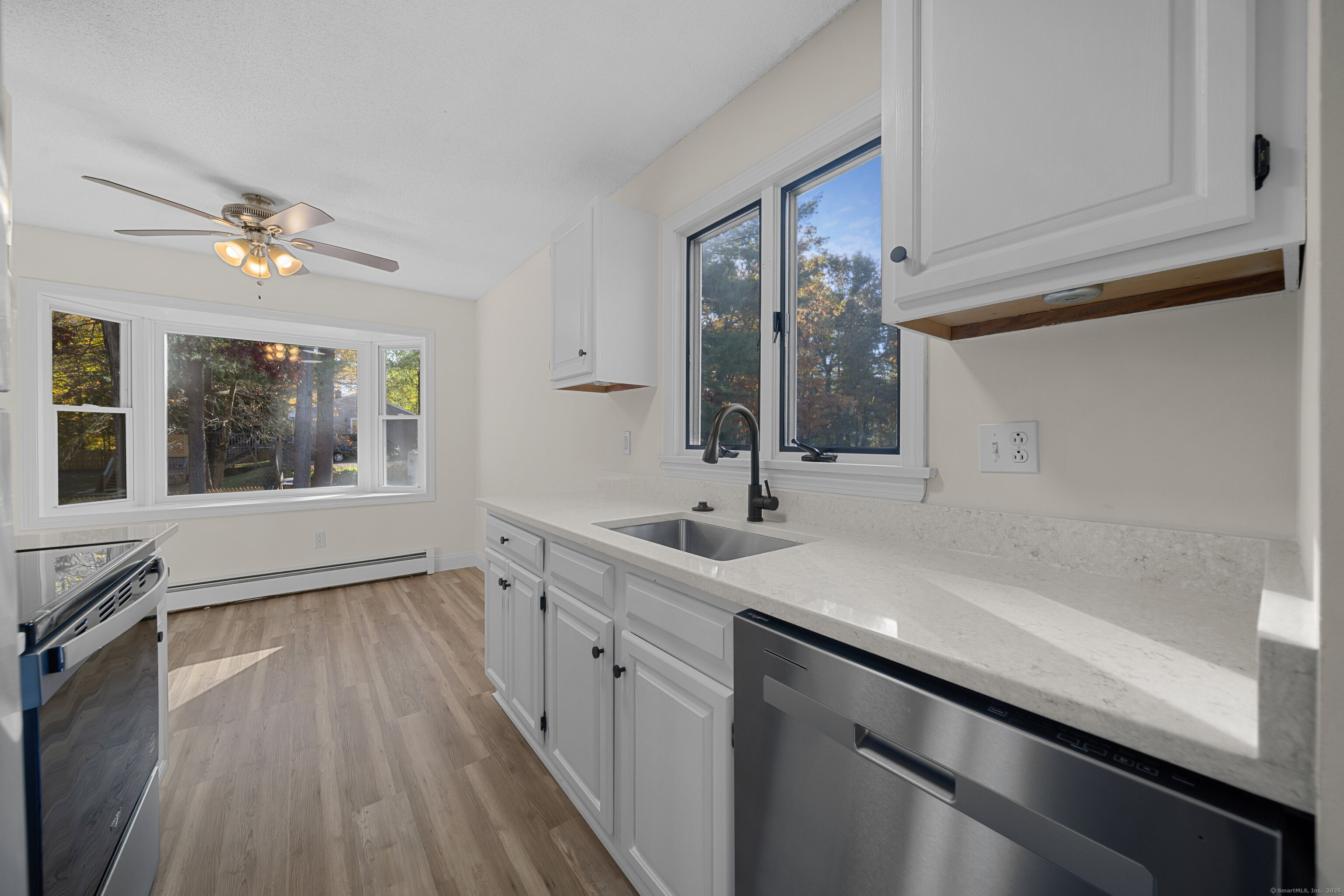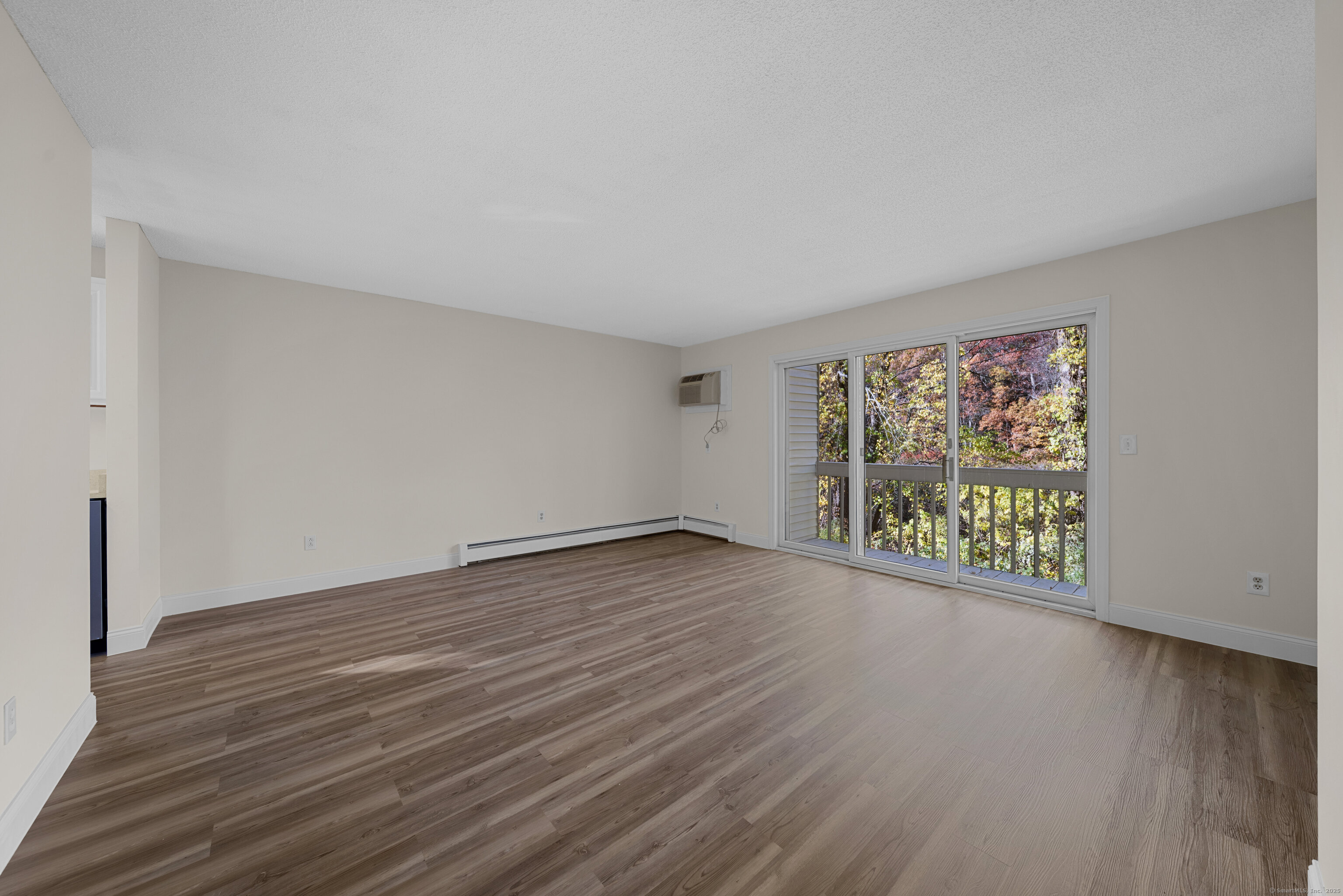 Fully renovated, bright end-unit townhouse! This sunny 2BR, 1.1BA condo features a spacious eat-in kitchen with bay window, open living room with vinyl floors, ceiling fan, and sliders to a private balcony with seasonal pond views. Upstairs, the primary bedroom offers another private balcony and ample closet space, plus an updated full bath and generous second bedroom. New carpet, fresh paint, newer windows, and decks-no future assessments! Enjoy a full basement with washer/dryer, low $259 condo fee, and plenty of parking. Quiet location, yet close to shopping, dining, and the lake.