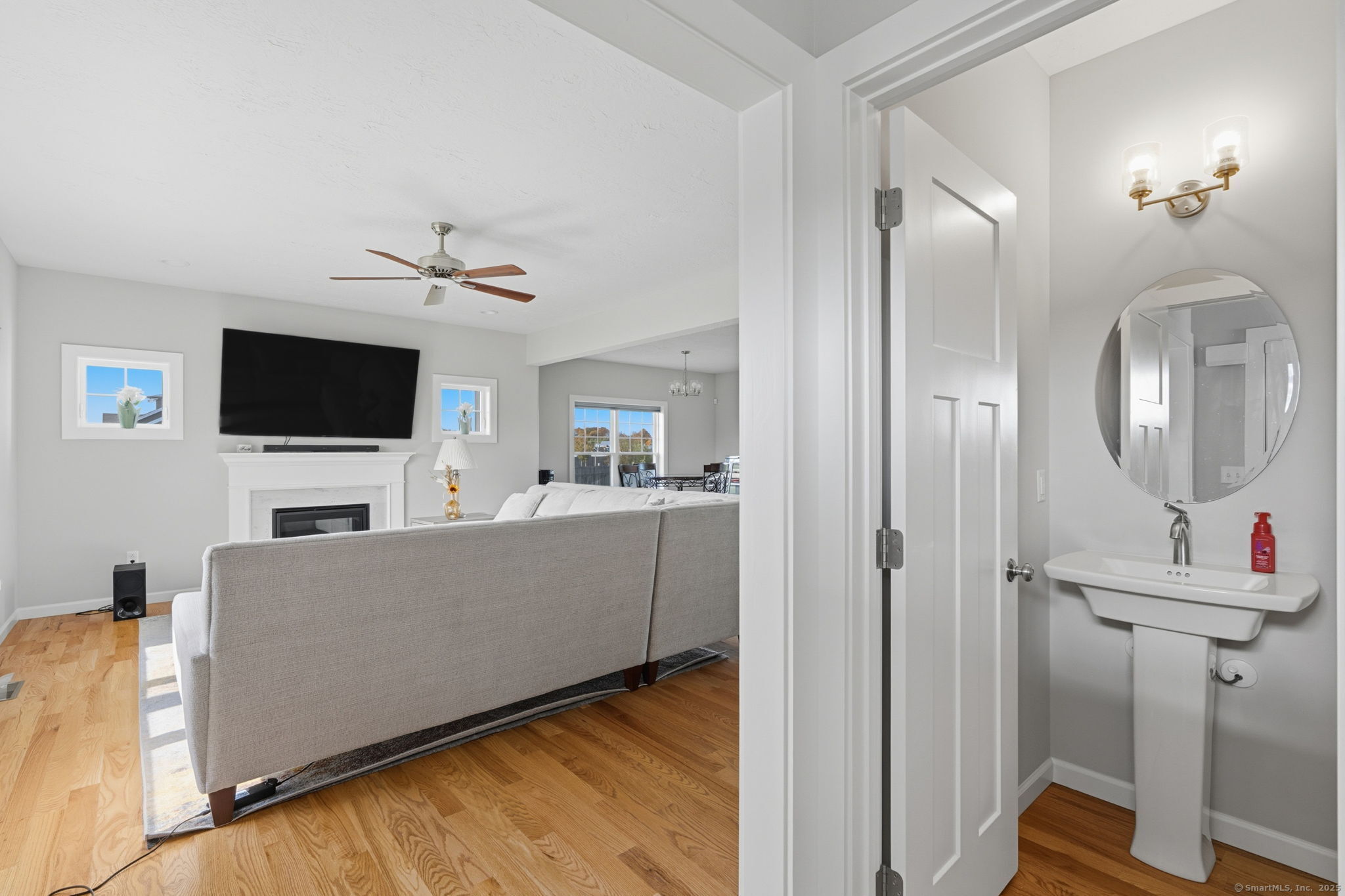 Welcome to 71 Middle Street, tucked away in a quiet and peaceful East Windsor neighborhood. From the moment you arrive, the wide front porch and crisp curb appeal invite you into a home that feels both modern and warm. Inside, beautiful hardwood floors flow throughout the main level, connecting bright, open spaces that are perfect for everyday living and entertaining. The spacious living area blends seamlessly into the dining space and kitchen, where white cabinetry, granite counters, a walk-in pantry, and stainless-steel appliances create a fresh, timeless look. A cozy den on the main level offers a quiet corner for relaxing, reading, or simply enjoying the calm of this home. Upstairs, you'll find three generous bedrooms and two and a half baths, including a primary suite with a full ensuite and double sinks. A large great room provides even more flexibility-ideal for a home office, playroom, gym, or media space-whatever fits your lifestyle best. The unfinished basement offers endless potential for future expansion, while the two-car attached garage adds convenience and storage. Sitting on a flat, cleared 1.02-acre lot, there's plenty of room for gardens, gatherings, or just enjoying the peaceful surroundings. This home offers the perfect balance of space, comfort, and serenity-ready for its next chapter in this quiet East Windsor setting.