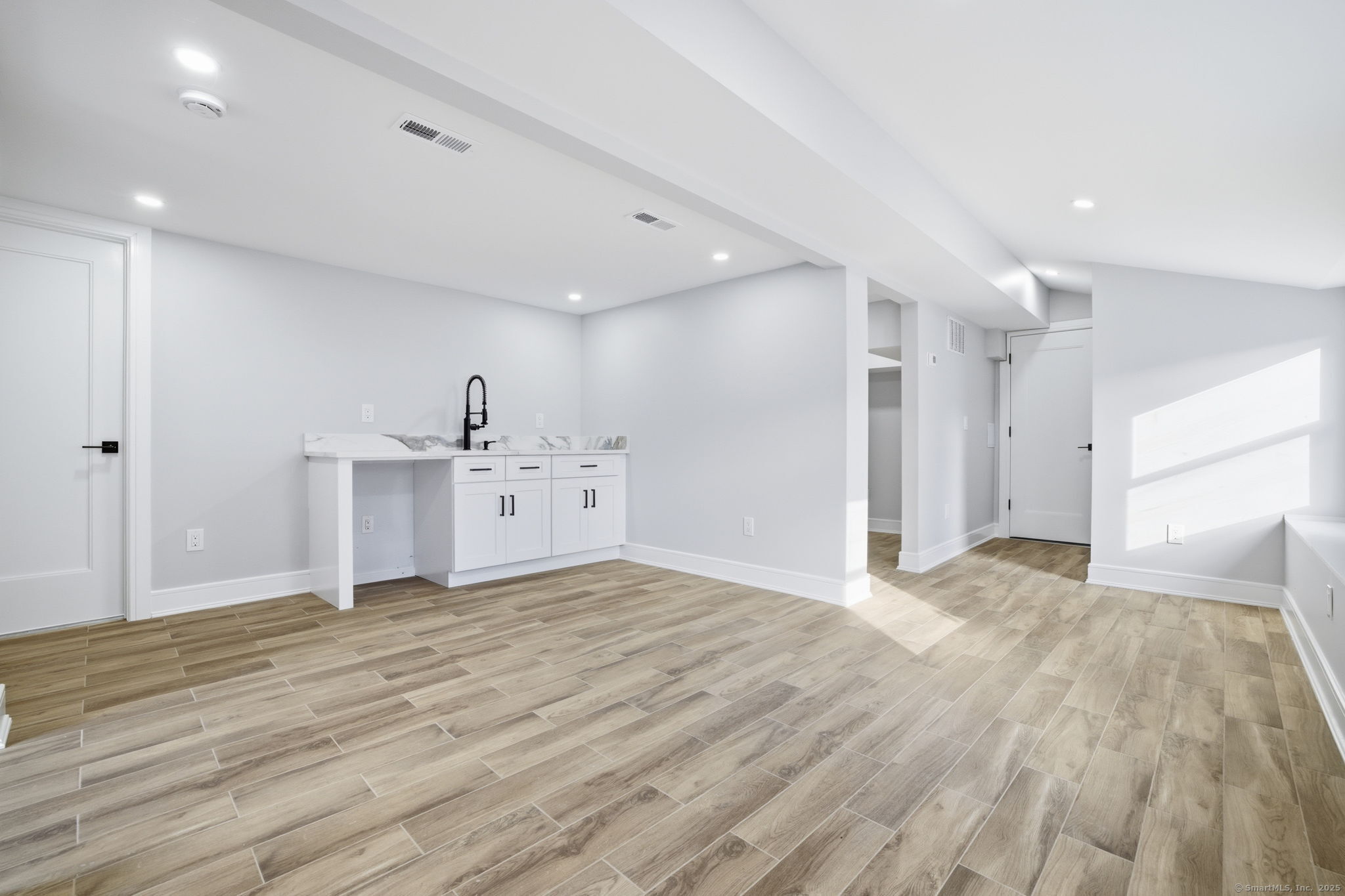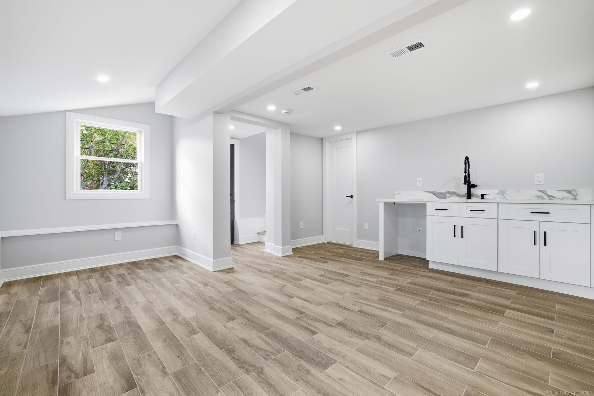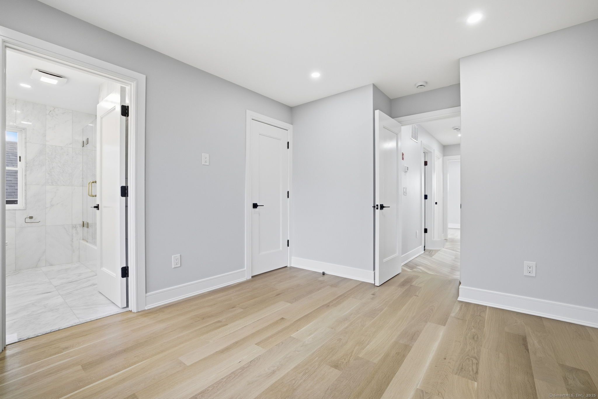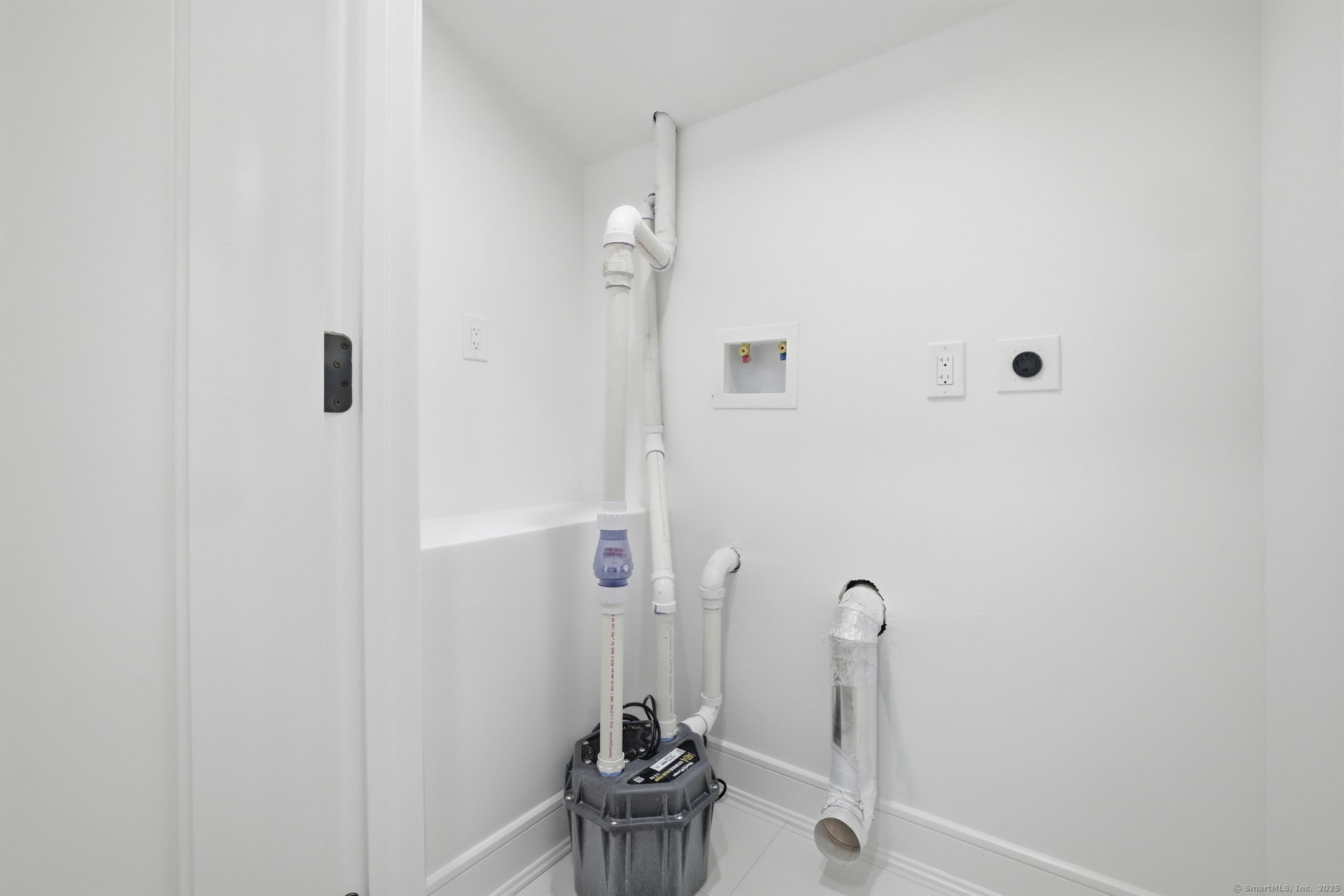 Welcome to this completely renovated 3-bedroom, 3.5-bath luxury home in Greenwich. This stunning residence has been fully updated from top to bottom, featuring a brand-new roof, plumbing, and electrical systems. Designed for modern living, the home offers high-efficiency appliances, Andersen windows, central air, gas furnace, and a tankless water heater-ensuring comfort, performance, and low utility costs. Ideal commuter location with easy access to shopping, dining, I-95. The main level showcases a beautifully appointed eat-in kitchen with direct deck access, perfect for entertaining. The kitchen features white shaker cabinets, granite countertops, a large island, stainless steel appliances, and a stylish backsplash. The sun-filled living room highlights elegant hardwood inlays, and a half bath completes this level. Upstairs, the primary suite offers a true spa-like retreat with marble walls, heated marble floors, and a walk-in closet. Two additional bedrooms share a full bath with a shower/tub combo, also finished with marble walls and heated floors. Beautiful hardwood flooring continues throughout the main and upper levels. The lower level provides exceptional versatility, featuring a full bath, bonus room, white shaker cabinets with sink, and washer/dryer hookups-ideal for an in-law suite, guest area, home office, or family/playroom. A detached oversized one-car garage adds convenience an additional storage. Schedule your private viewing today, this home won't last