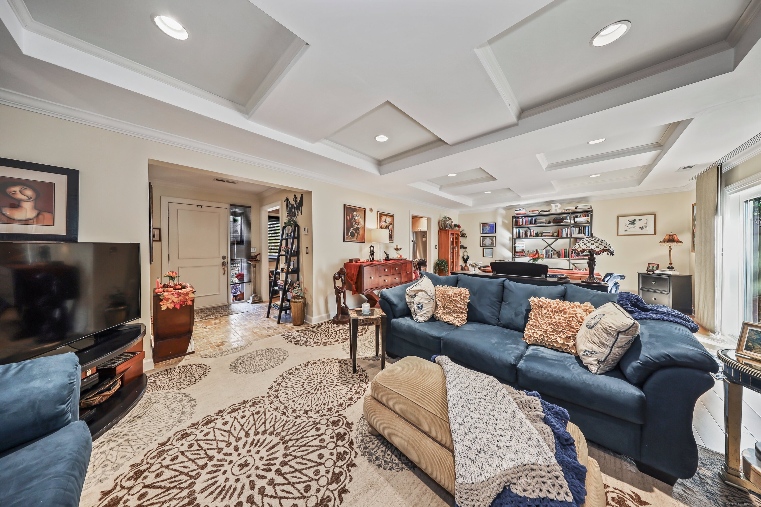 Welcome to this beautifully maintained Sherman model condo located in the Hilltop section of Southbury's Heritage Village! This end unit 1,432 sq. ft. 2BR/2BA home offers easy one-level living with elegant tray ceilings, crown molding throughout, and spa inspired bathrooms. The primary suite offers etched glass doors for a serene feel. Enjoy the private patio and flat walk from the garage offering absolutely zero stairs. Recent updates include brand new refrigerator and dishwasher (2025), water heater (2021), and water meter (2024). This home is move-in ready and ideally located near all the amenities Heritage Village has to offer including fitness center, 4 pools, tennis pickleball and bocce courts, library, art studio, and much more!