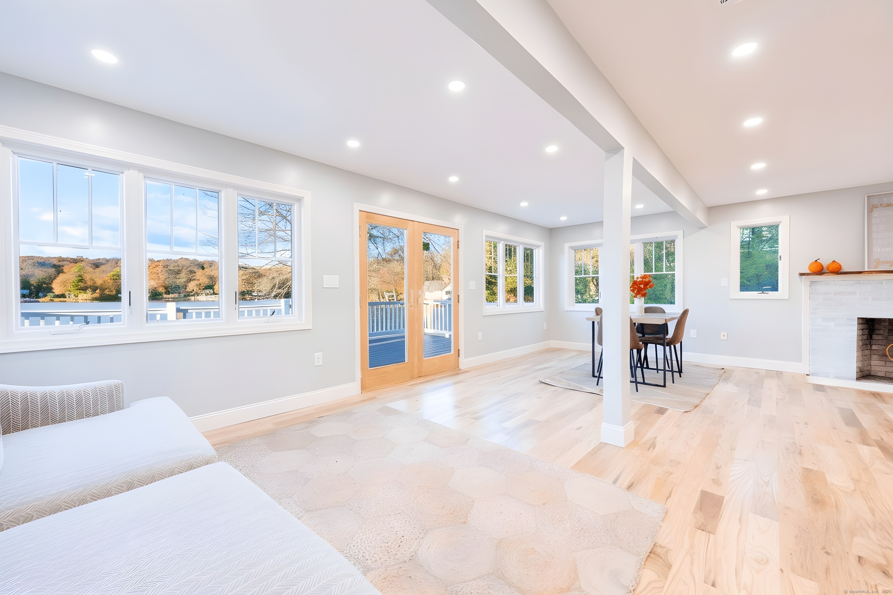 Breathtaking lake views from every room in this beautifully updated home. The open floor plan is designed to maximize natural light and showcase the serene waterfront setting. Featuring 3 bedrooms and 2 tastefully updated bathrooms, this home also boasts gleaming hardwood floors throughout and a brand-new kitchen complete with quartz countertops and new appliances. Cozy up by the fireplace in the combined living and dining area, perfectly positioned to take in the view. Step outside onto the new Trex deck to enjoy unforgettable sunsets over the water. Love an active lifestyle? Launch your kayak or paddleboard just steps from your door and embrace the lakefront living you've always dreamed of!