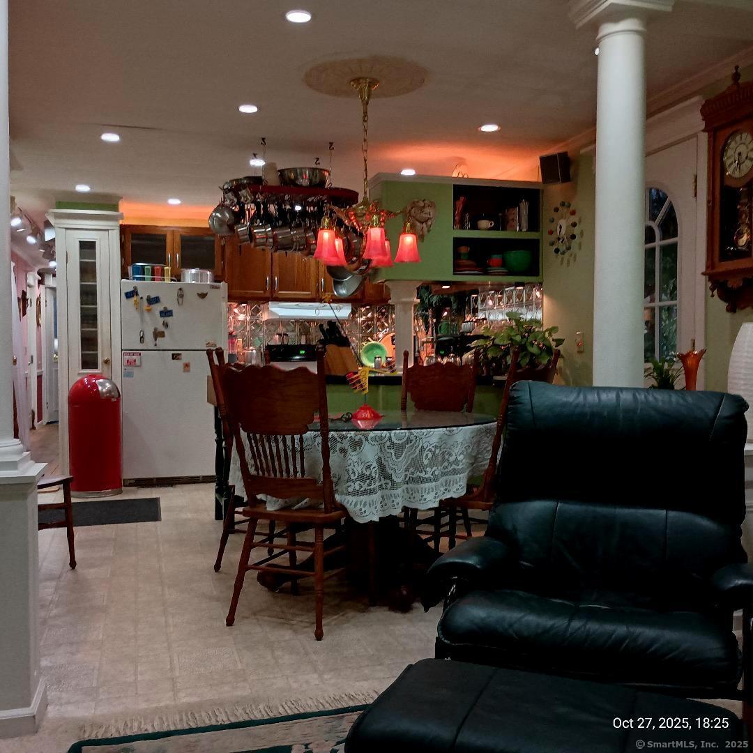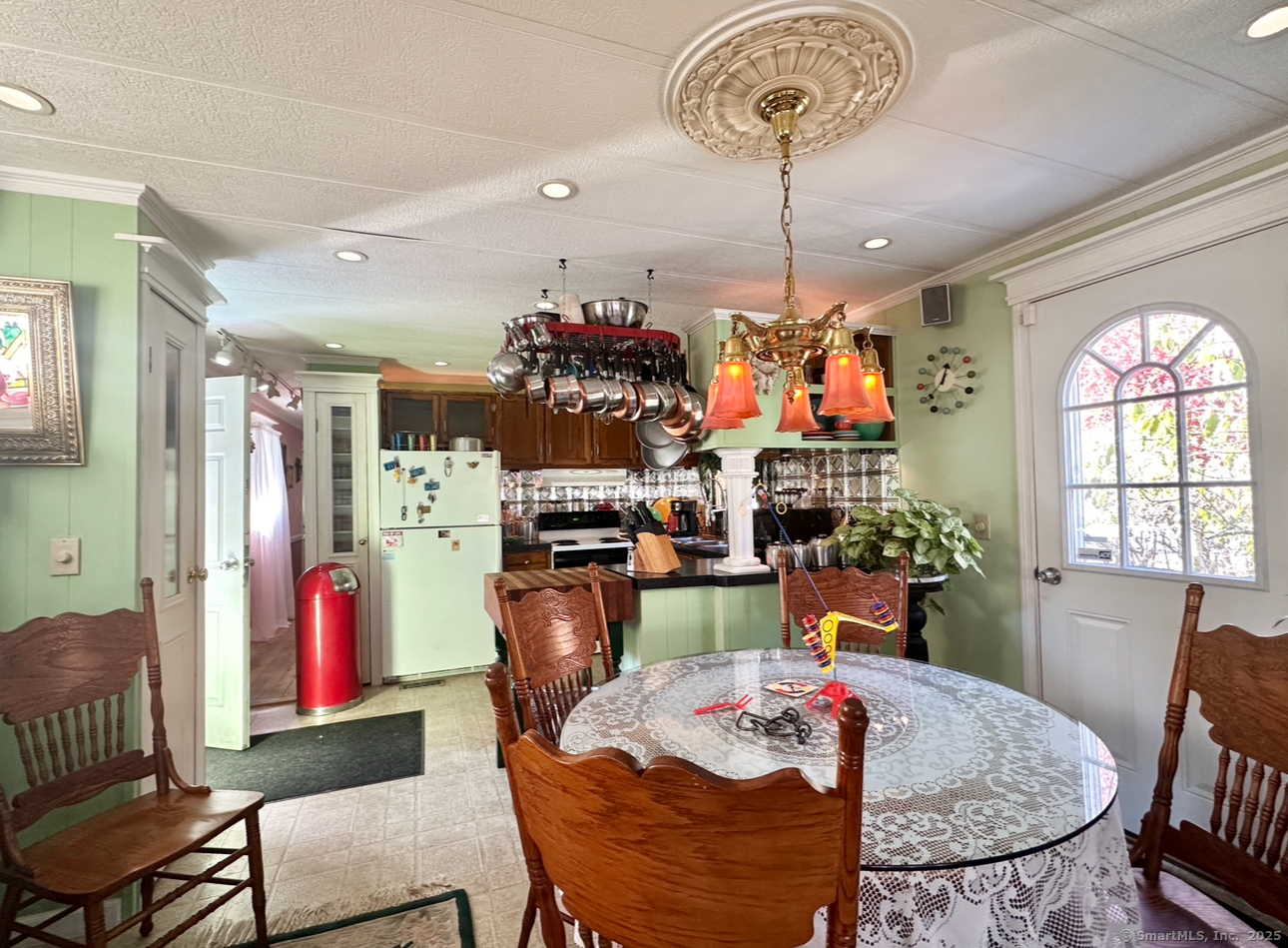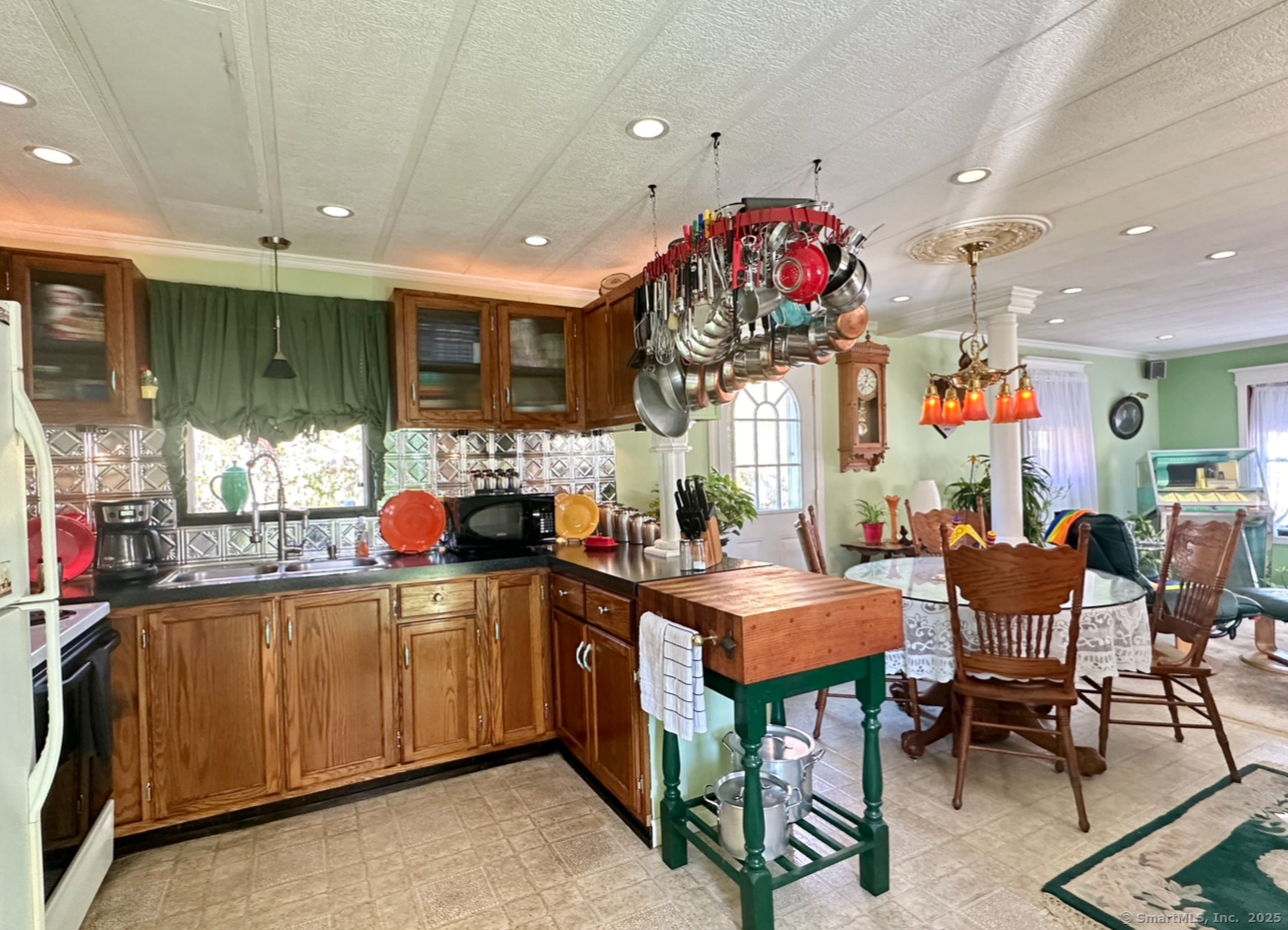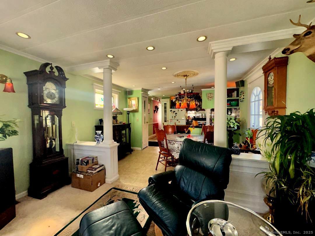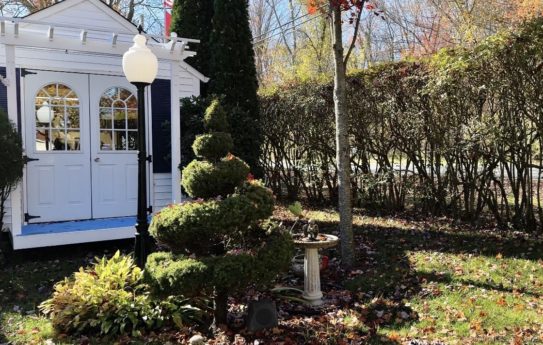 Escape, relax, and be inspired in this charming home nestled on a double-wide lot in Wallingford's desirable Yalesville square. This beautifully maintained property offers character and charm, featuring elegant columns with built-ins, detailed trim work, stained-glass windows, and Victorian-inspired touches throughout. Currently configured as a one bedroom with a media room. It can easily be converted back to a traditional two-bedroom layout with minimal effort. The inviting interior offers recessed lighting, surround sound, and abundant natural light, creating a warm and welcoming atmosphere. Step outside to a tranquil, park-like yard designed for relaxation and entertaining, complete with landscape lighting that highlights the beauty of the grounds at night. A custom-built shed with full power adds even more versatility, perfect for a creative studio or workshop. Enjoy peace of mind with a security system, central air, and major updates including a new roof and furnace replaced in 2012. This home offers both serenity and style, making it the perfect retreat in one of Wallingford's most charming neighborhood. Don't miss your chance to experience the beauty and inspiration this home has to offer.