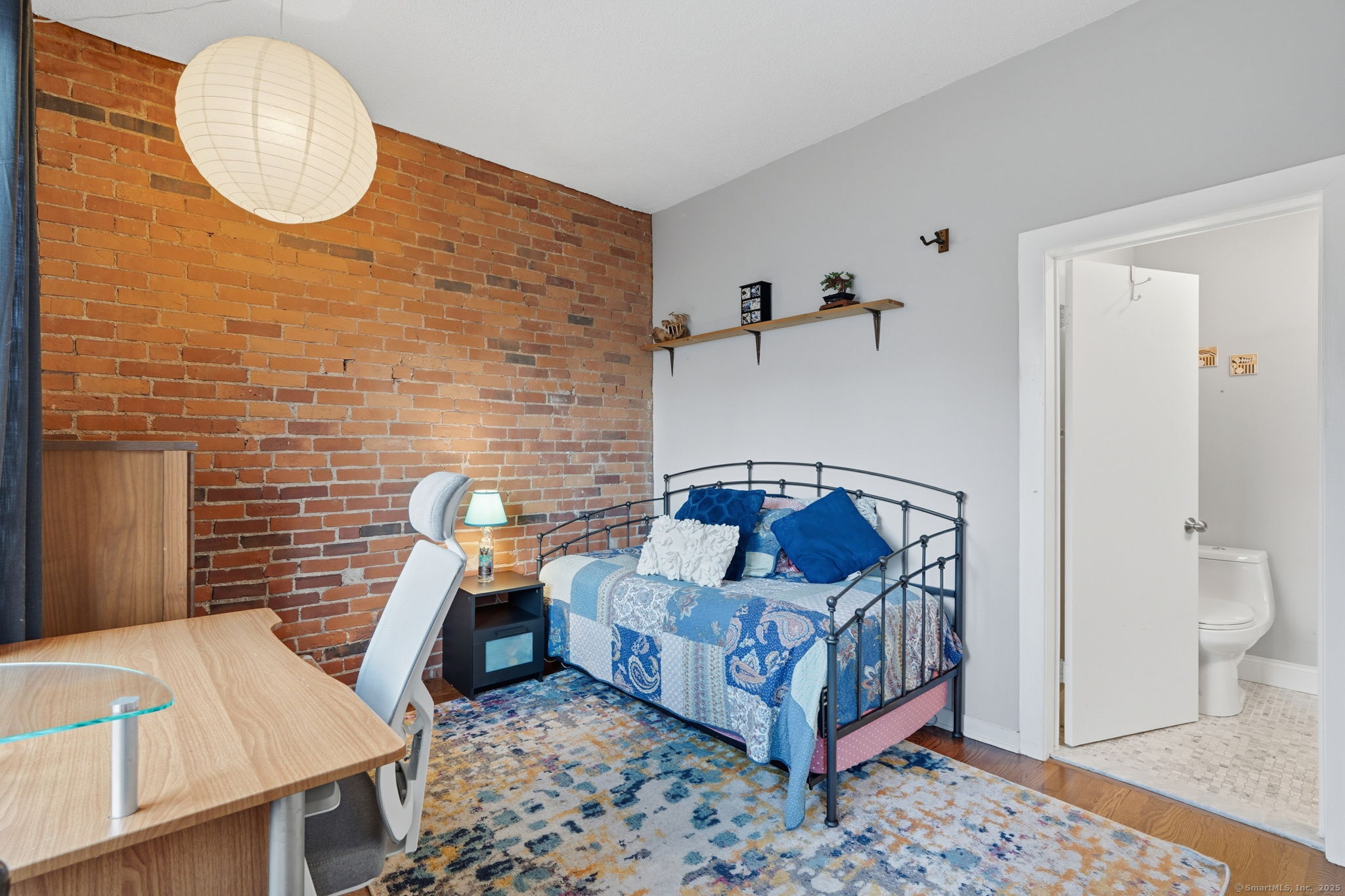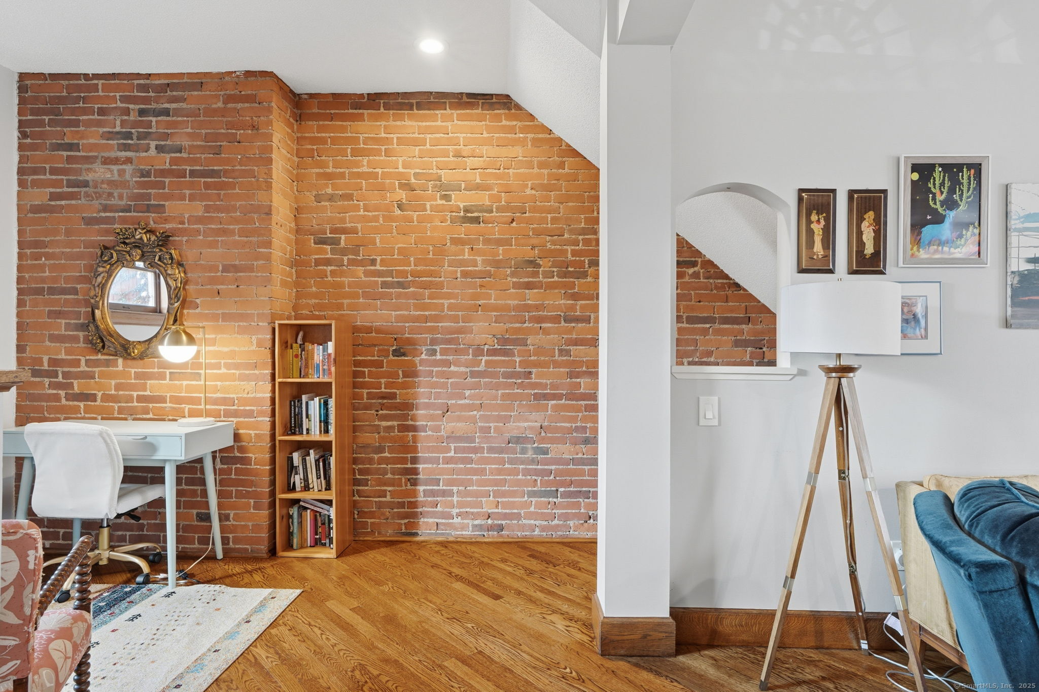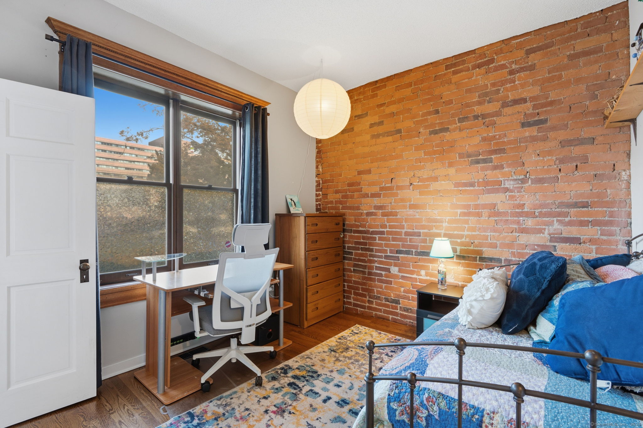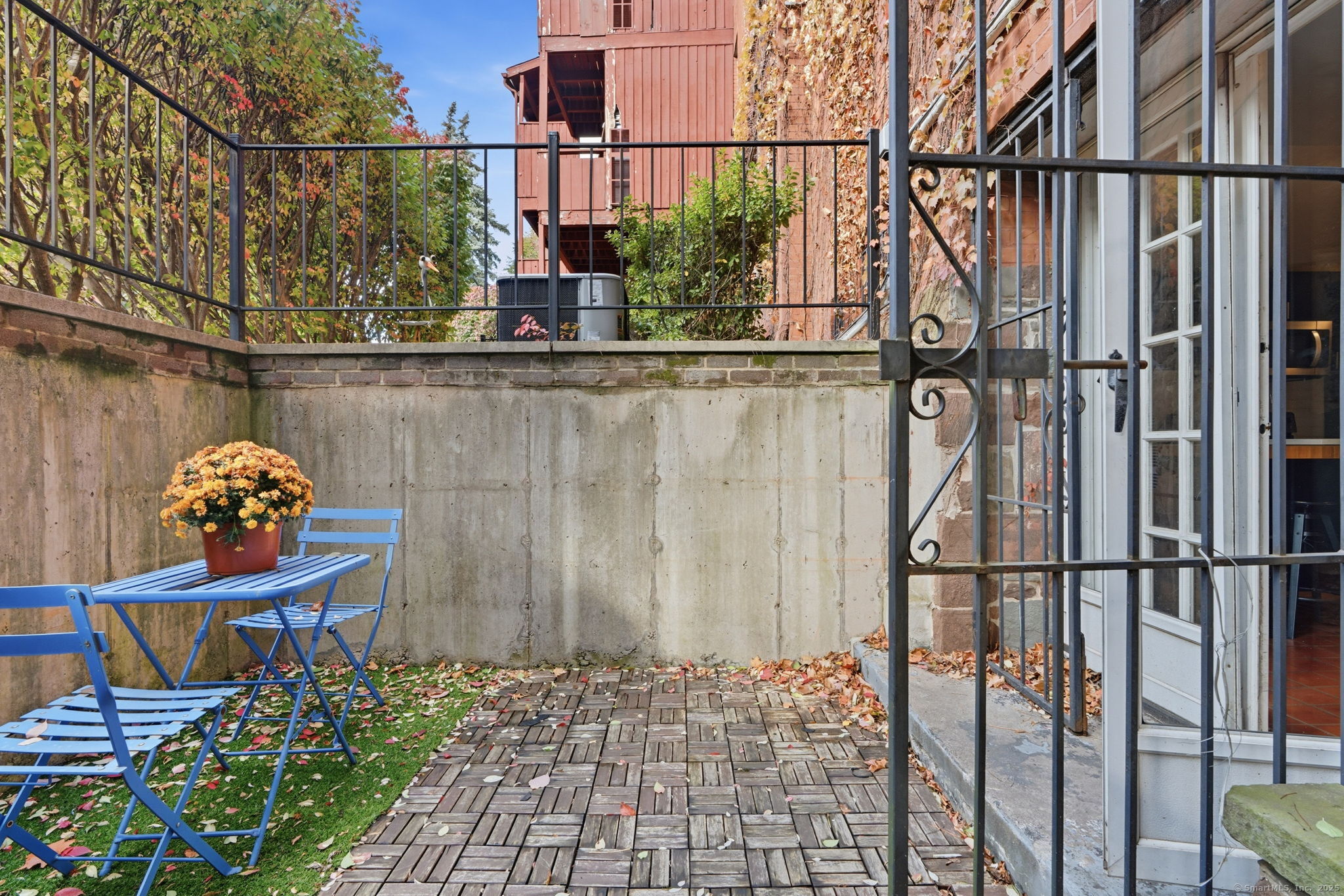 Experience refined urban living in this sprawling two-story upscale townhouse located in the heart of Hartford's historic West End. Offering the perfect blend of space, elegance, and modern comfort, this remarkable residence stands out with its vaulted ceilings, exposed brick walls, and sophisticated open-concept design. Featuring 1,381 square feet, 2 beds and 2.5 bathrooms, you will be impressed the moment you walk in. The expansive main level welcomes you with an impressive 18x20 great room, accented by rich hardwood floors, brick walls and a flexible 8x10 home office or bonus nook-ideal for today's lifestyle needs. The lower level boasts a modern, updated kitchen and dining area with sleek finishes, newer appliances, and a convenient pantry, opening to a private patio/terrace perfect for relaxing or entertaining. A stylish half bath and oversized laundry room complete the lower level, offering both functionality and flair. The main level offers two generous bedroom suites, each with its own private bath. The primary suite exudes comfort and sophistication with a fireplace, ample closet space, & renovated bath, while the second bedroom offers large windows and abundant natural light & private full bath with a neo-angle shower. Completely remodeled in the last 6 years, this home artfully balances historic charm with contemporary design and a spacious layout. Enjoy refreshed hardwood floors, updated bathrooms, newer mechanicals, heat & central air all within a boutique condo