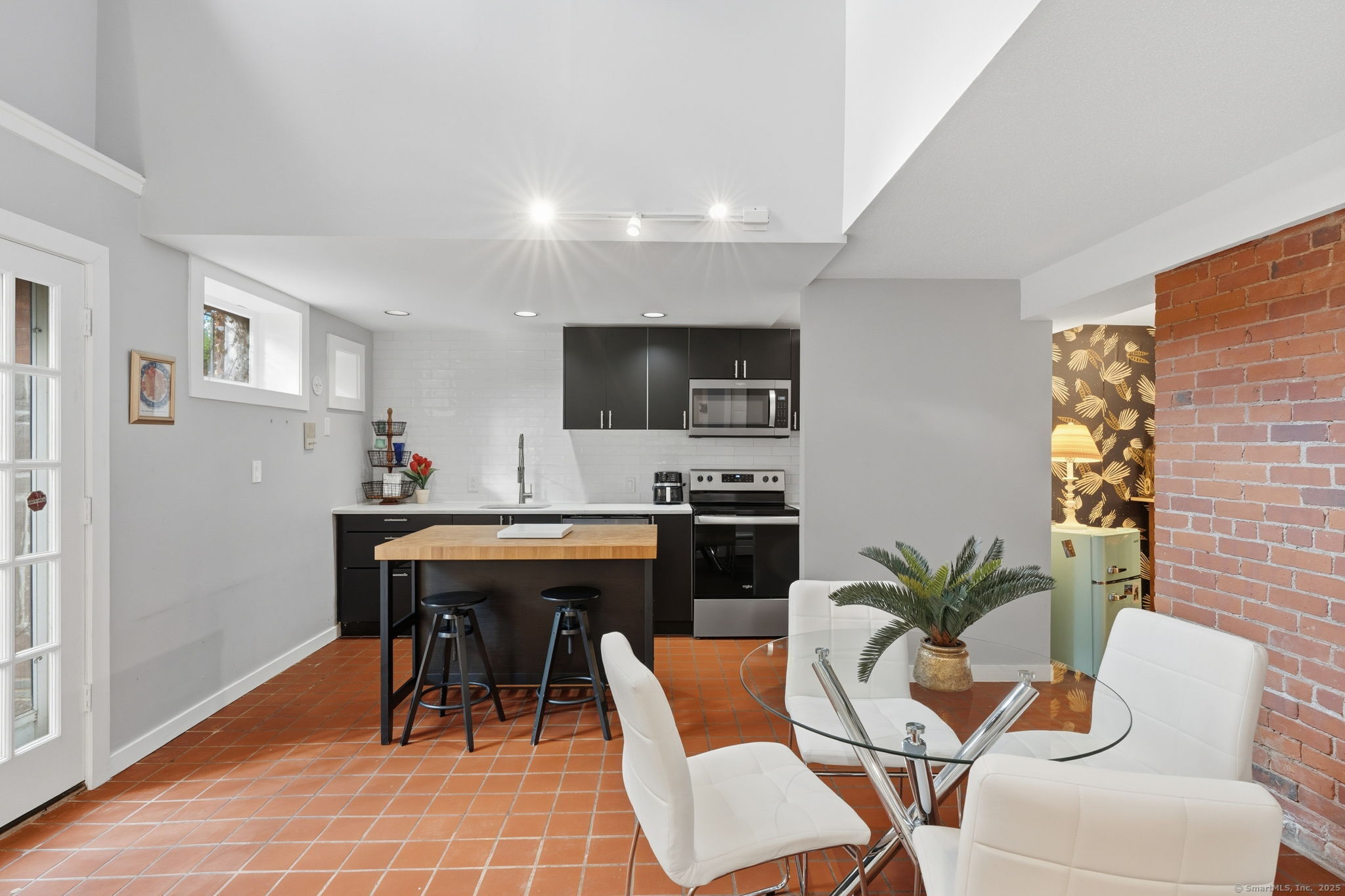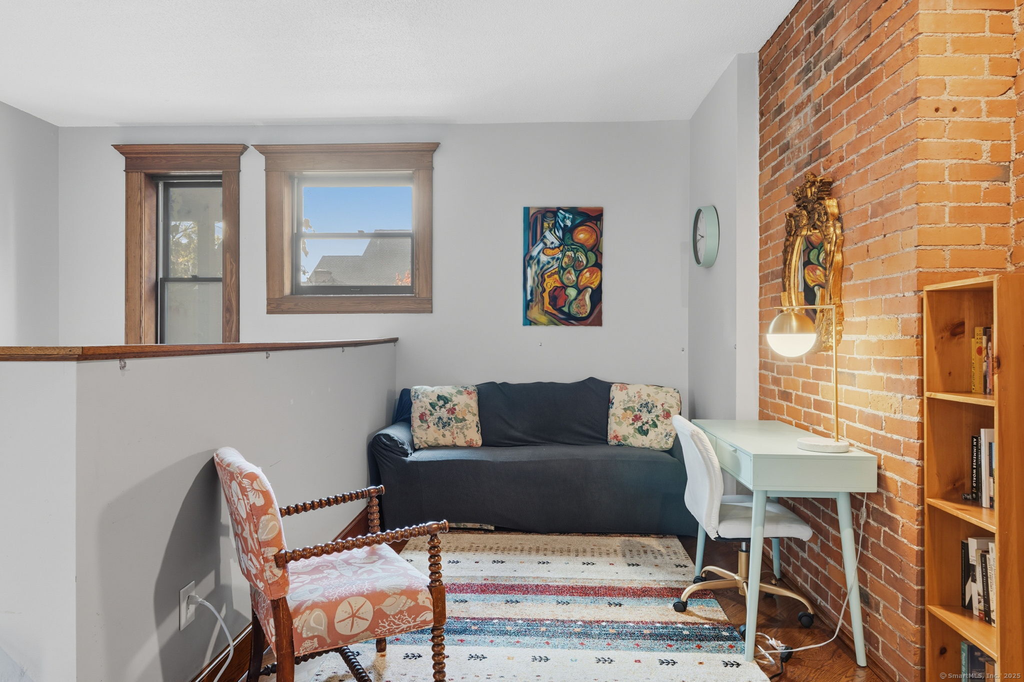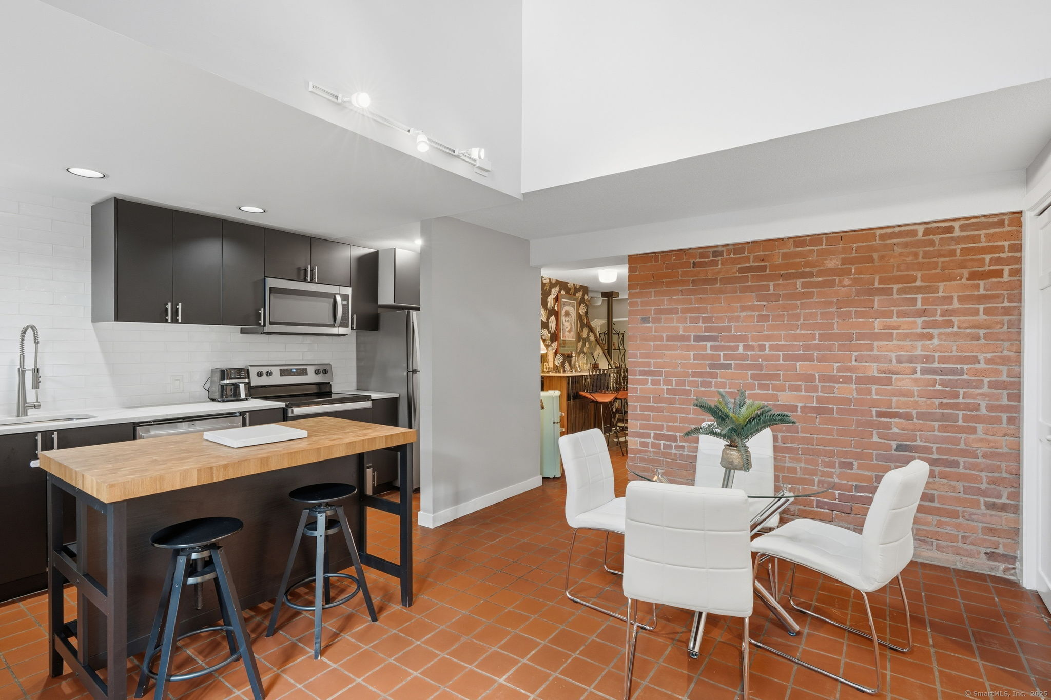 Experience refined urban living in this sprawling two-story upscale townhouse located in the heart of Hartford's historic West End. Offering the perfect blend of space, elegance, and modern comfort, this remarkable residence stands out with its vaulted ceilings, exposed brick walls, and sophisticated open-concept design. Featuring 1,381 square feet, 2 beds and 2.5 bathrooms, you will be impressed the moment you walk in. The expansive main level welcomes you with an impressive 18x20 great room, accented by rich hardwood floors, brick walls and a flexible 8x10 home office or bonus nook-ideal for today's lifestyle needs. The lower level boasts a modern, updated kitchen and dining area with sleek finishes, newer appliances, and a convenient pantry, opening to a private patio/terrace perfect for relaxing or entertaining. A stylish half bath and oversized laundry room complete the lower level, offering both functionality and flair. The main level offers two generous bedroom suites, each with its own private bath. The primary suite exudes comfort and sophistication with a fireplace, ample closet space, & renovated bath, while the second bedroom offers large windows and abundant natural light & private full bath with a neo-angle shower. Completely remodeled in the last 6 years, this home artfully balances historic charm with contemporary design and a spacious layout. Enjoy refreshed hardwood floors, updated bathrooms, newer mechanicals, heat & central air all within a boutique condo