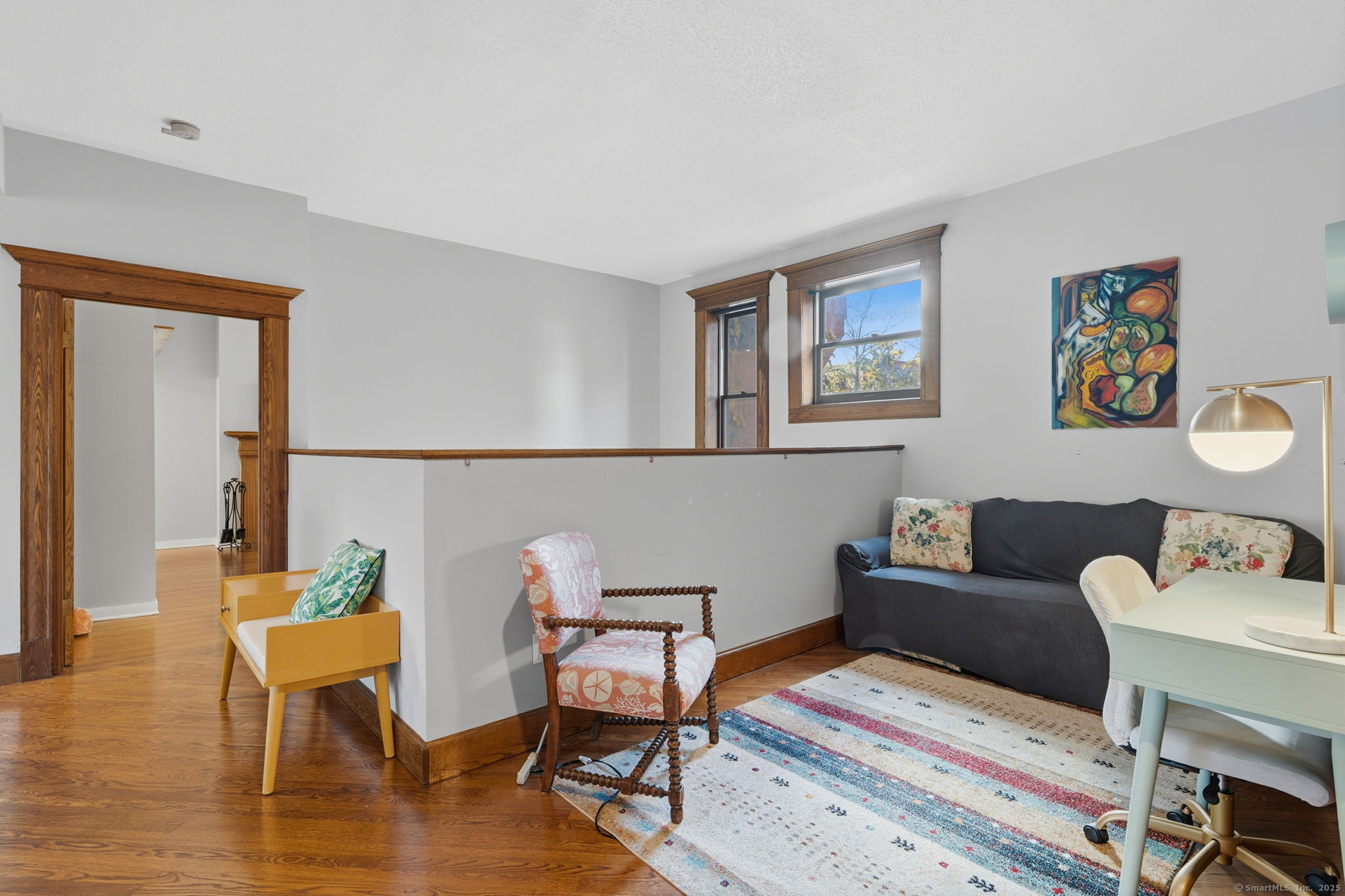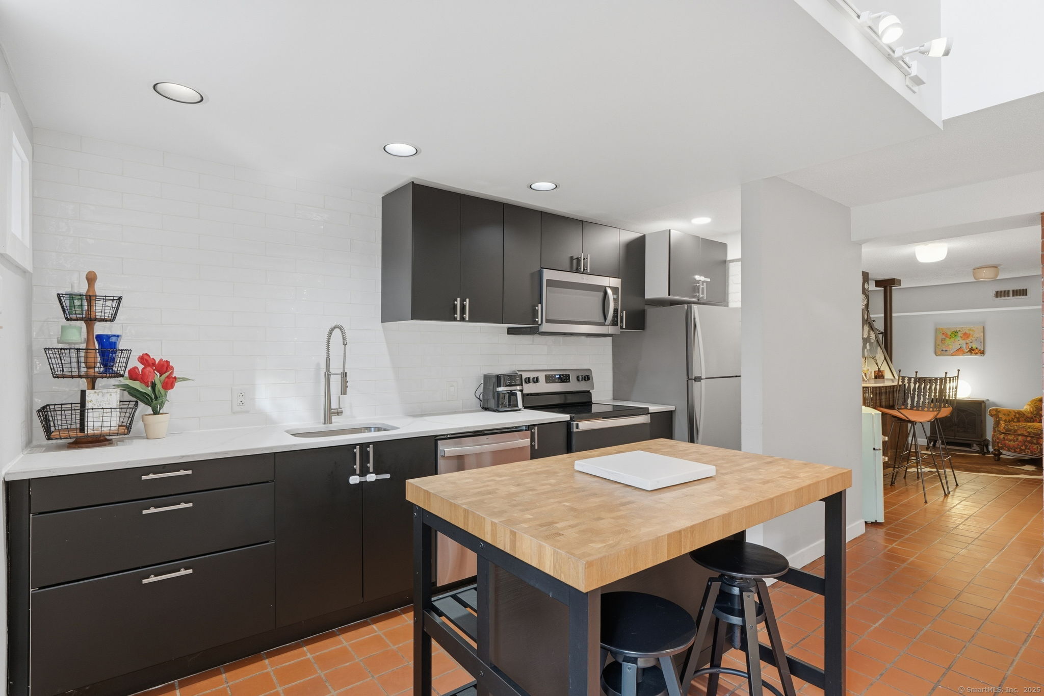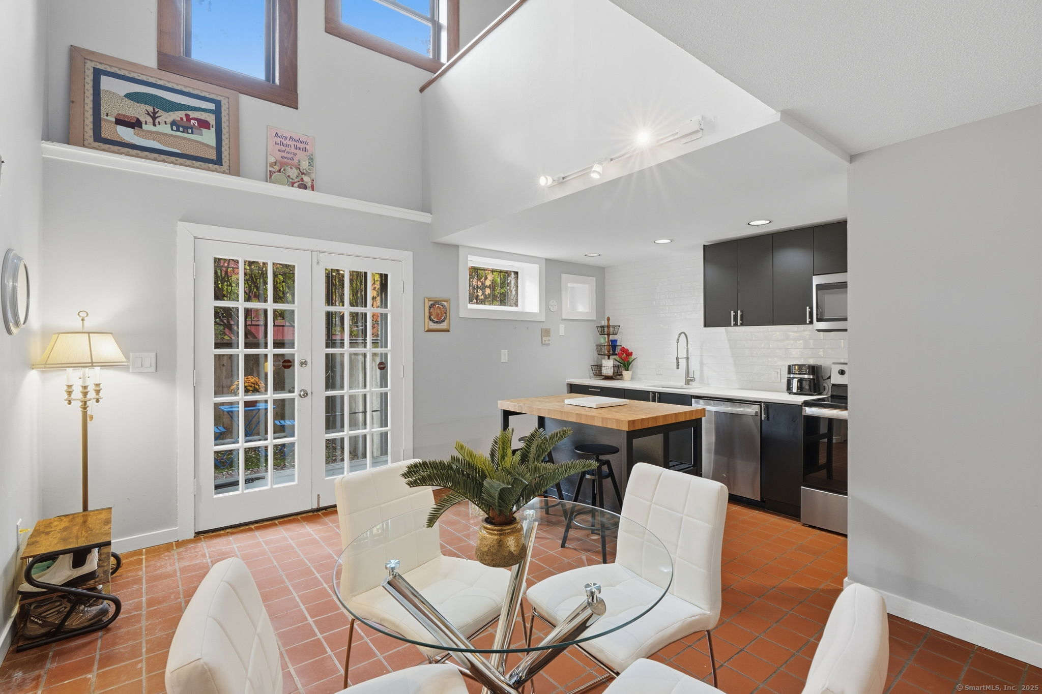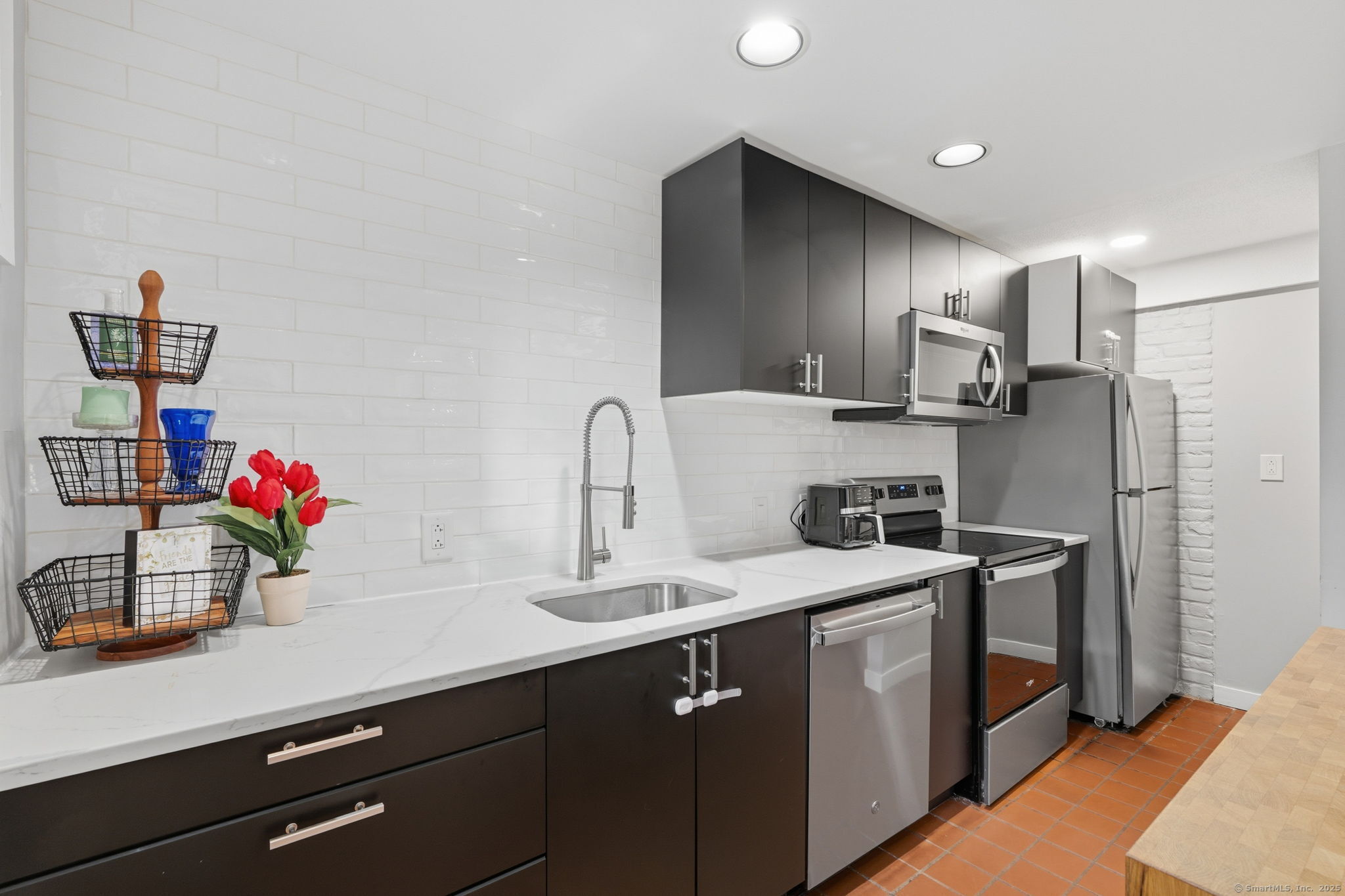 Experience refined urban living in this sprawling two-story upscale townhouse located in the heart of Hartford's historic West End. Offering the perfect blend of space, elegance, and modern comfort, this remarkable residence stands out with its vaulted ceilings, exposed brick walls, and sophisticated open-concept design. Featuring 1,381 square feet, 2 beds and 2.5 bathrooms, you will be impressed the moment you walk in. The expansive main level welcomes you with an impressive 18x20 great room, accented by rich hardwood floors, brick walls and a flexible 8x10 home office or bonus nook-ideal for today's lifestyle needs. The lower level boasts a modern, updated kitchen and dining area with sleek finishes, newer appliances, and a convenient pantry, opening to a private patio/terrace perfect for relaxing or entertaining. A stylish half bath and oversized laundry room complete the lower level, offering both functionality and flair. The main level offers two generous bedroom suites, each with its own private bath. The primary suite exudes comfort and sophistication with a fireplace, ample closet space, & renovated bath, while the second bedroom offers large windows and abundant natural light & private full bath with a neo-angle shower. Completely remodeled in the last 6 years, this home artfully balances historic charm with contemporary design and a spacious layout. Enjoy refreshed hardwood floors, updated bathrooms, newer mechanicals, heat & central air all within a boutique condo