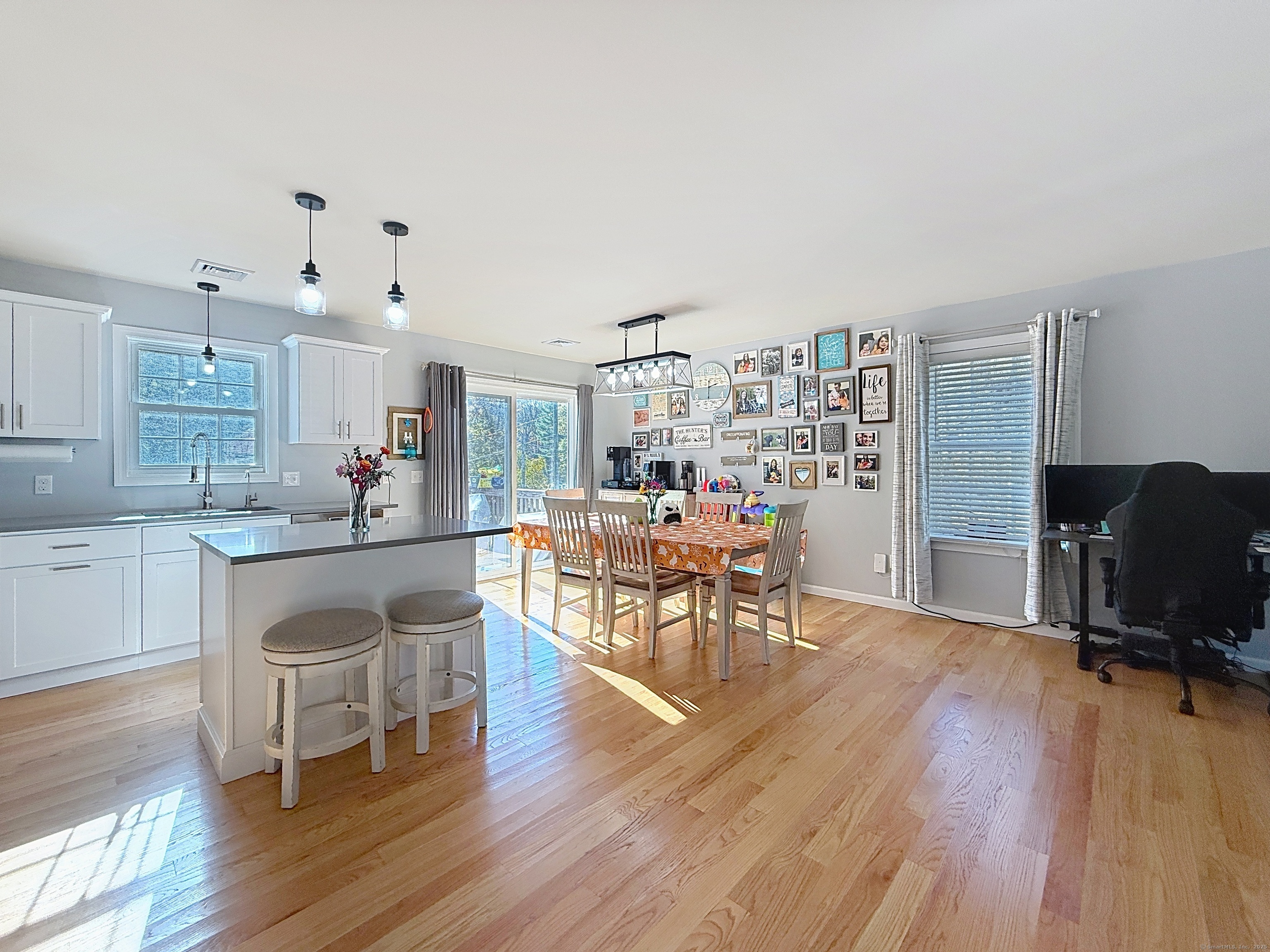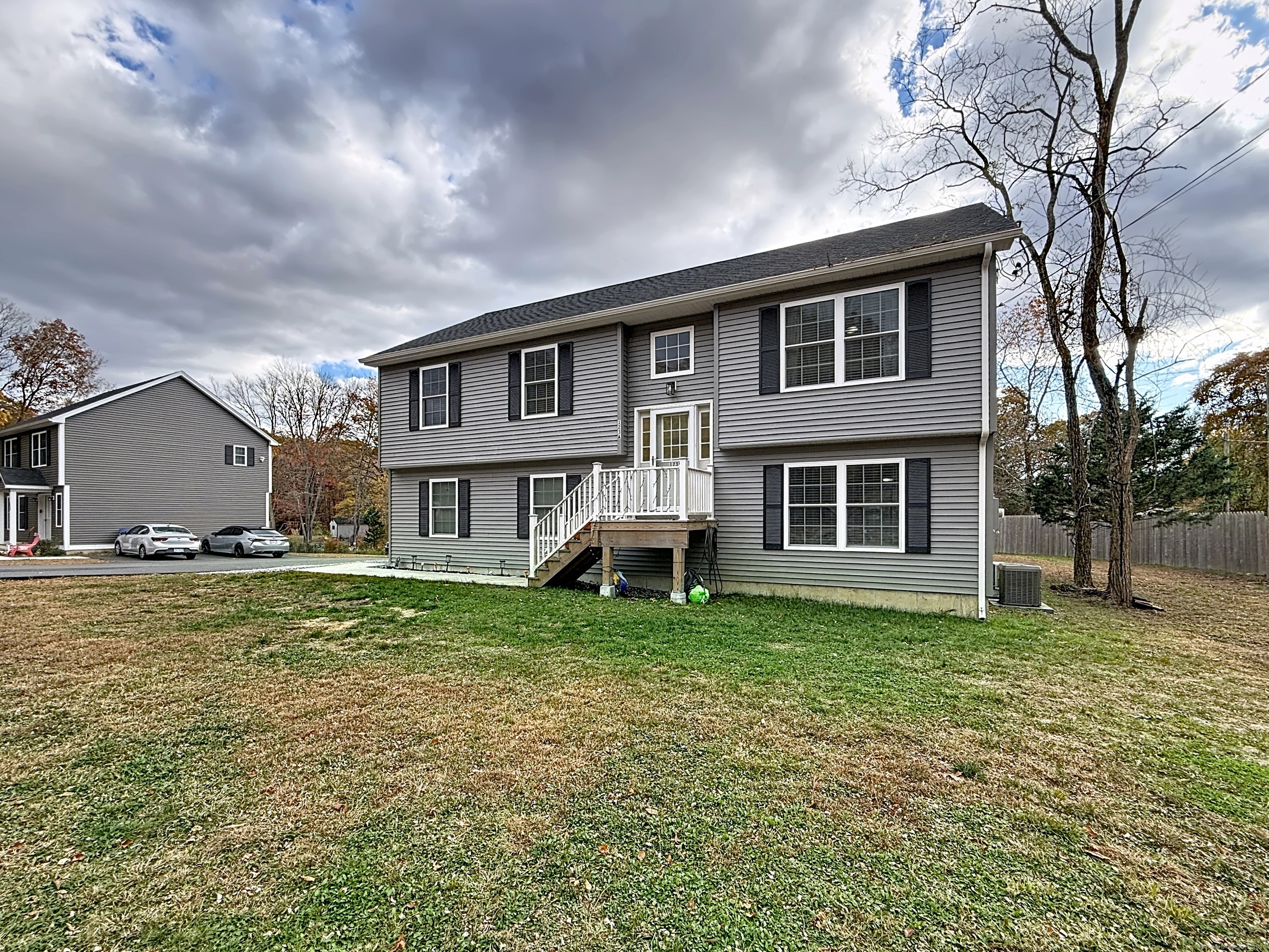 Welcome to this modern 3-bedroom, 2.5-bath raised ranch, perfectly located just 5 miles from the Naval Submarine Base. Built in 2023, this nearly new home offers a perfect blend of style, comfort, and convenience. Step inside to a bright, open-concept living area featuring large windows, luxury flooring, new electric fireplace and a stunning kitchen with stainless steel appliances, quartz countertops, and a center island-ideal for entertaining. The spacious primary suite includes a private en-suite bath with contemporary finishes. Two additional bedrooms and another full bath provide plenty of space for family, guests, or a home office. Enjoy year-round comfort with central air conditioning, and appreciate the convenience of a two-car garage and low-maintenance exterior. The raised ranch design offers a versatile lower level, perfect for a family room, gym, or hobby space. Located in a desirable area just minutes from the Sub Base, shopping, restaurants, and major highways, this home combines modern living with unbeatable accessibility. Don't miss this opportunity to own a move-in ready home with all the modern upgrades - schedule your private showing today!