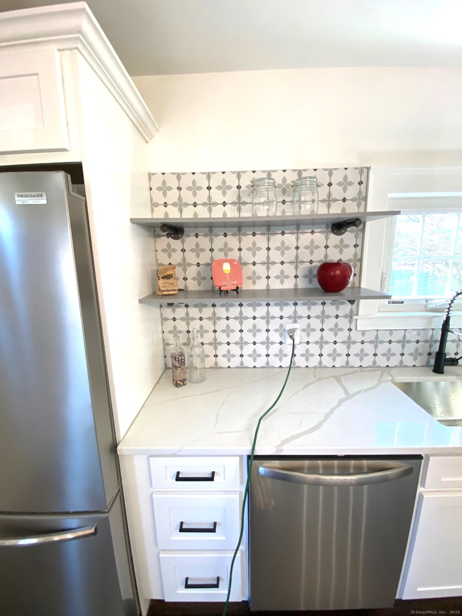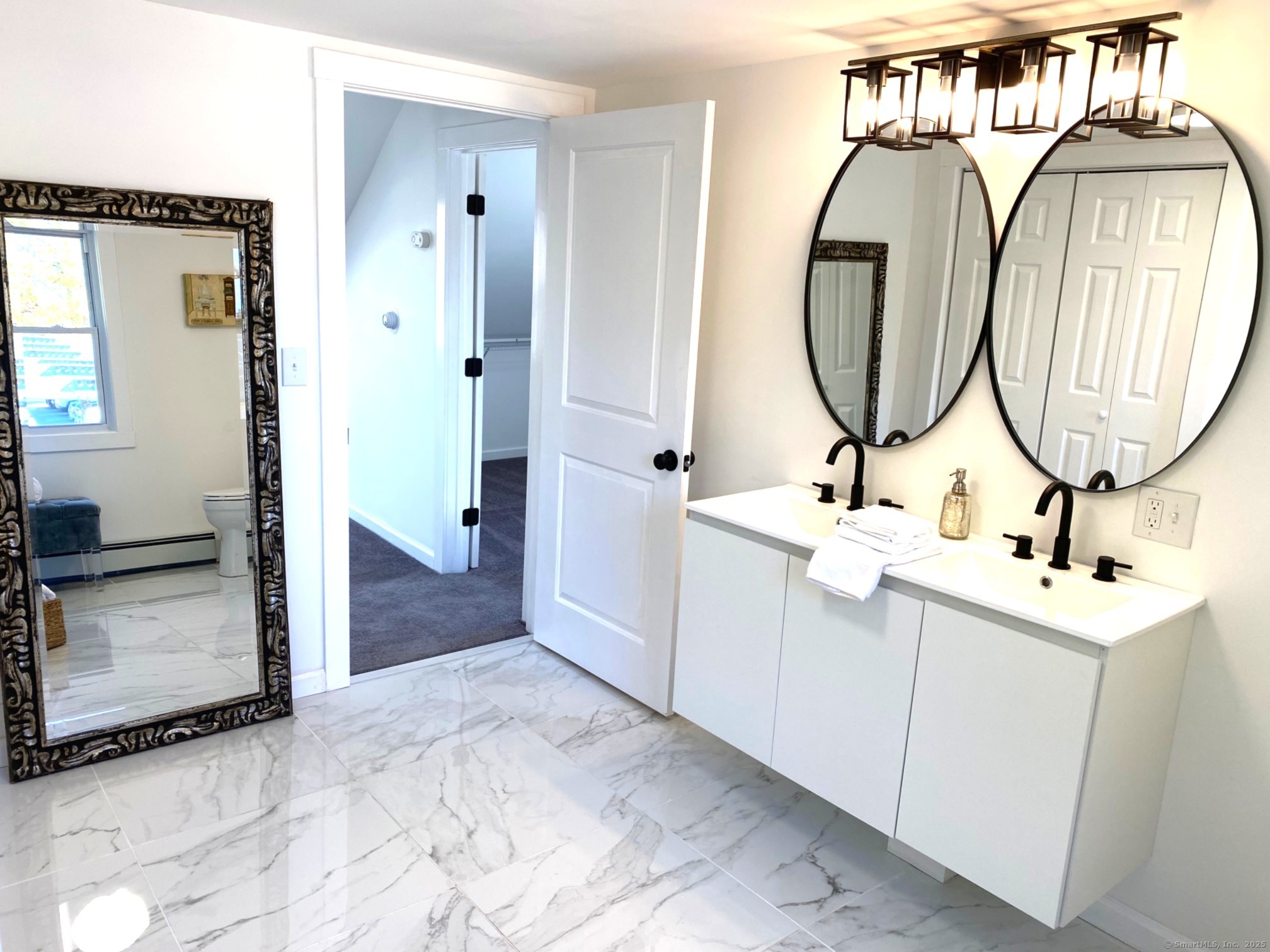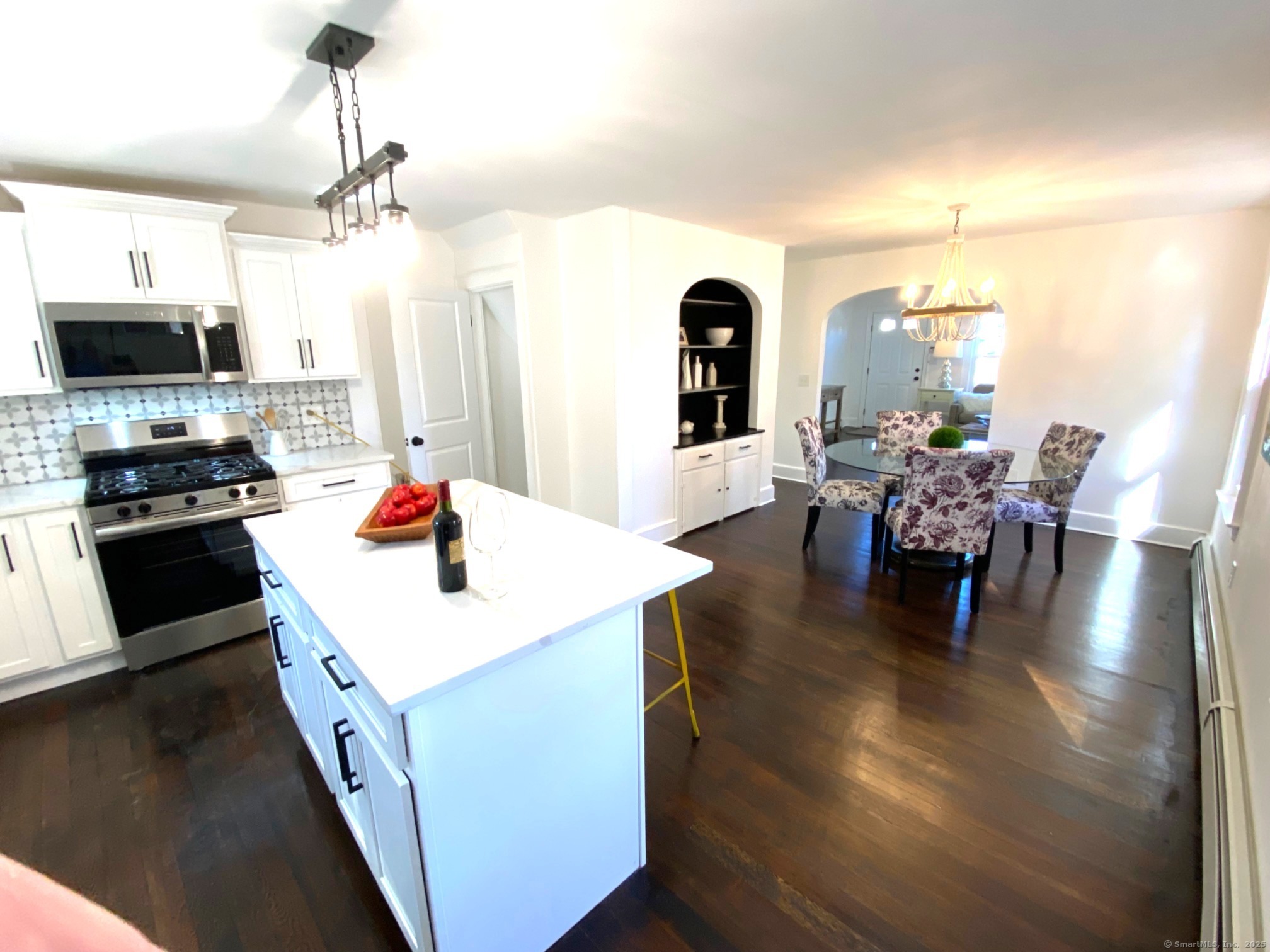 Need privacy?? This entire 2nd floor is the Primary Suite! Commute by TRAIN?? Walk just ONE block to train station! Beautifully renovated and updated Cape style home. Main Level contains an open-floor plan, Living Room, Dining Room, and Open Kitchen. The Kitchen is all new: White Cabinets with Crown Molding, Quartz Counters, Custom Tile Backsplash, huge Island with Breakfast Bar, and lots of Modern Farmhouse touches. The Dining Room has a lovely restored built-in China Cabinet. Off the Living Room is a super cute Sunroom! There are two BR's on this main level (one a possible 2nd Primary) and a beautiful Black & White tile Bath. The 2nd Level is the Primary Suite: Large Bedroom, Office area, HUGE new Bathroom with 5' Shower, and double Vanity. There is also a giant Walk-In Closet! Brand-New Carpeting keeps your tootsie's warm! There is an enormous backyard which will be graded and re-seeded. Walk just ONE BLOCK to the beautiful West Haven Train Station, and a quick bike ride to the nicest public beach in CT. Please consult your Agent regarding the lot split and new construction home next door. Owner/Agent.
