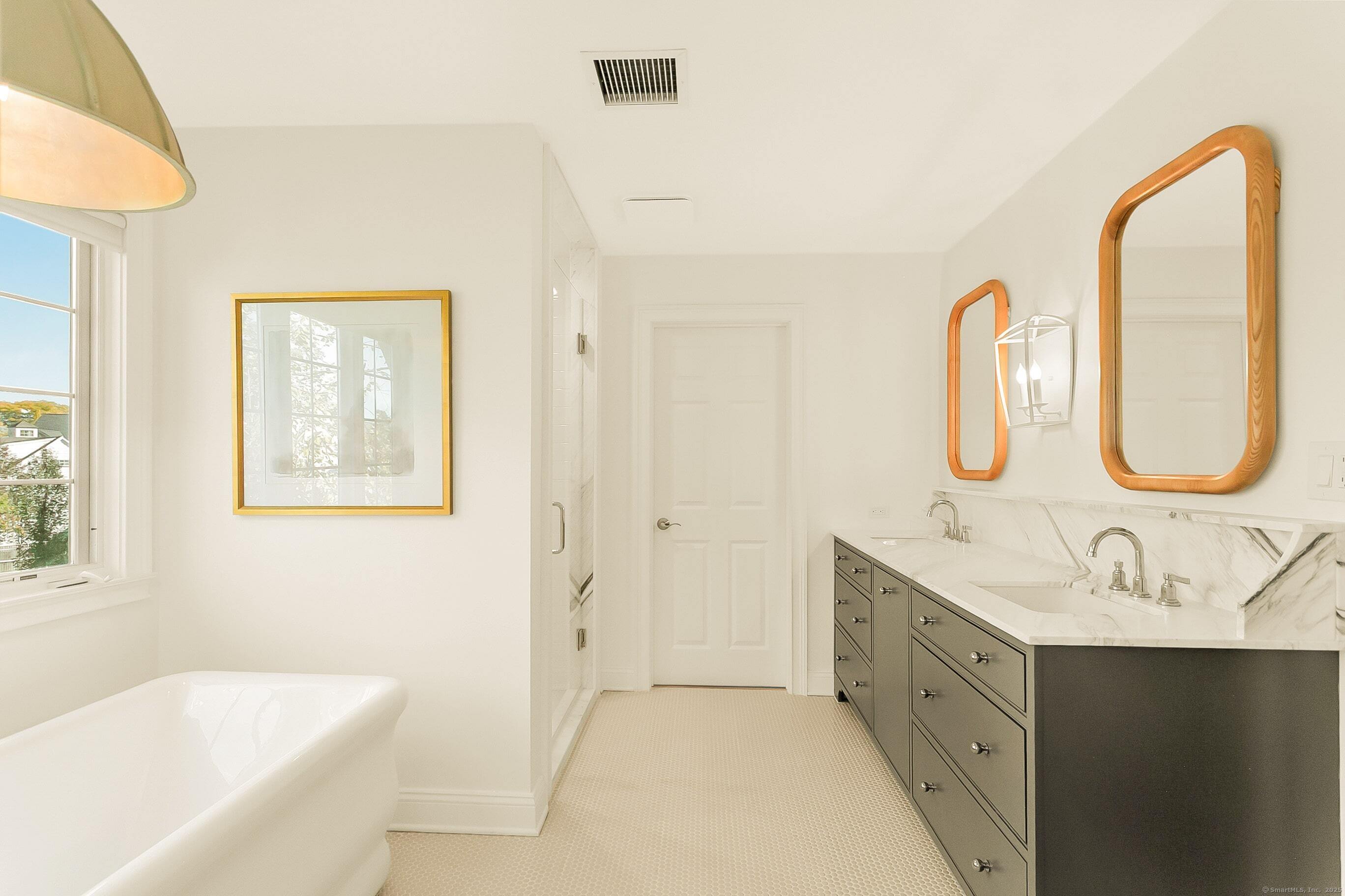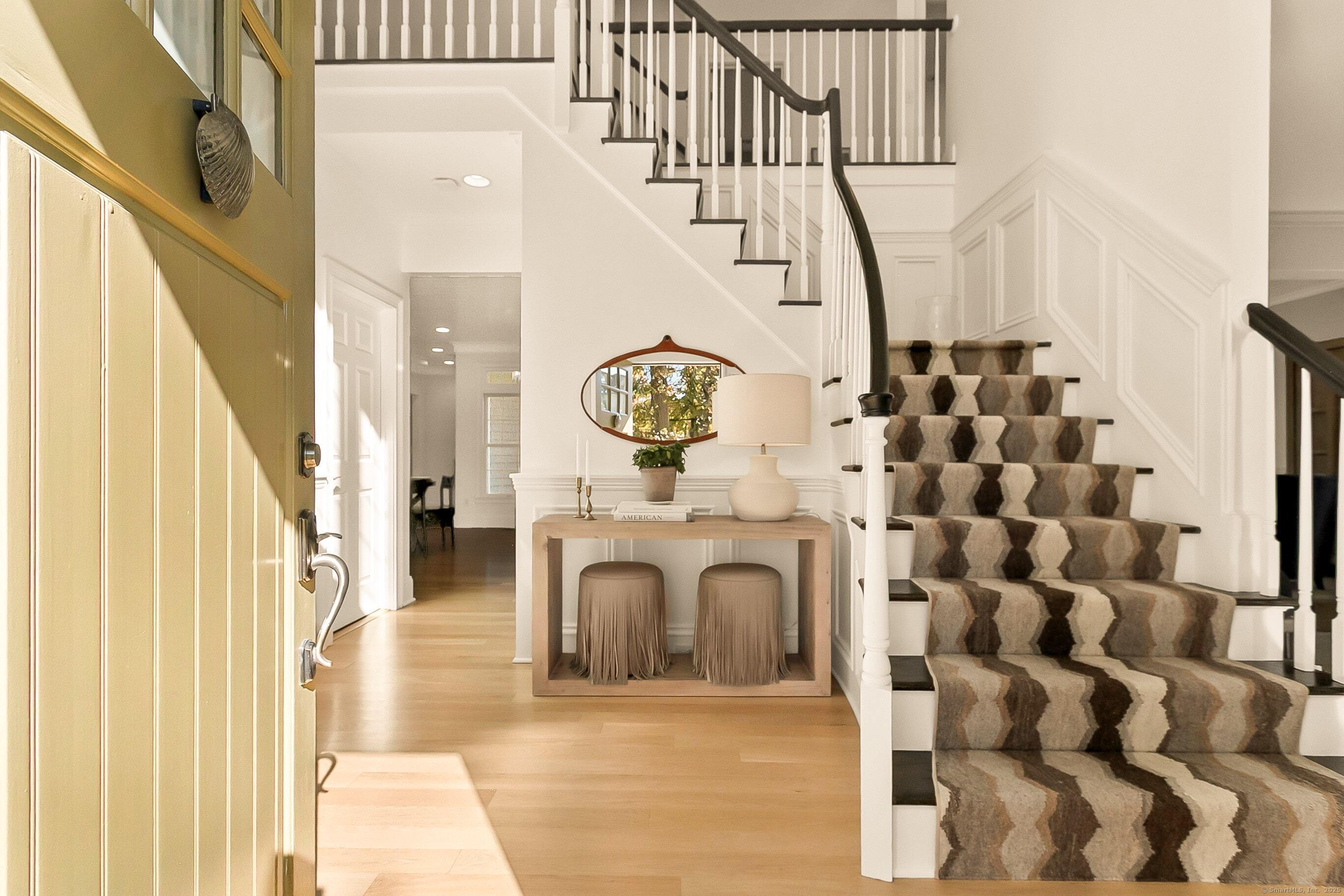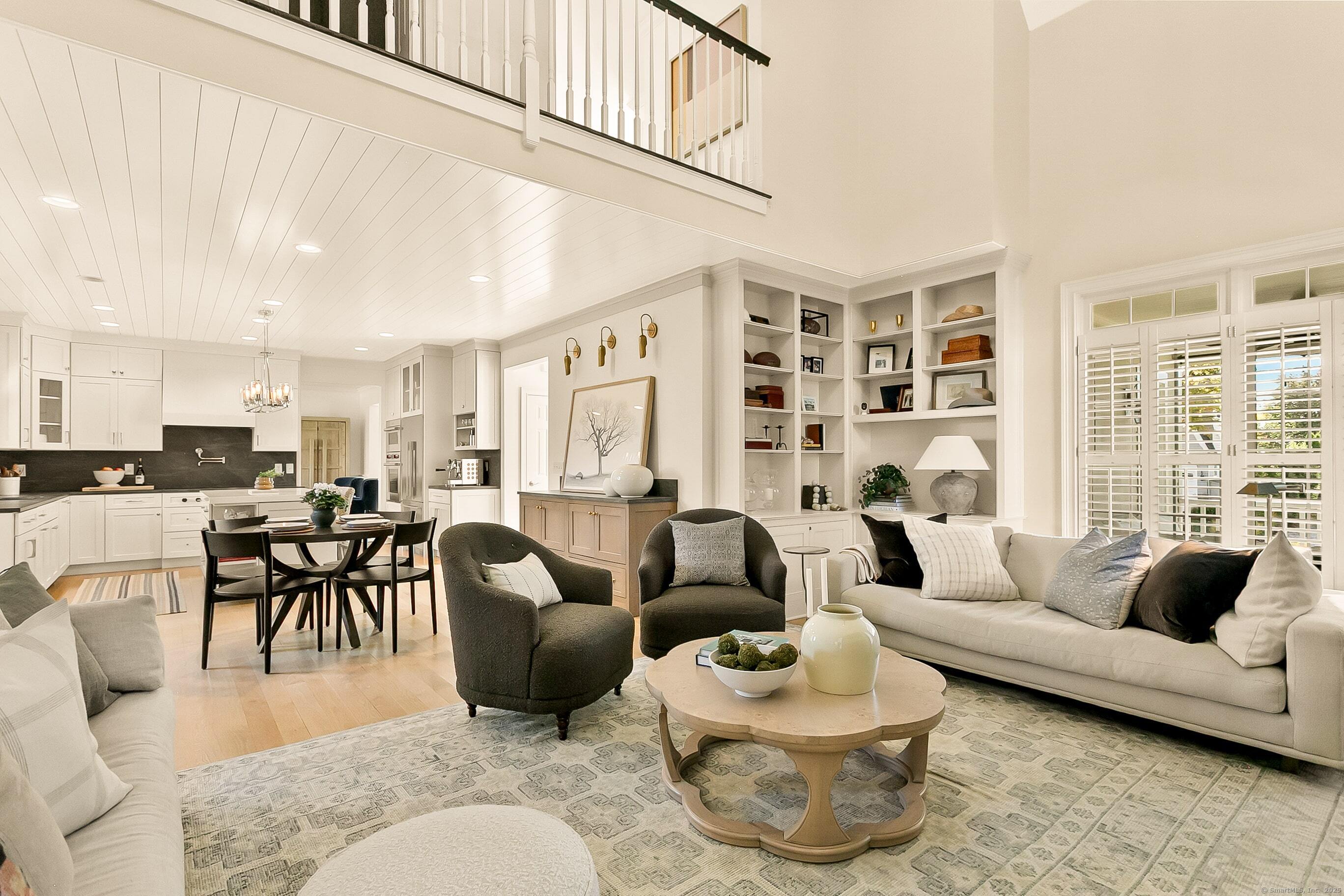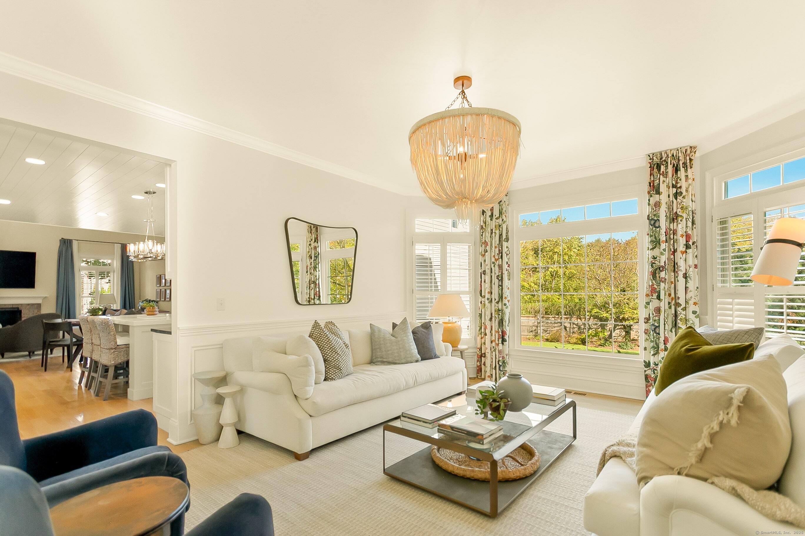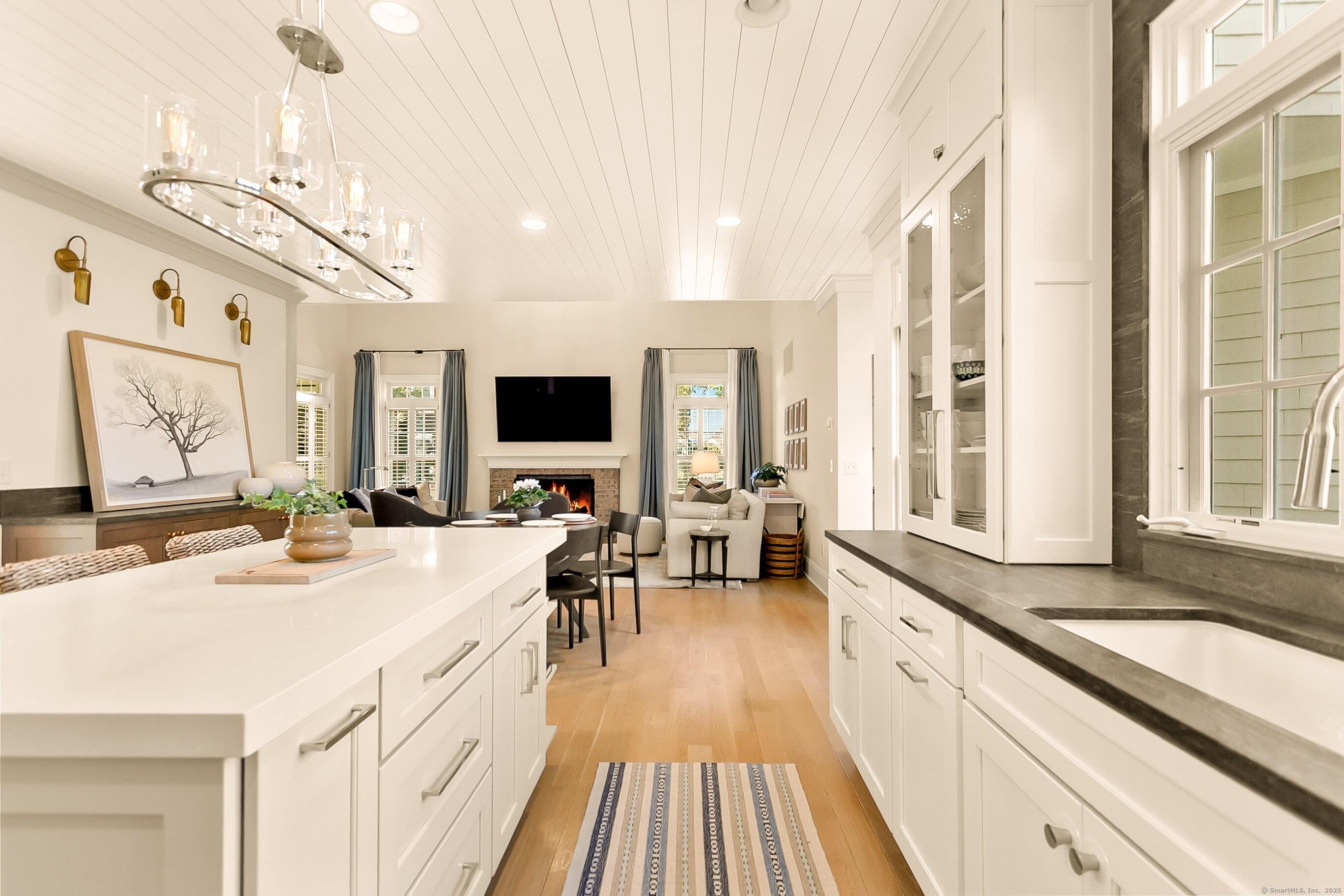 Inspired living meets coastal New England charm at 309 Birch Rd in Fairfield. This thoughtfully designed home in the beach area blends elegant millwork, hardwood floors, transom windows, plantation shutters and custom built-ins with natural light throughout. The two-story foyer welcomes you to superior craftsmanship, leading to a private office and front porch, formal dining with wood-burning fireplace and built-ins, and a serene living room overlooking lush grounds. The heart of the home, the eat-in kitchen, features Wolf appliances, Waterworks fixtures, honed Pietra Cardosa schist stone, white cabinetry with seeded glass, quartz island, and breakfast area opening to a two-story family room with vaulted ceiling, brick fireplace, and beverage nook. Upstairs, four bedrooms include a primary suite with tray ceiling, spa-like bath, and a walk-in closet. Three additional bedrooms on the second floor have unique attributes - custom built-ins, windowseats, stylish wallpaper, and gorgeous views. The finished third floor adds a 5th en-suite bedroom and bonus room. The fully fenced-in yard, bordered by beautiful landscaping offers space to relax, play, or dine al fresco. A two-car attached garage completes this home with 20 ft ceilings, plenty of storage, and the potential for a lift adding a desirable element for any car enthusiast. Perfectly positioned for the coastal lifestyle of your dreams, this home is just a short stroll to the beach, schools, train station & downtown Fairfield