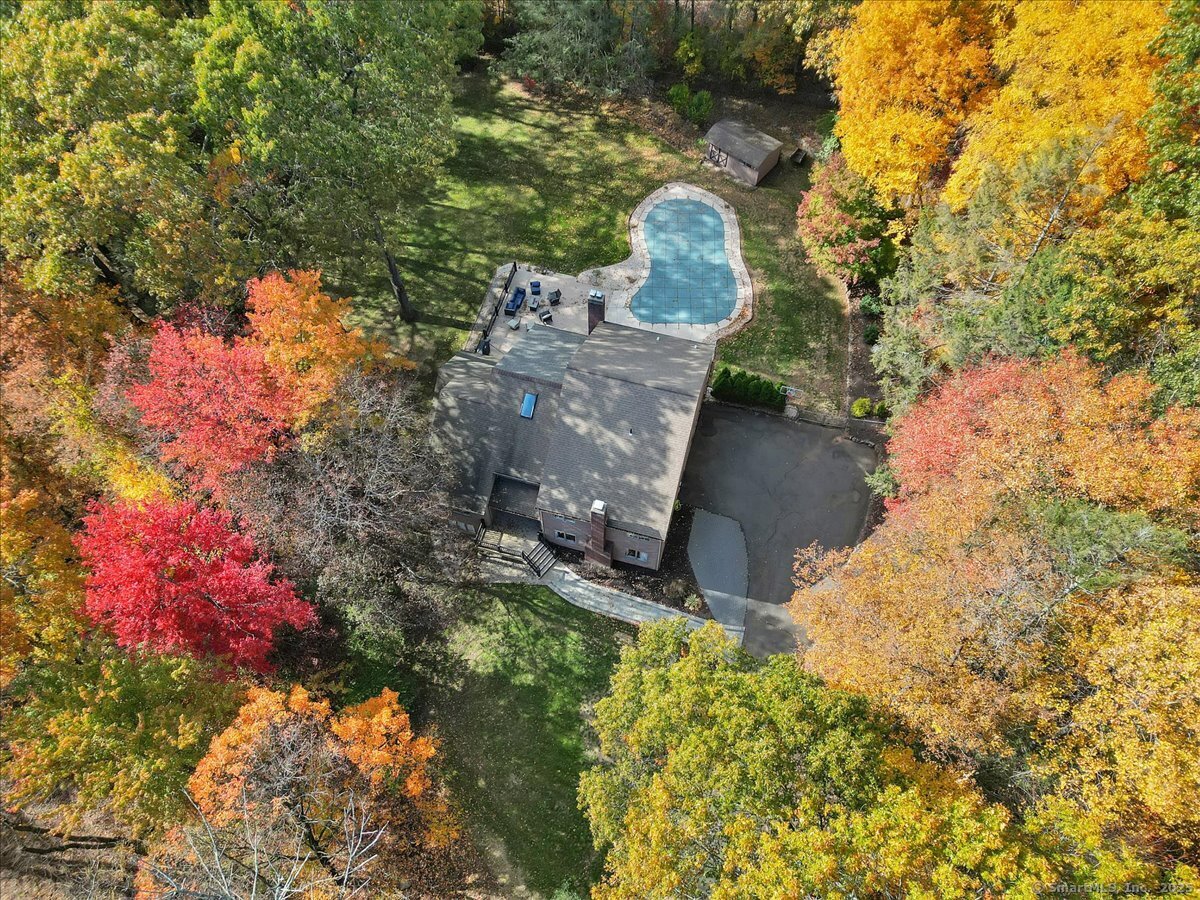 Experience ultimate privacy and tranquility in this beautifully landscaped home, set on a secluded rear lot with a wooded backdrop. The backyard is a true retreat, featuring a beautiful in ground pool, expansive maintenance free decking, and a fully fenced yard-perfect for relaxing or entertaining. Inside, a cathedral foyer leads to a spacious layout with a formal dining room and a renovated eat-in kitchen with quartz counters, tile backsplash, and stainless steel appliances. A sliding door connects seamlessly to the deck and pool. The sunlit two-story living room boasts skylights and a cozy pellet stove, while a nearby powder room and family room with a masonry fireplace offer extra space for gatherings. Upstairs includes three bedrooms, a luxurious primary suite with walk-in closet and updated en-suite bath, a second full bath, and a flexible office with skylight and built-ins. The finished walkout lower level adds a bar/kitchenette and third full bath-ideal for guests or in-law use. Additional perks: city water/sewer, natural gas, central air, storage shed, and great curb appeal. This home blends comfort, style, and serenity.