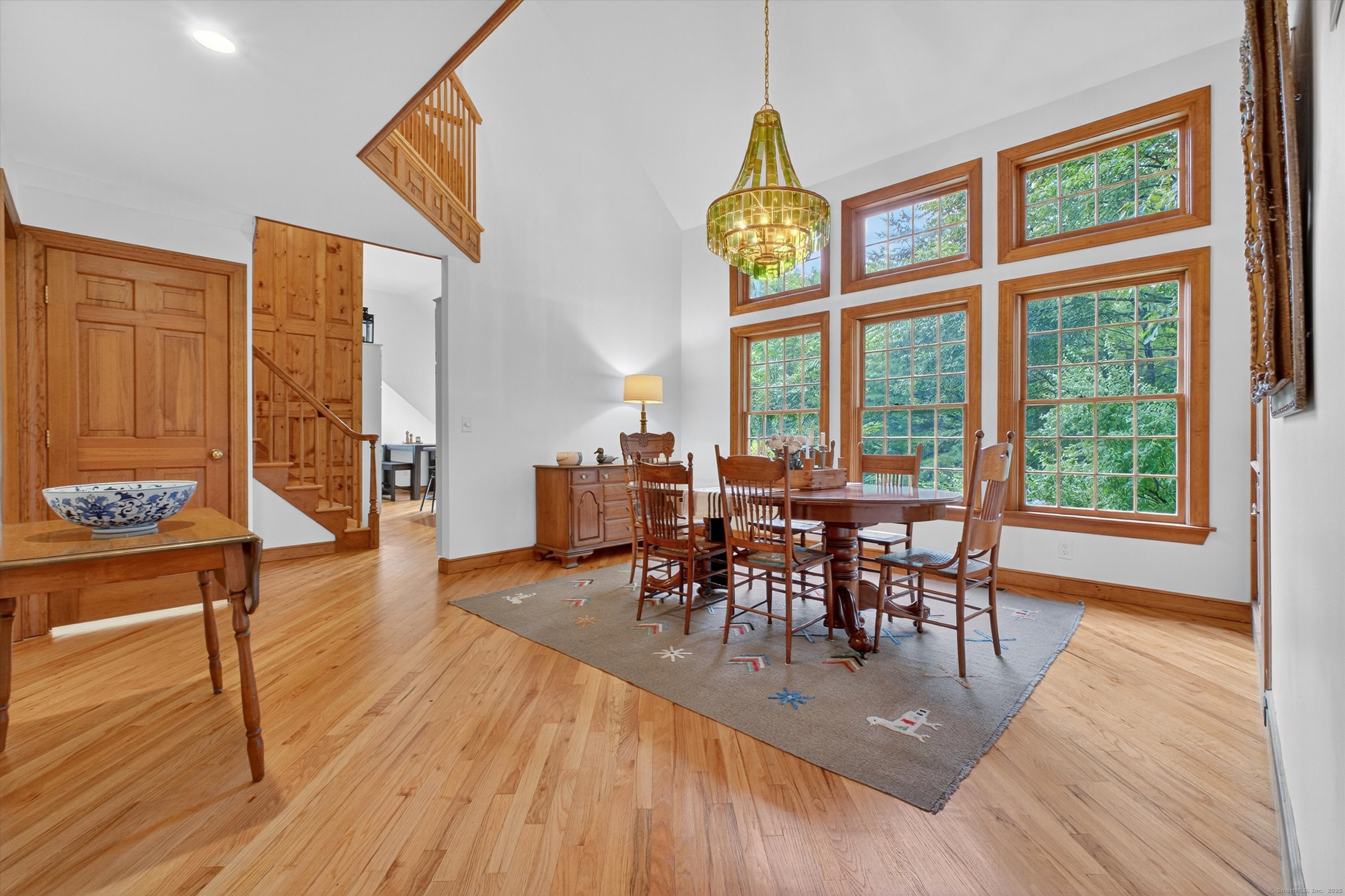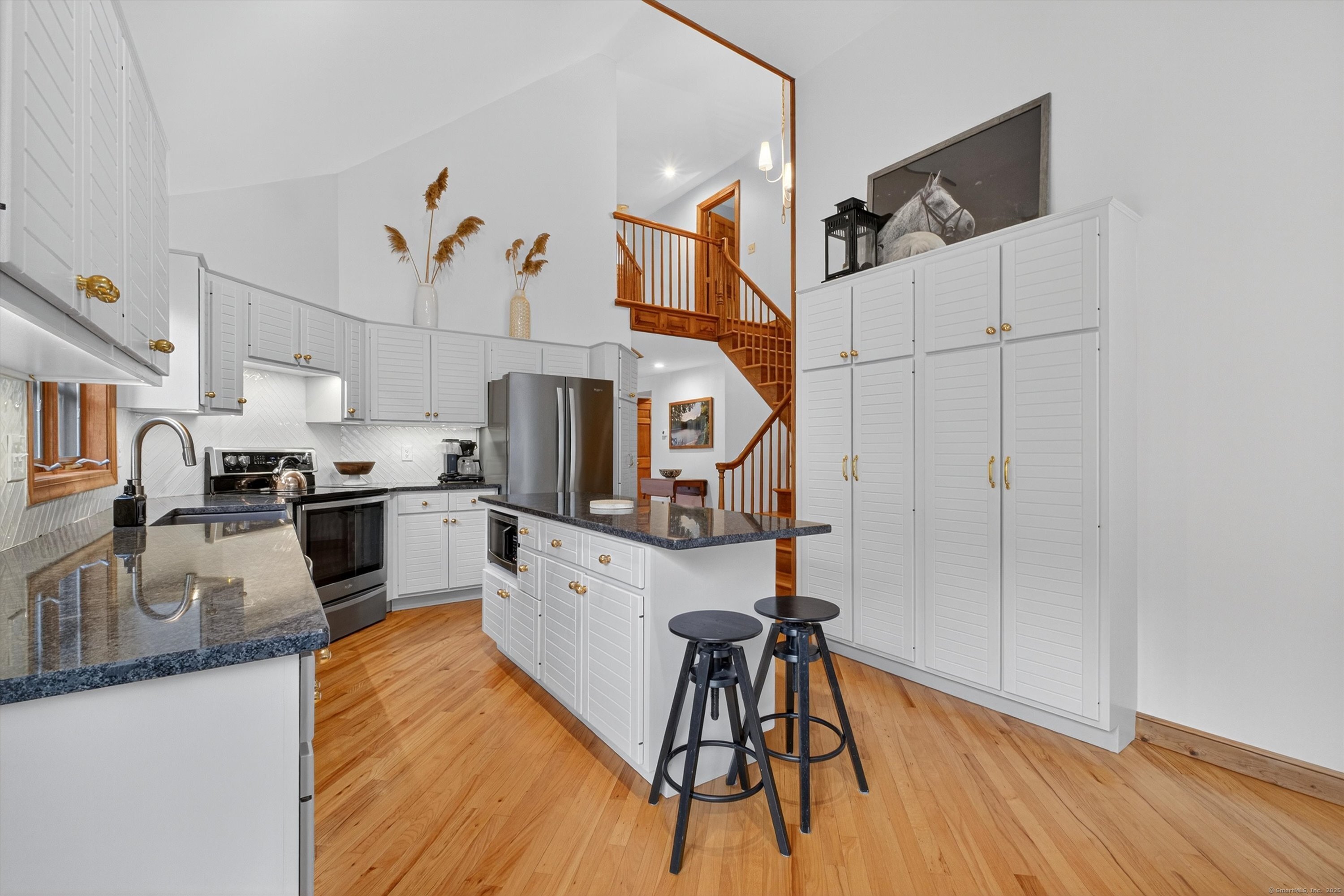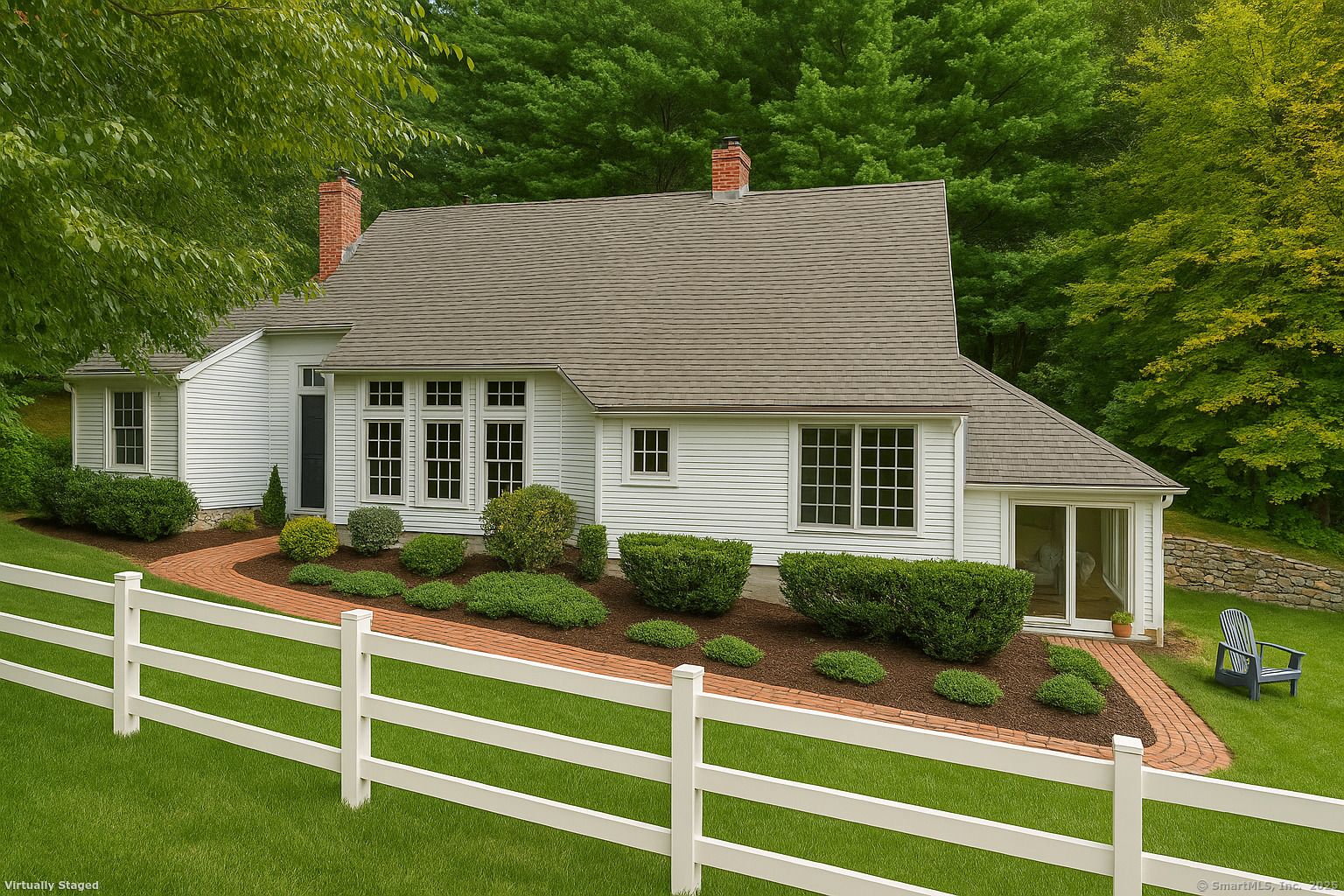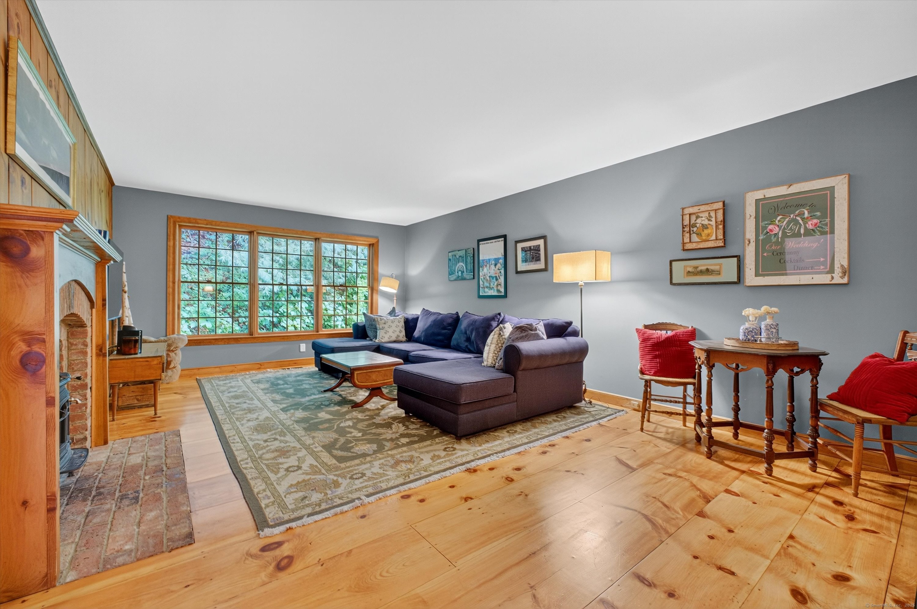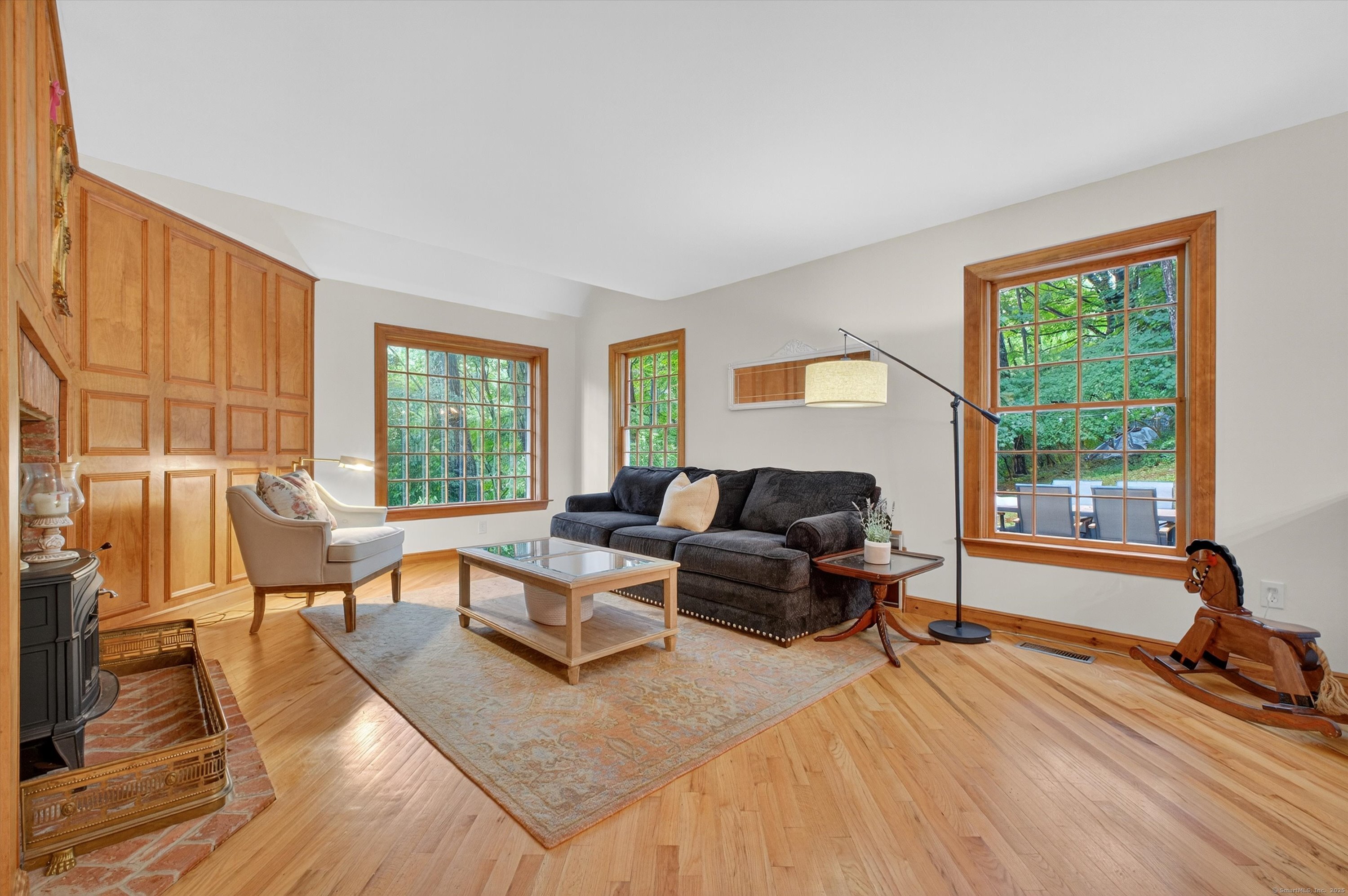 Welcome to 35 Poverty Hollow Road, an idyllic retreat nestled in southwest Newtown with sweeping views of the scenic Red Gate Farm. This beautiful hilltop home offers privacy, timeless charm, and modern updates, making it truly move-in ready. Inside, the open floor plan highlights custom woodwork and built-ins throughout, with a spacious family room featuring wide-plank hardwood floors and two fireplaces with Vermont Castings wood stoves, the perfect backdrop for cozy New England evenings. Walls of glass in the sunroom invite natural light and year-round views of the serene property, while the formal dining room and updated eat-in kitchen with new counters, backsplash, appliances, and under-mount lighting create ideal spaces for both casual living and entertaining. Upstairs, the primary suite is a peaceful retreat with a new skylight in the bath, while additional bedrooms provide flexibility for guests, family, or a home office. Vaulted ceilings add architectural character and volume, enhancing the sense of openness in every room. This home has been extensively improved, offering buyers peace of mind with modern updates. Recent enhancements include a new roof, new septic system, renovated kitchen, refinished hardwood floors, new carpets in the bedrooms, freshly painted interiors including ceilings, and updated smoke and carbon monoxide detectors, outlets, and light switches.