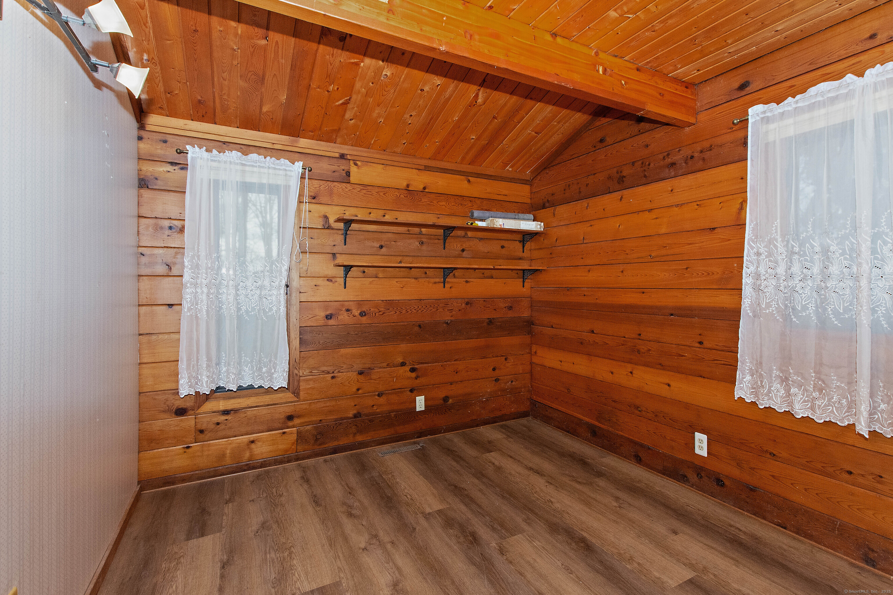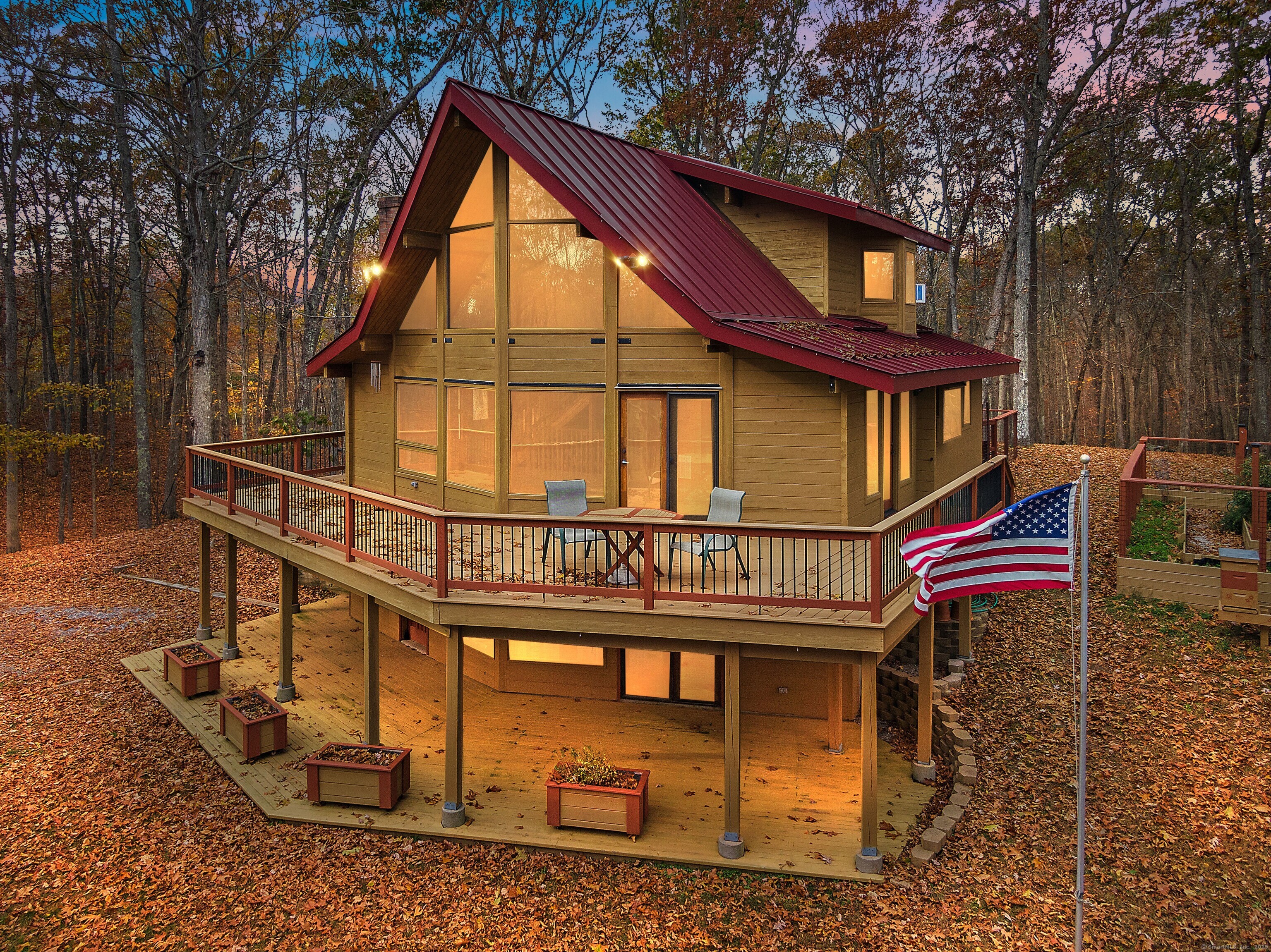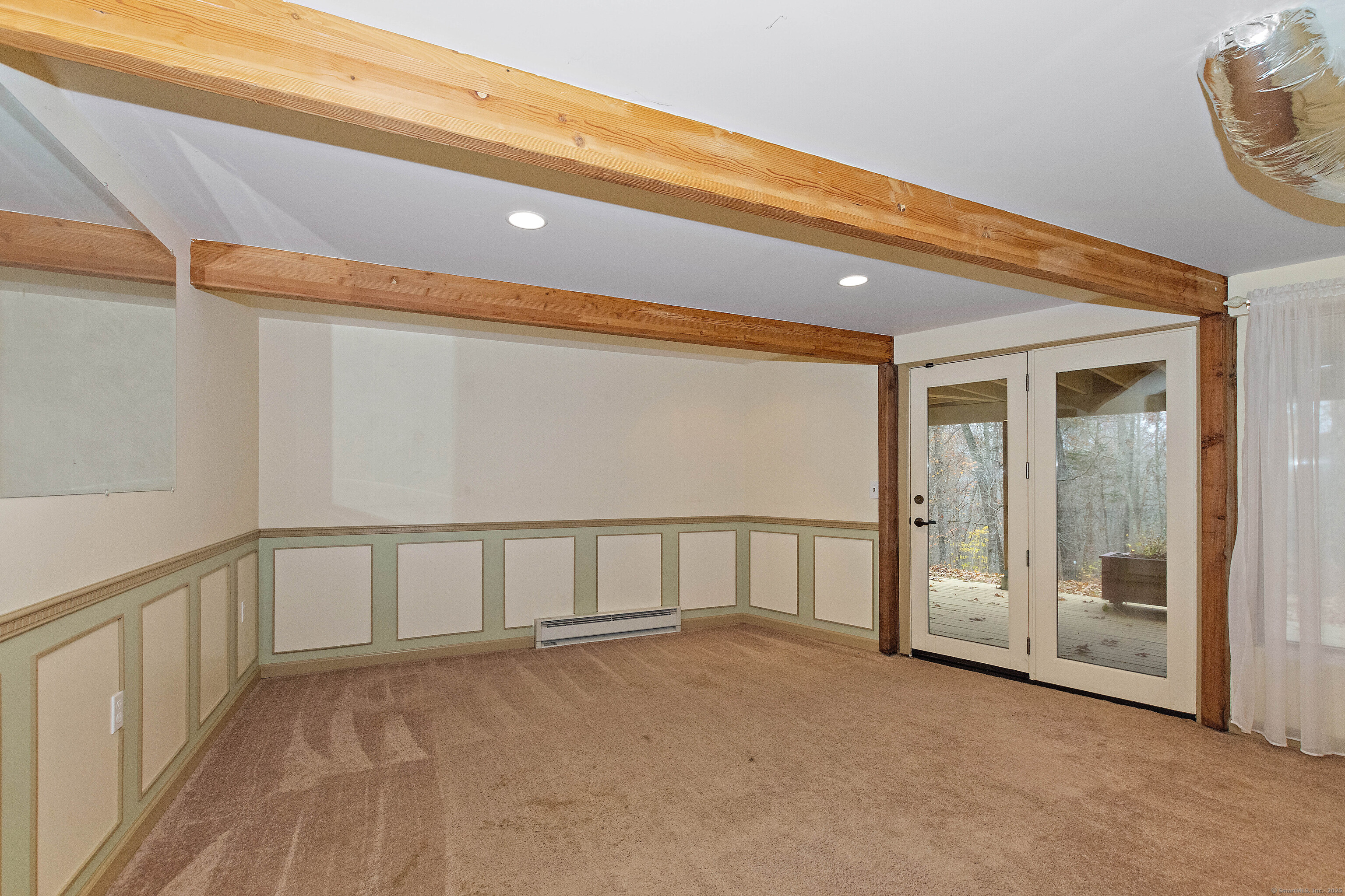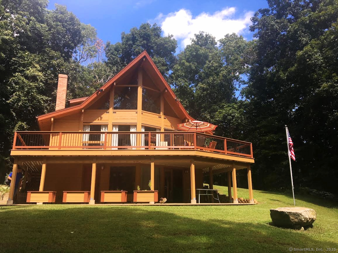 Tranquility awaits with this contemporary post & beam nestled on 4.25 private acres. Amazing outdoor views with soaring cathedral ceilings and walls of glass that connect you with nature while sitting in front of the fireplace. The main living space is open and has 2 bedrooms and full bath, the primary suite is on the upper level providing gorgeous views. The versatile lower-level room provides options for a bedroom, office, or playroom. Exterior highlights include a durable metal roof, expansive wraparound deck, and a fenced area perfect for pets or play. The property is designed for both comfort and lifestyle-featuring raised garden beds, a chicken coop (with chickens, if desired), and a huge metal garage/workshop with endless potential. Set on 4.25 private acres, this home offers the rare combination of privacy, functionality, and natural beauty-an ideal retreat with space to live, work, and play. Bordering protected land, great for walking trails, this property is more than a home-it's a retreat! Whether you're sipping coffee on the deck at sunrise, tending to your garden, or working on projects in the oversized garage, every detail is designed to enhance your connection to nature and provide space for the life you want to create.