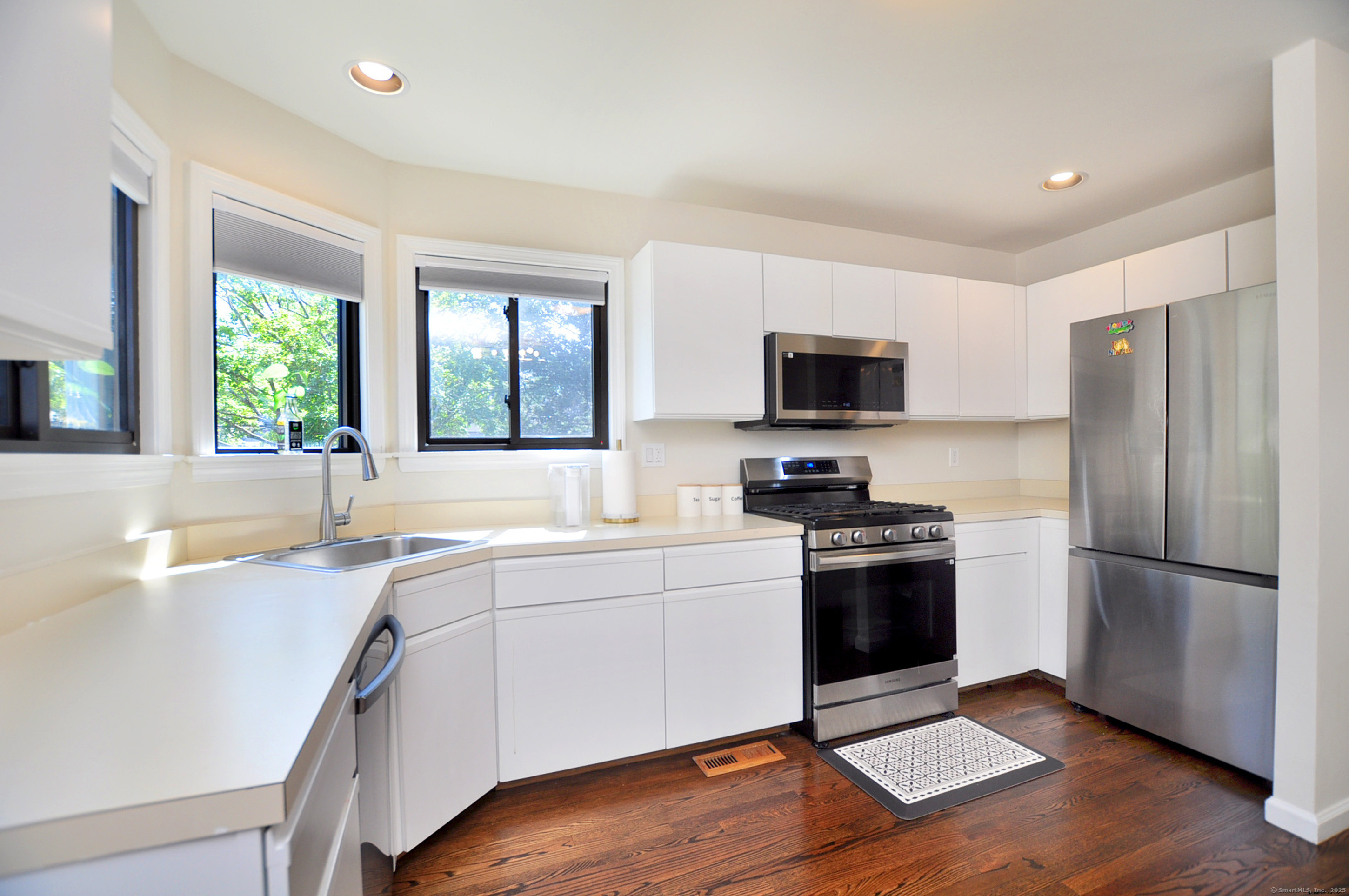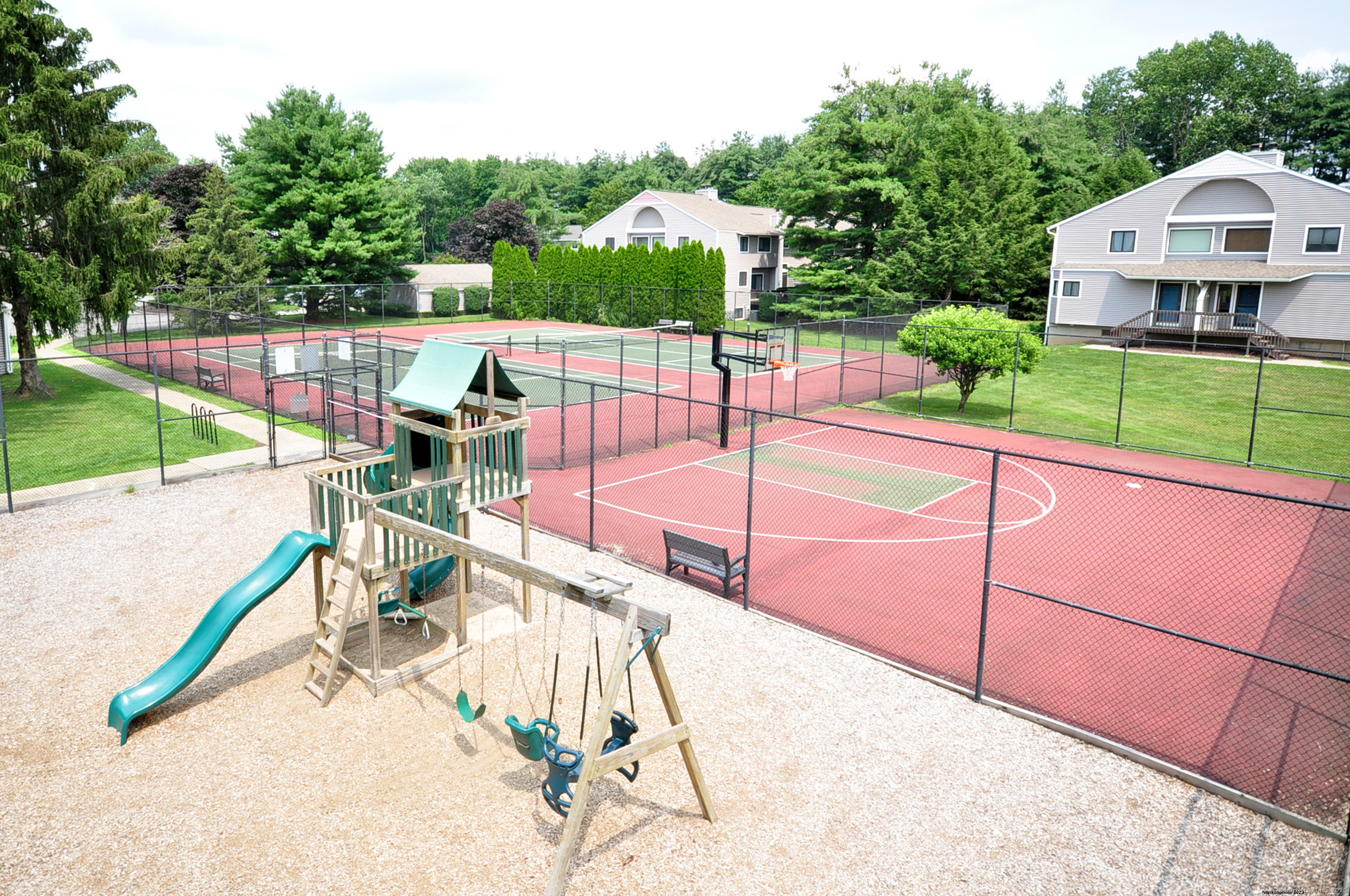 Move-in ready, rarely available end-unit townhouse in the highly desirable Strawbridge Condominiums. This beautifully updated home combines comfort, functionality, and modern style. The open-concept main level features a bright living and dining area that flows seamlessly to a private 13x7 deck, perfect for morning coffee or outdoor entertaining. Upstairs you'll find two spacious bedrooms with generous closet space and a fully renovated bathroom featuring a new vanity, faucet, LED mirror, lighting, flooring, and toilet. The kitchen has been upgraded with sleek stainless steel Samsung appliances including a refrigerator, oven, dishwasher, and gas range, complemented by freshly painted interiors and new flooring in the dining area and on the stairs. The lower level offers approximately 400sqft. of beautifully finished living space with 8-foot ceilings, recessed lighting, and additional storage ideal for a family room, office, or gym. Enjoy the best of community living with amenities such as an inground pool, tennis and basketball courts, and a playground. Tucked in a quiet, private complex yet close to shopping, restaurants, highways, this home offers the perfect blend of convenience and tranquility.