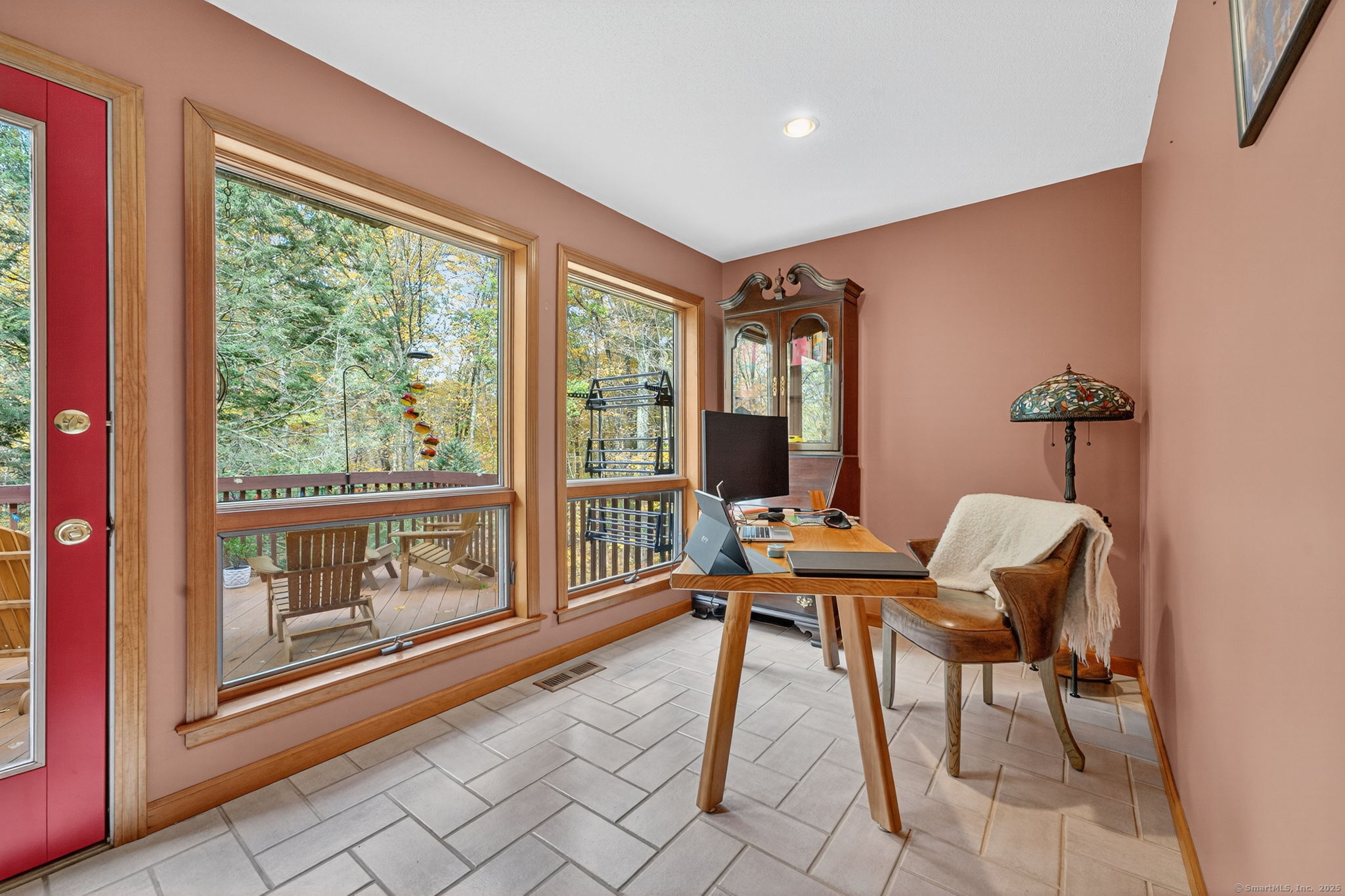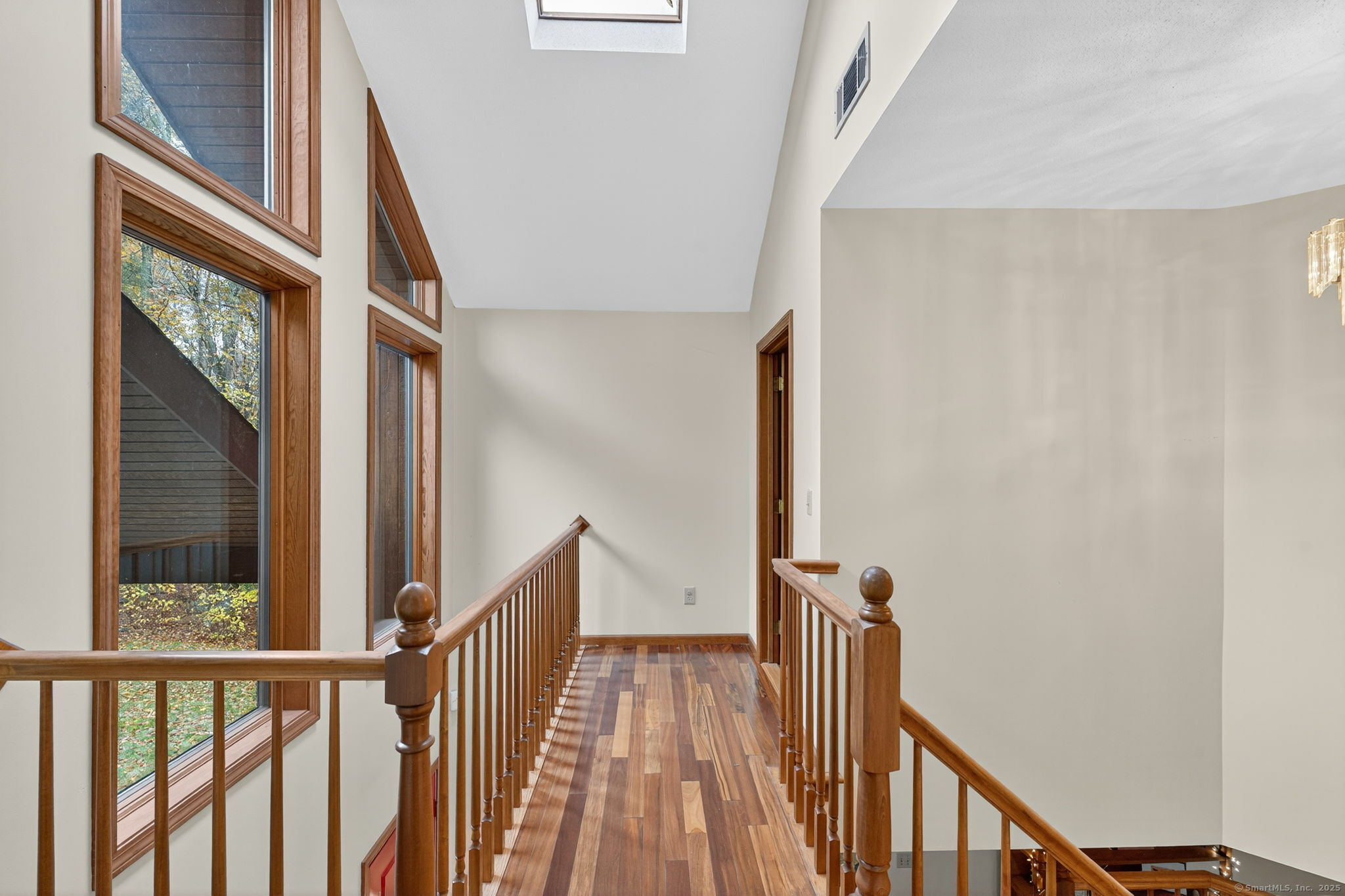 Set on a beautiful open, rolling lot, this home offers both privacy and comfort. The main level features a welcoming foyer with an open staircase and balcony overlooking the entryway. The open-concept kitchen, dining, and living areas create a warm, inviting space ideal for everyday living and entertaining. Two comfortable bedrooms, a full bath, and a convenient half bath with laundry complete the main floor. Step outside to enjoy the large back deck-perfect for relaxing or entertaining-along with a fire pit area for cozy evenings outdoors. The walk-out basement includes a partially finished area offering extra living space, while the unfinished section provides plenty of room for storage or a workshop. Upstairs, the ultimate primary suite offers a true retreat, featuring a spacious bathroom with jetted tub, separate shower, and walk-in closet. The suite includes a sitting area with balcony overlooking the living room, a second outdoor balcony with views of the backyard, and ample closet space. A large bonus room with brand-new hardwood floors offers endless potential as a recreation or family room. Recent updates include a new water filtration system and new boiler, offering comfort and peace of mind.