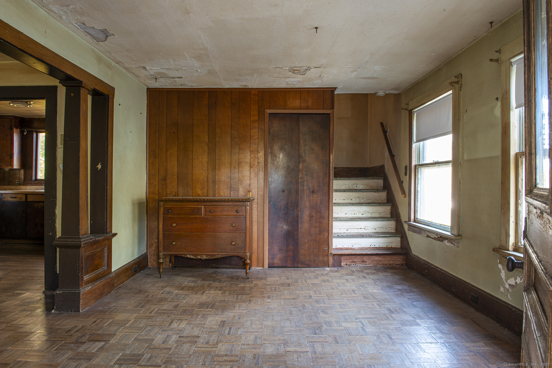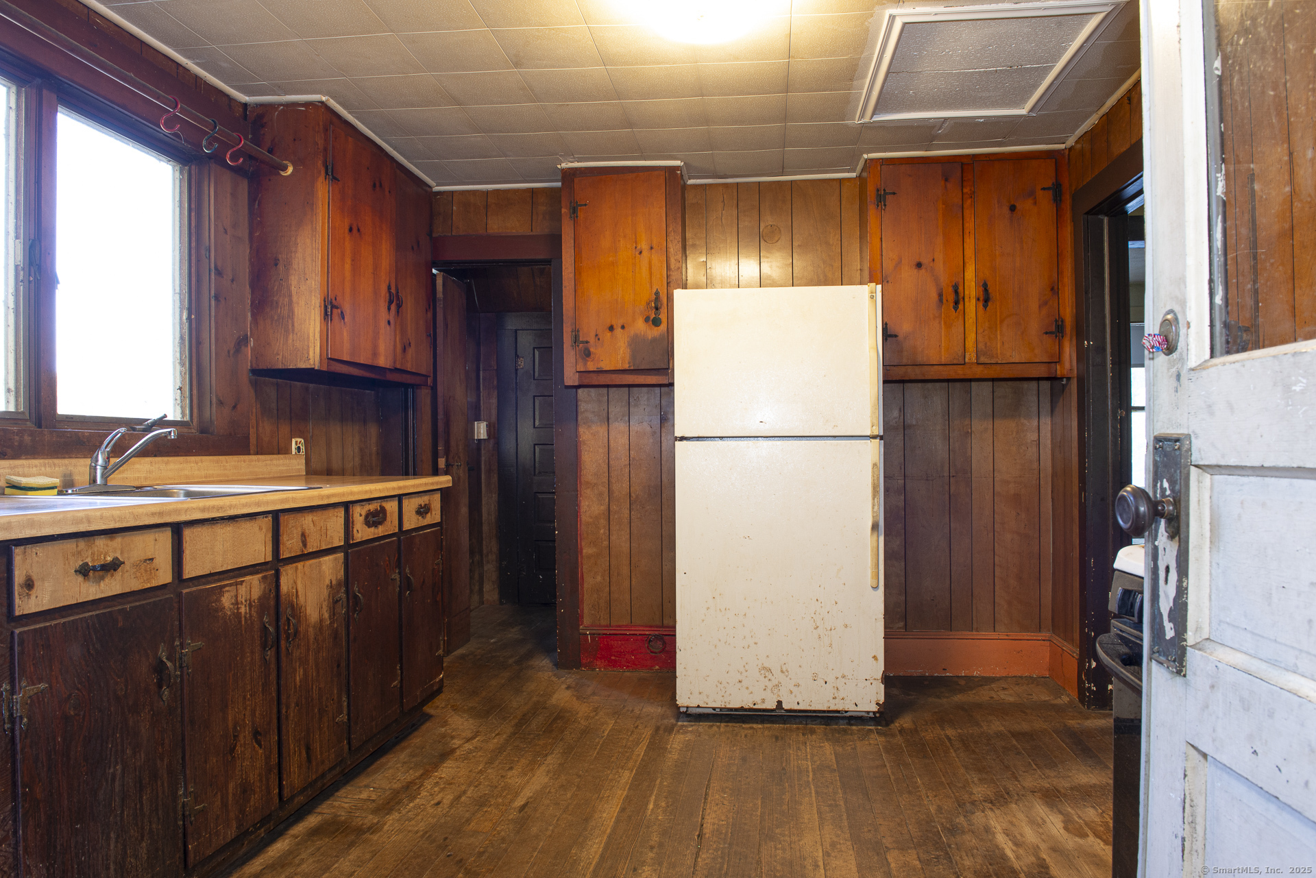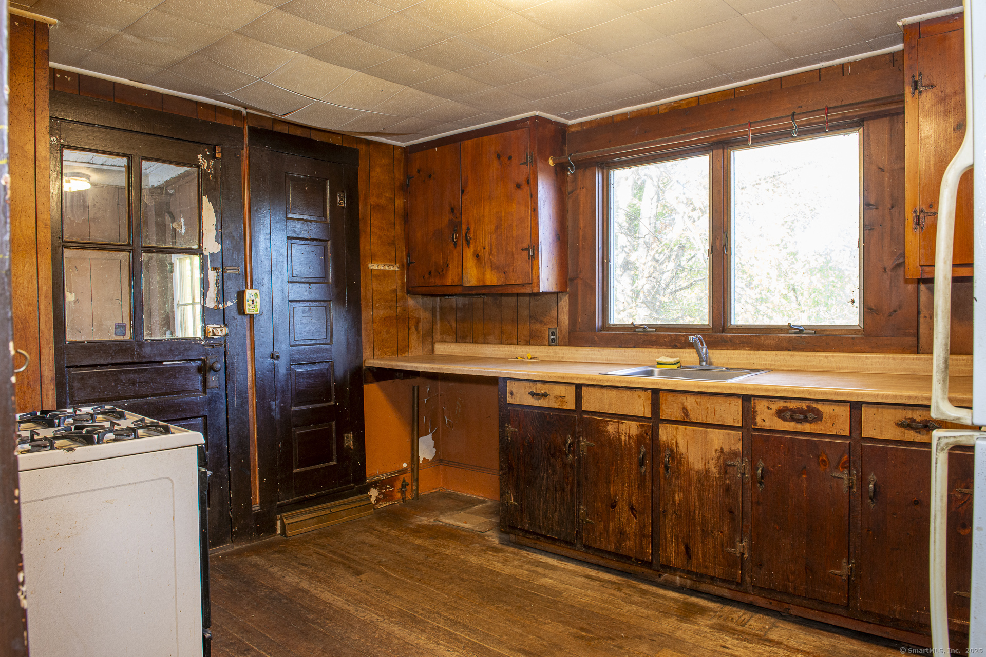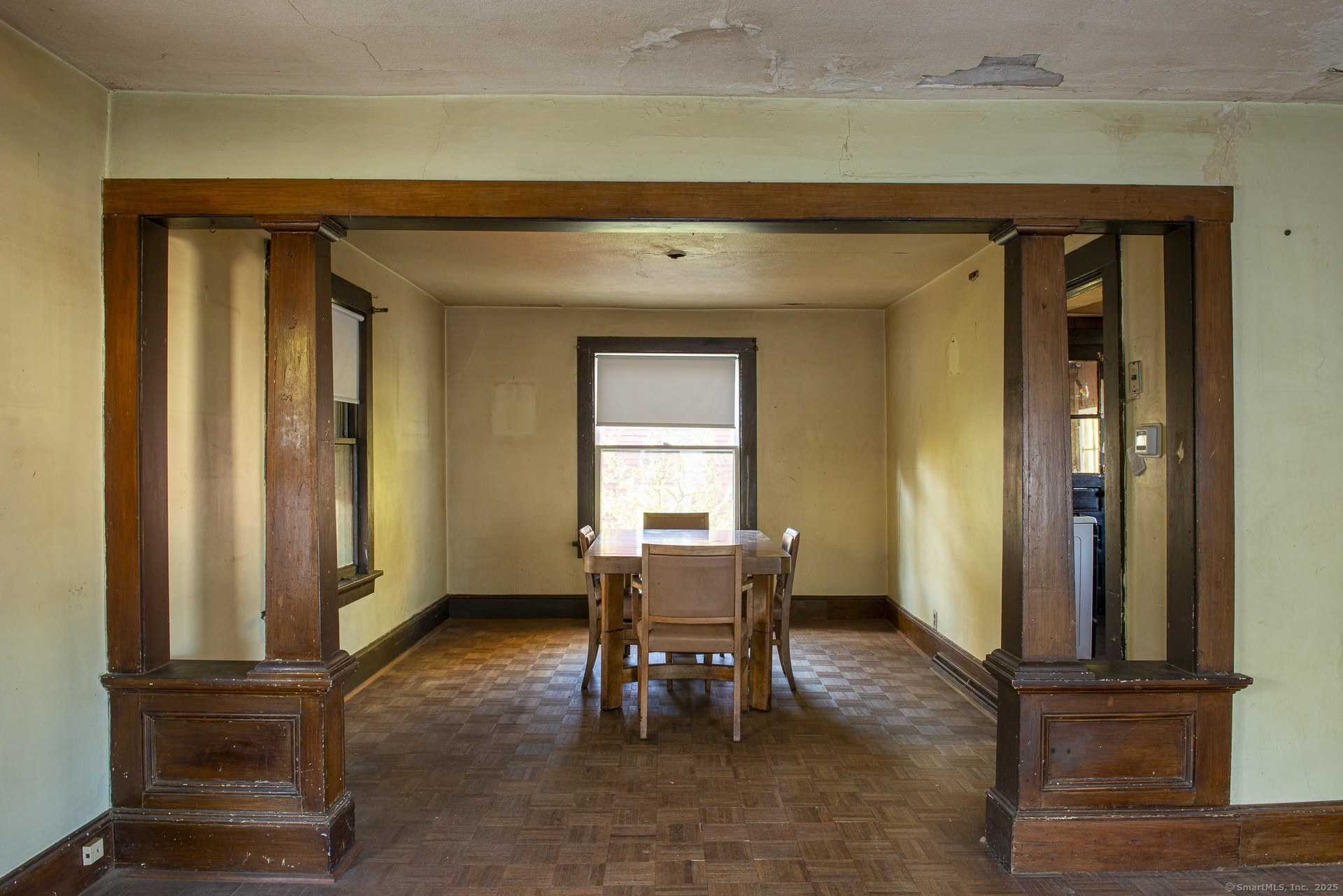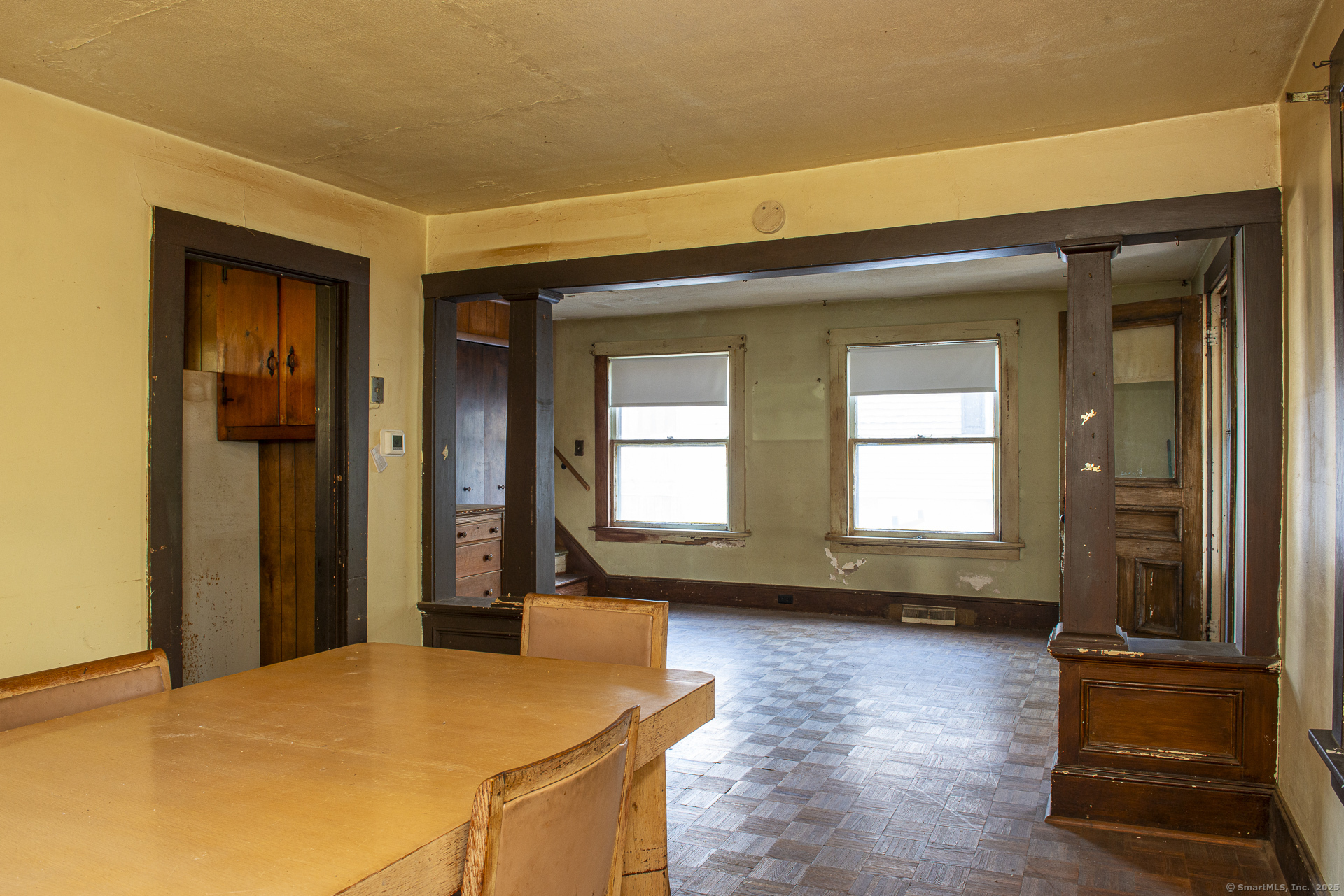 HIGHEST AND BEST OFFERS DUE BY SUNDAY, NOVEMBER 2ND BY 7PM. Charming colonial located in the heart of the Forestville section of Bristol. This house has lots of features including a screened-in porch, 2 driveways, fenced yard, detached garage, gas heating and more. Large windows let in lots of natural lighting. The living room/dining room area has parquet flooring. There are 3 spacious bedrooms, 1.5 bathrooms, and the unfinished basement has tall ceilings and a walkout door to the back yard. Conveniently located near highways, amenities, and restaurants, but tucked away in a neighborhood setting. Newer gas furnace and gas water heater. Good bones, needs updating. Agent is related to owner. Sold as is.