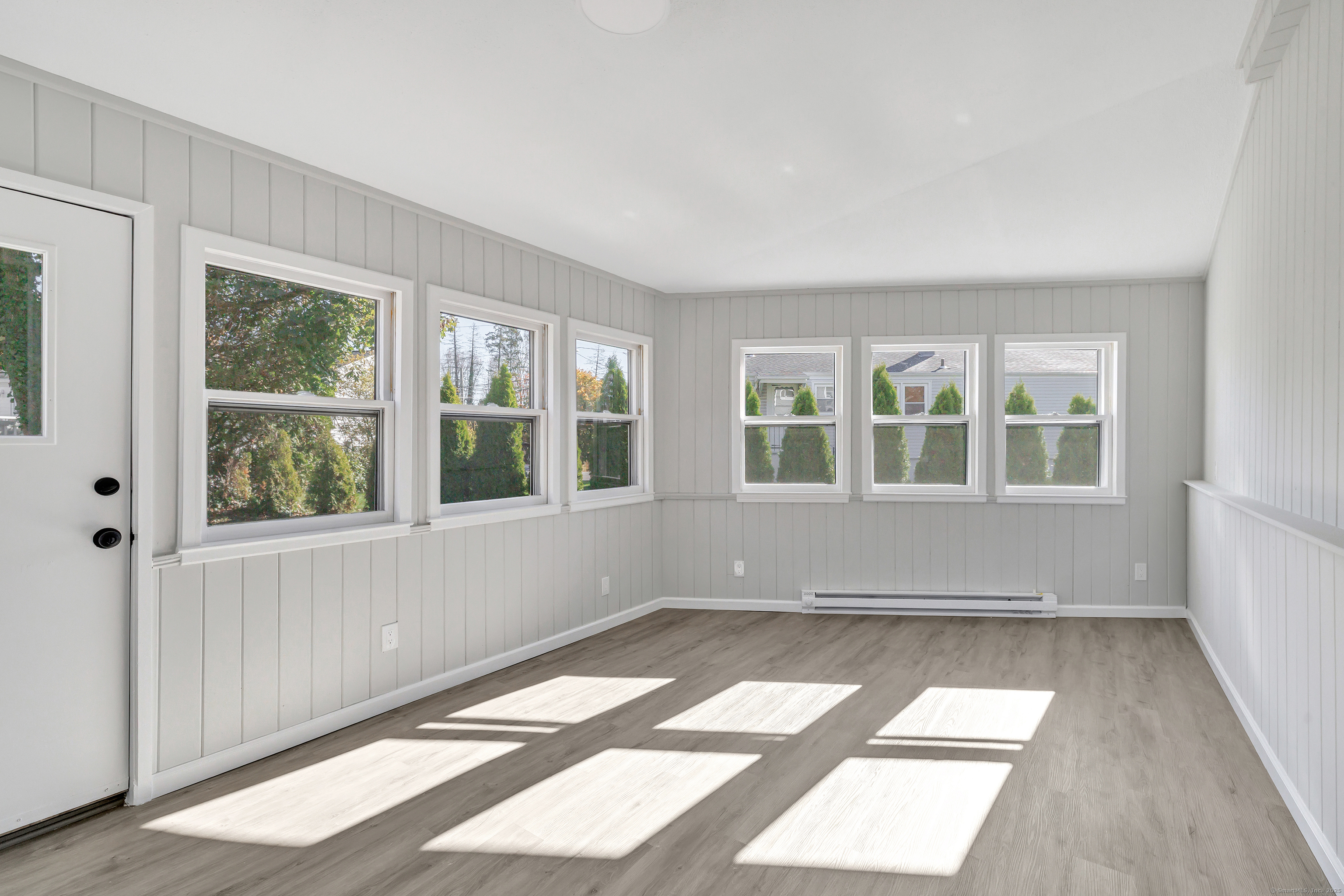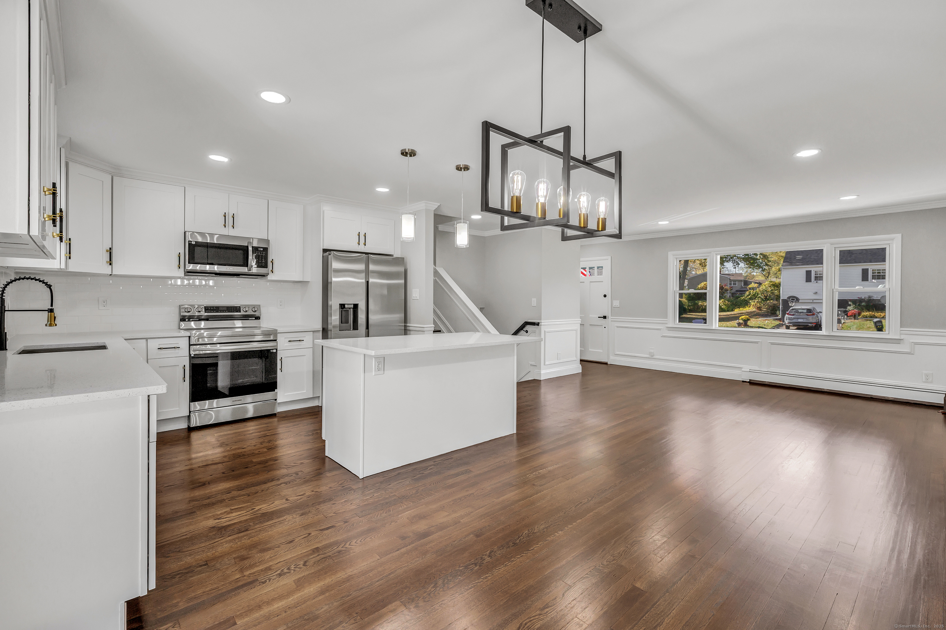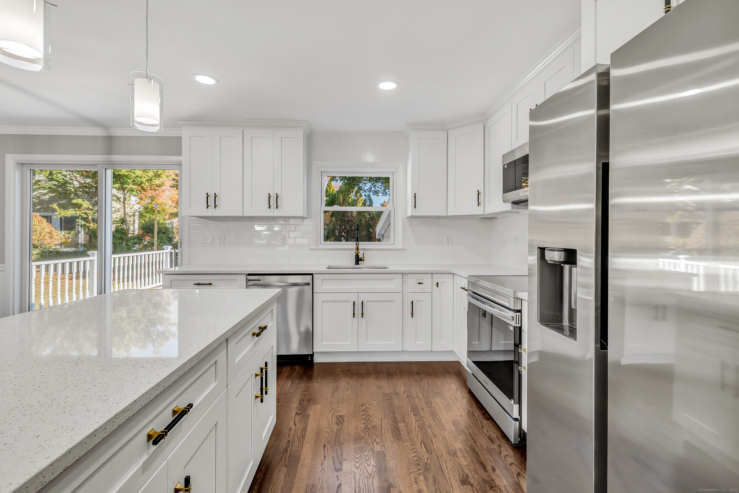 Welcome to this completely renovated home, where modern design meets comfortable living. This house has been thoughtfully and completely renovated from top to bottom, featuring a new roof and windows for energy efficiency and curb appeal. Step inside and be greeted by an open-concept living, dining, and kitchen area, where sunlight streams through the windows, highlighting the beautiful hardwood floors. The brand new kitchen boasts new cabinets, quartz countertops, appliances and finishes, perfect for both daily meals and special occasions. Retreat to a private, enclosed and heated sun porch, your year-round haven for relaxation. From the kitchen, a sliding glass door leads to a spacious deck, ideal for outdoor dining and entertaining. The partially finished basement offers versatility with a laundry room and a finished area for a home office, gym, or playroom. All major systems are new, including a Navien heating and hot water system, roof, windows, bathrooms, light fixtures, and vinyl siding, ensuring effortless, move-in-ready living. Located in a sought-after area, a short drive to Yale University, YNHH, Quinnipiac University, downtown New Haven, I-91, Route 15, this is the move-in-ready home you've been waiting for.