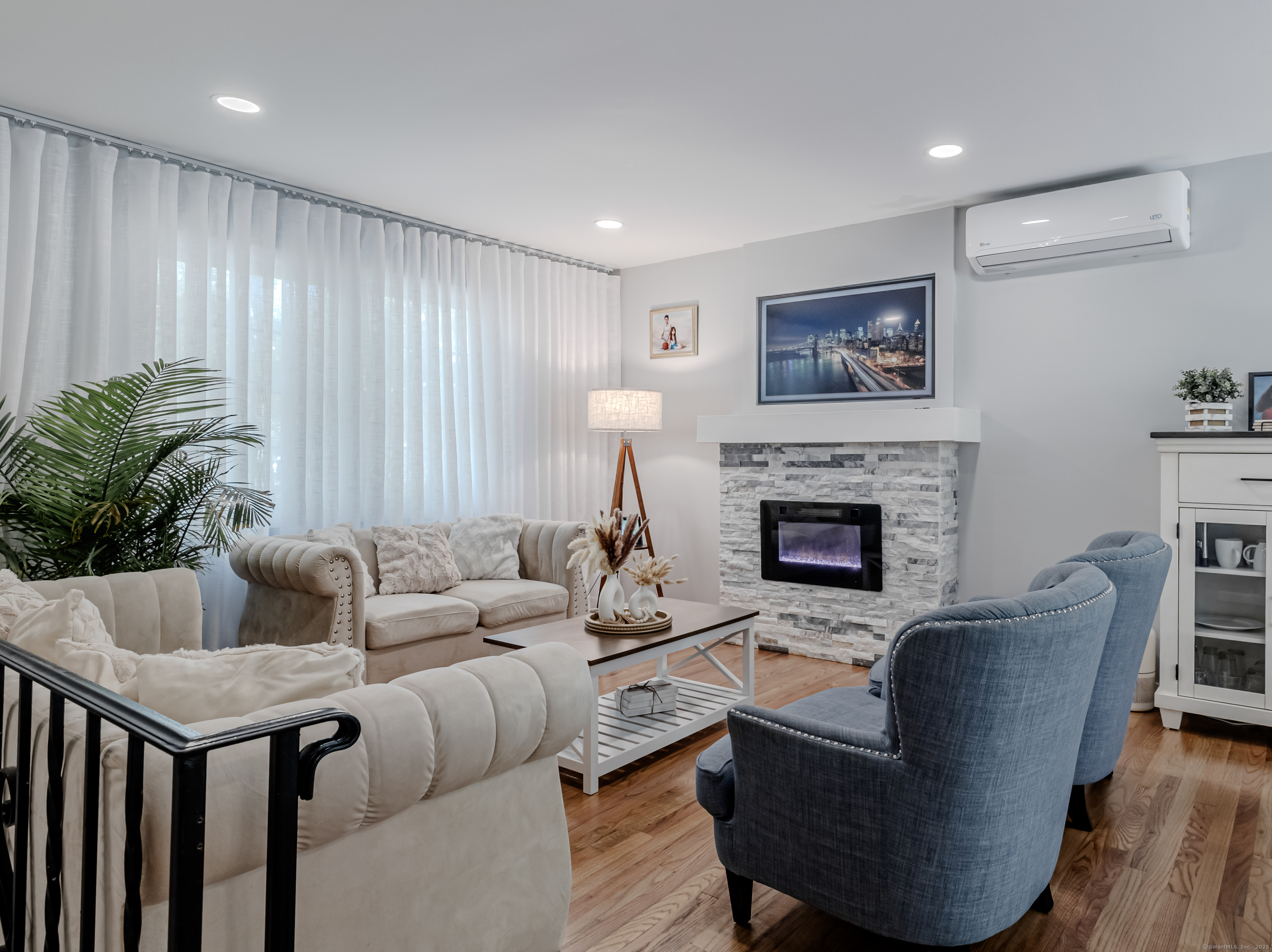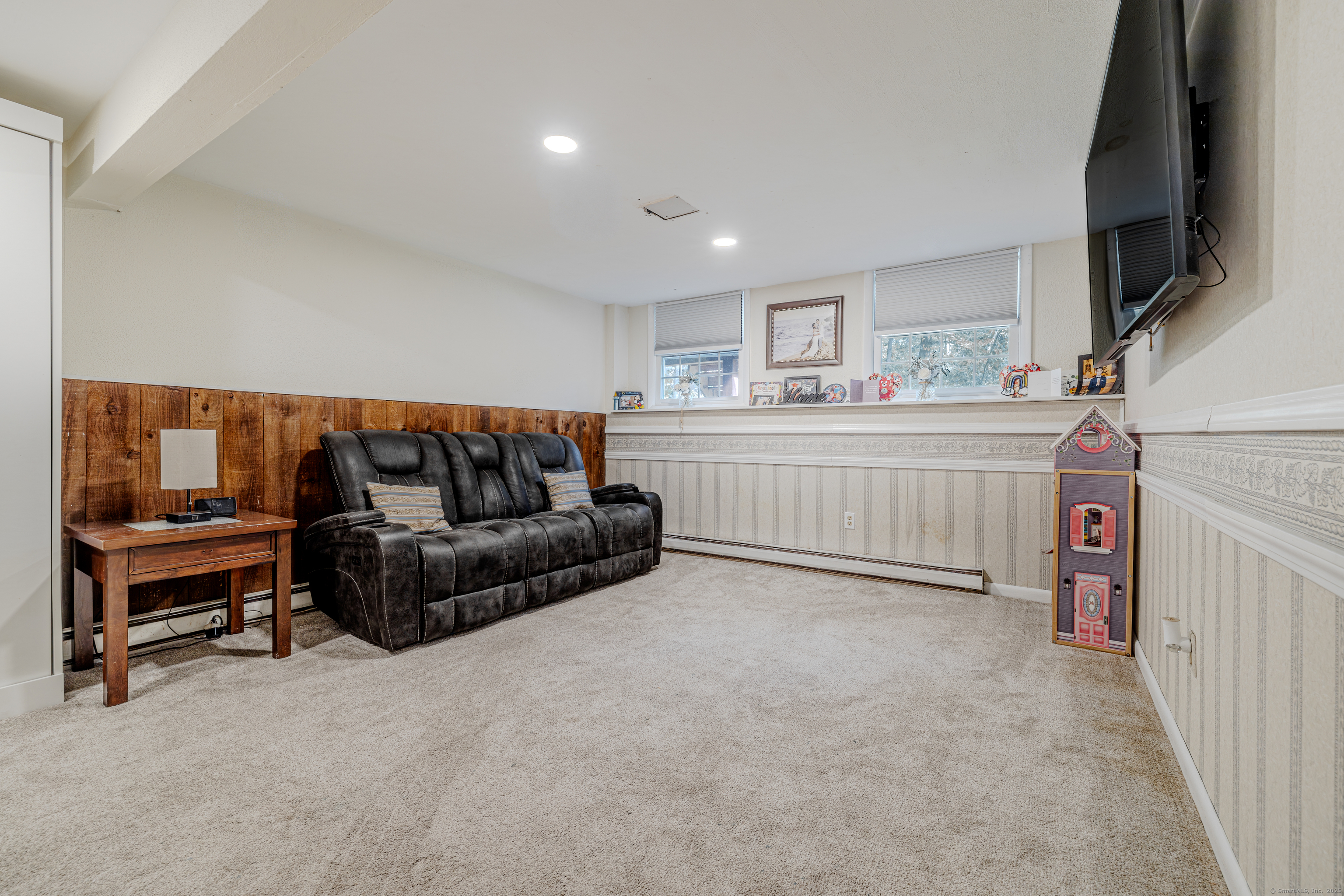 Beautifully renovated 3BR/2BA Raised Ranch featuring gleaming hardwood floors throughout the living room, dining area, hallway, and bedrooms. The modern kitchen offers white cabinetry, new appliances, and stylish finishes, creating a warm and functional space for everyday living. The living room includes a cozy electric fireplace, and the mounted TV above it will remain with the home, making it perfect for relaxing evenings or gatherings with family and friends. The primary suite includes an updated full bath, while the finished lower level offers a spacious family room, half bath, and laundry area with a brand-new washer and dryer. Every detail has been thoughtfully updated for comfort and convenience. Enjoy year-round comfort with dual heating and central A/C systems, plus a ductless split unit in the living room. The sellers have just replaced the roof, giving you peace of mind for years to come, a great upgrade that adds both value and curb appeal. Additional highlights include city sewer, one-car garage, deck overlooking a private half-acre lot, heated driveway for snowy days, and a whole-house generator for extra peace of mind. Located just minutes from Candlewood Lake, shopping, restaurants, and I-84, this home offers the perfect balance of comfort, convenience, and charm. Truly move-in ready!