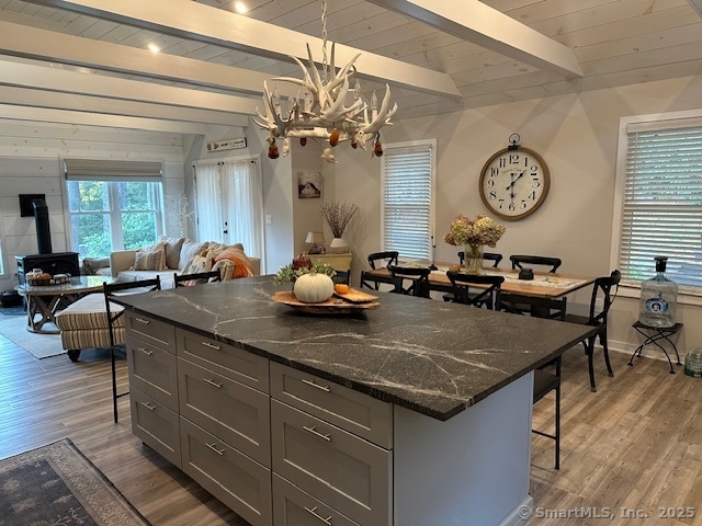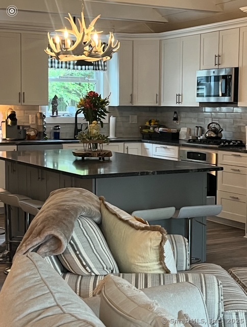 Discover lakeside living at its finest with this fully renovated, fully furnished 3 bedroom, sleeps 10, 2 full-baths, family estate set on a half acre of professionally landscaped grounds overlooking picturesque Highland Lake. Located just 0.6 miles from Main Street Winsted and Red Barn Brewing, this property combines serene lakefront living with convenient access to local amenities. Enjoy use of a private dock and waterfront deck. Perfect for boating, fishing, swimming or just relaxing by the water. Absolutely beautiful lake property. Comes fully furnished, yard with multiple destination spaces including hot tub, patio, grilling area, and multiple seating areas. This home has been beautifully remodeled inside and out. The kitchen features beautiful stone countertops, gas stove, and large Island. The dining room is directly off the kitchen. The living room features a stone wall, beautiful views, sliding doors to patio, and a gas stove. The main living area and kitchen feature beautiful wood beams as well. All 3 bedrooms are located on the main level along with the 2 beautifully remodeled full baths. The lower level features a large family/game room. garage, and laundry. This property is a must see and truly will exceed your expectations.