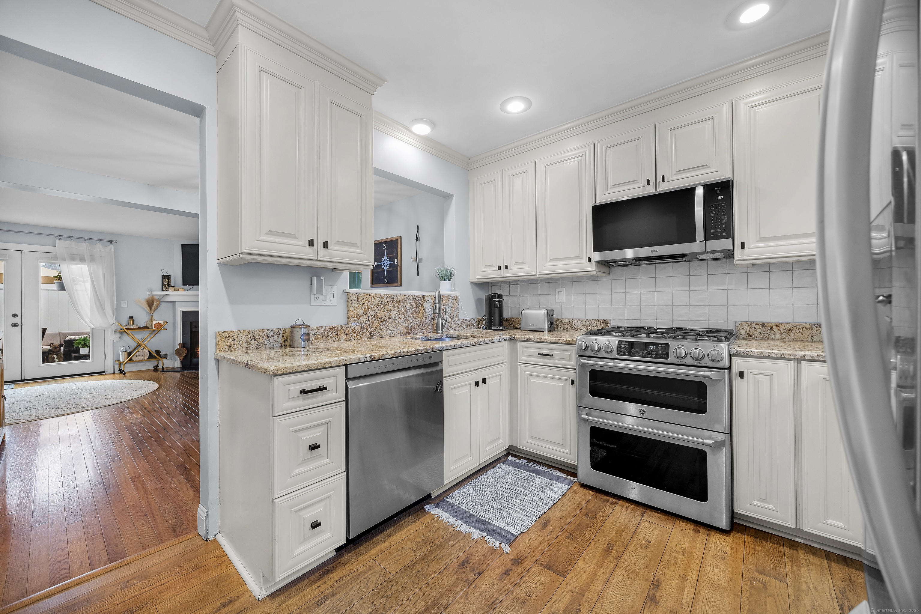 Welcome to this turn-key townhouse-style condo offering modern living in a highly convenient Shelton location.This spacious home features 3 bedrooms, 2 full baths, and 2 half baths across three well-designed levels. The main floor offers an open living/dining area with sliders to a private deck - ideal for relaxing or entertaining. The updated kitchen includes new cabinetry and brand-new stainless-steel appliances. The second level hosts two generously sized bedrooms along with laundry located right on the bedroom floor. The third-floor loft serves as a flexible suite with a walk-in closet and full bath - perfect for guests, a home office, or a private primary retreat. The lower level provides interior access to a 2-car tandem garage plus extra storage. Located just minutes to the Merritt Parkway and Route 8, this home places shopping, dining, and everyday amenities within close reach. Shelton's low taxes, top-rated restaurants, and a new Trader Joe's opening nearby soon make this an exceptional opportunity.
