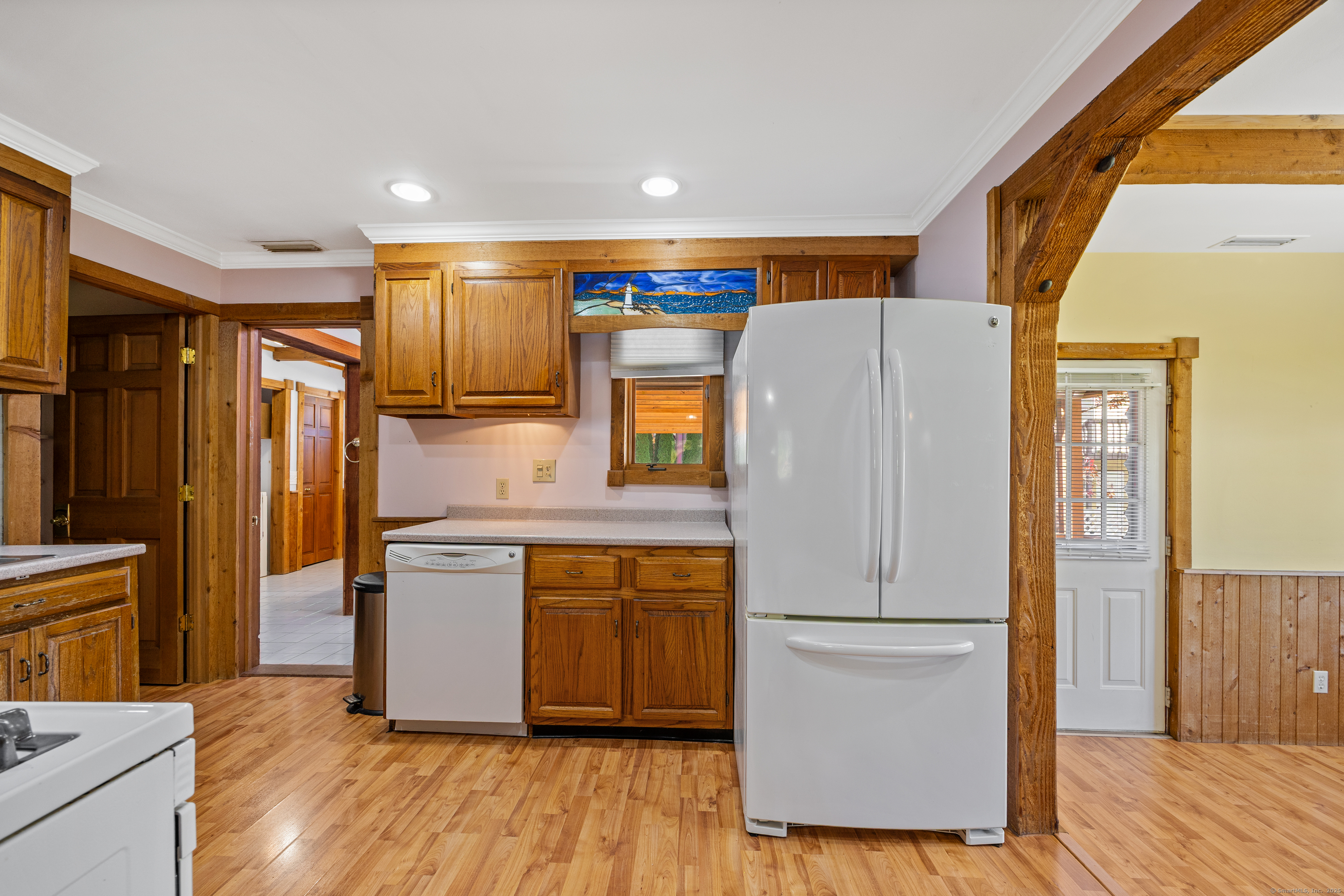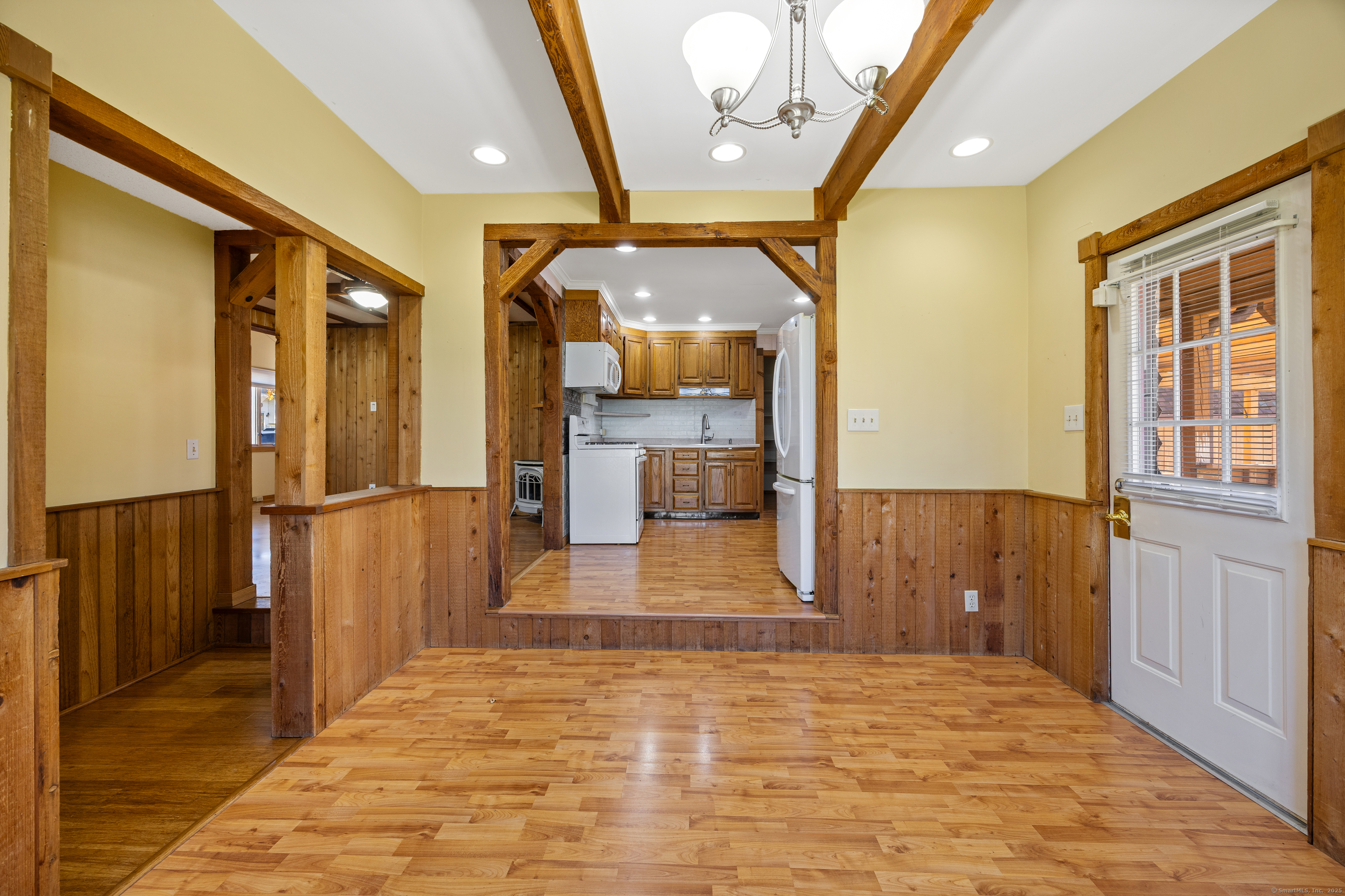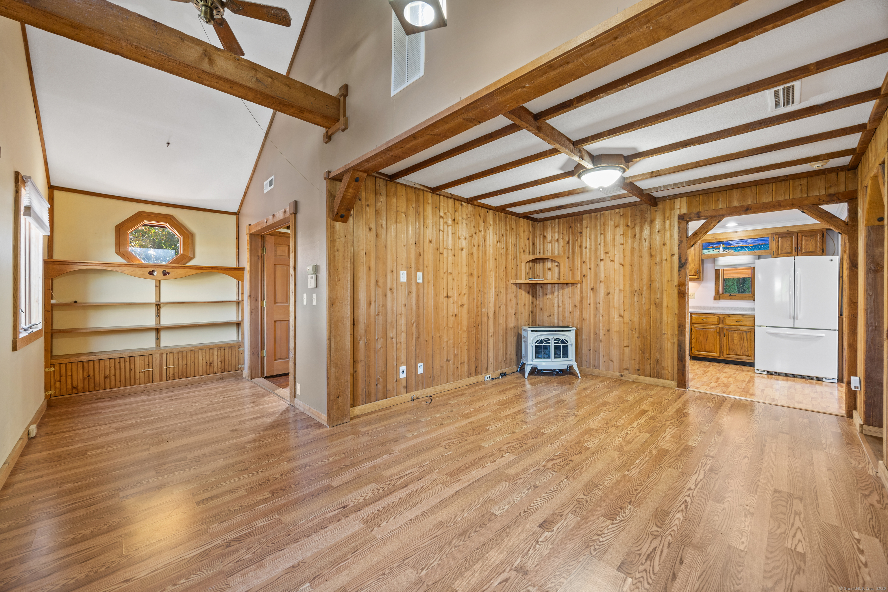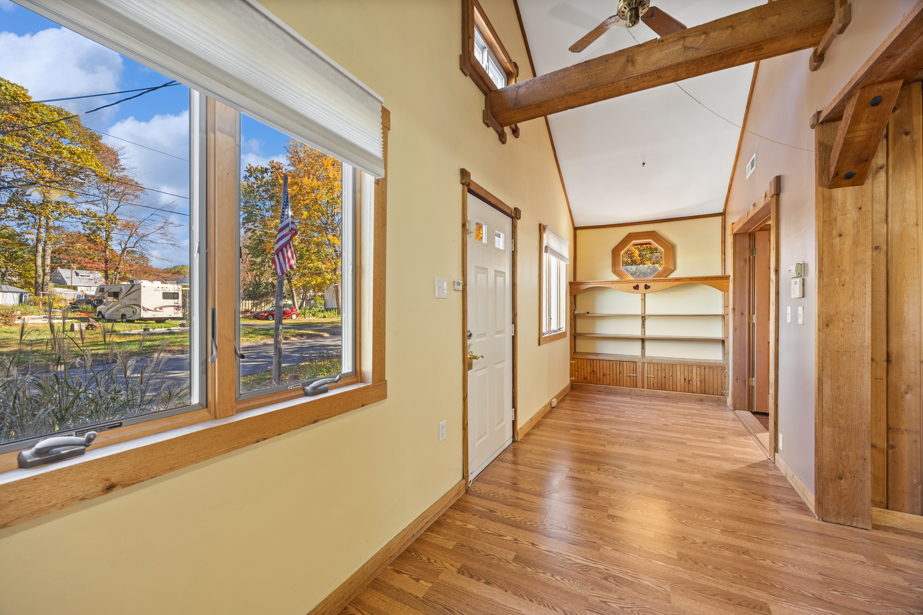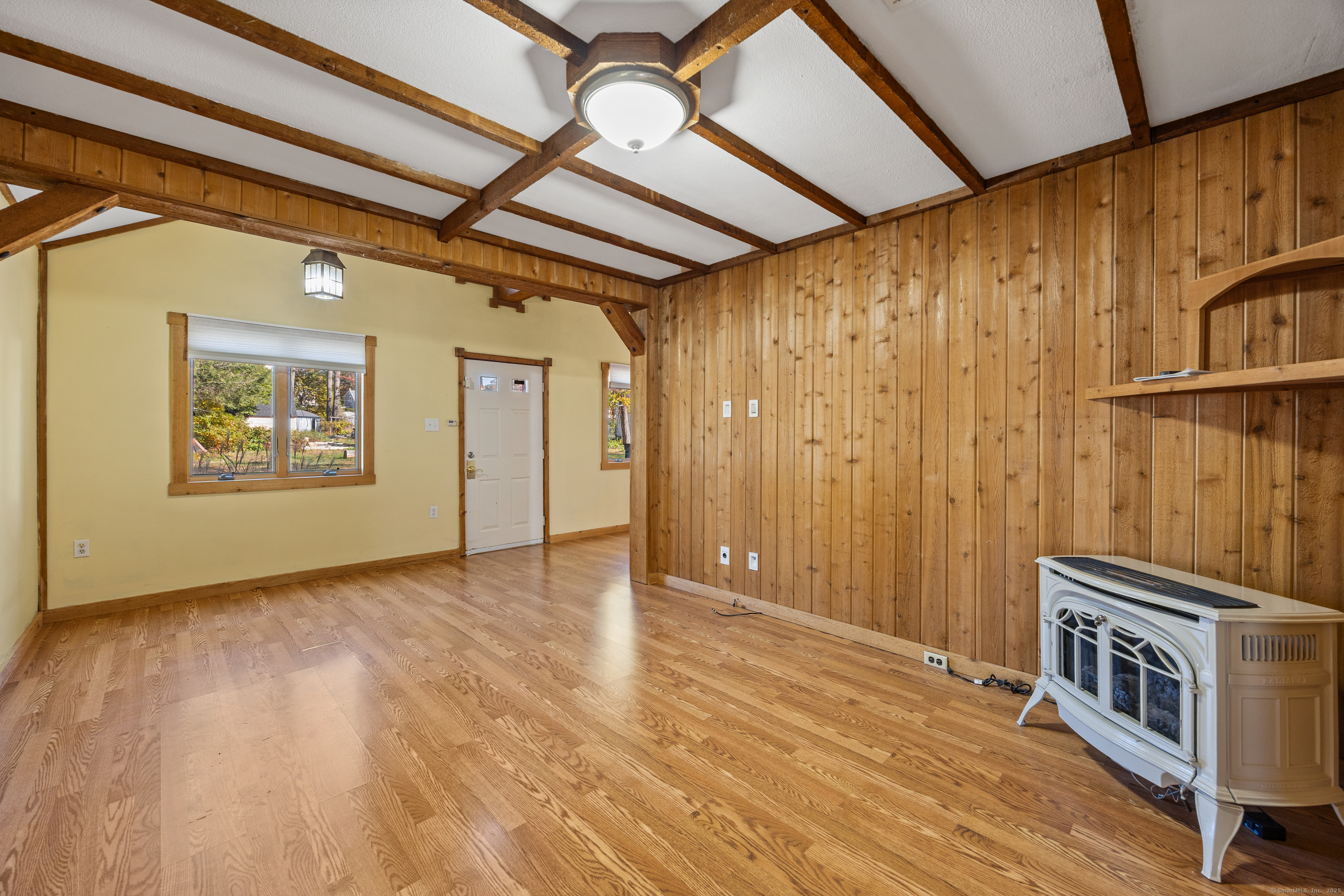 One level living in Wolcott's Hitchcock Lake community! This 2 bedroom ranch home has an open floor plan with natural light beaming in from every angle. The main level features central air conditioning, a large living room with cathedral style ceilings, kitchen complete with a pantry, recessed lighting and gas oven, a formal dining area with a bay window, full tiled bathroom with a skylight over the shower and full laundry area. There are also two sizable bedrooms with plenty of closet space. Your two tiered deck overlooks the gorgeous yard with Hitchcock Lake in the distance! Don't forget about your two car garage complete with huge finished loft above, perfect for any use! With beach rights and located minutes from the highway, this is simply a must see!