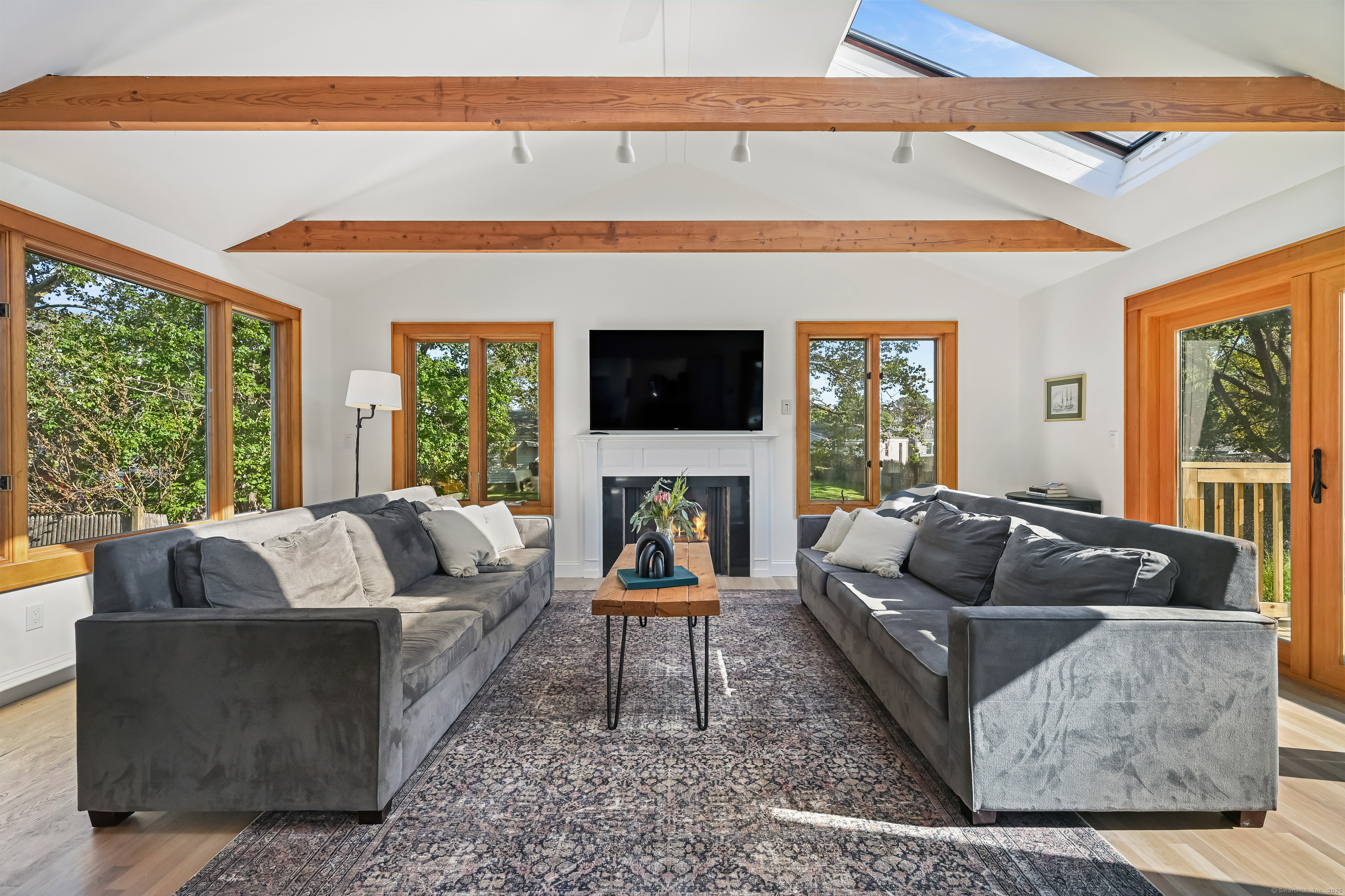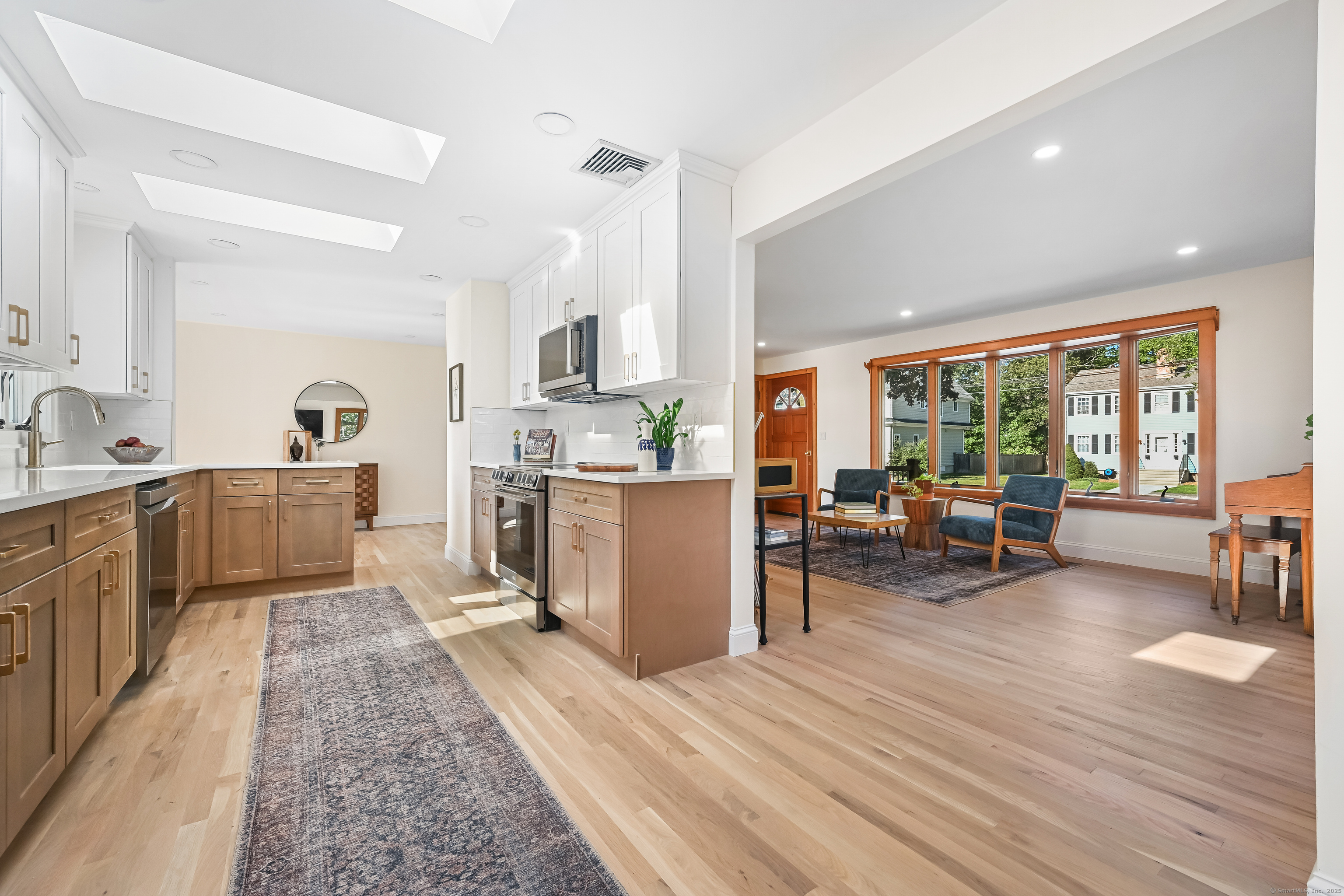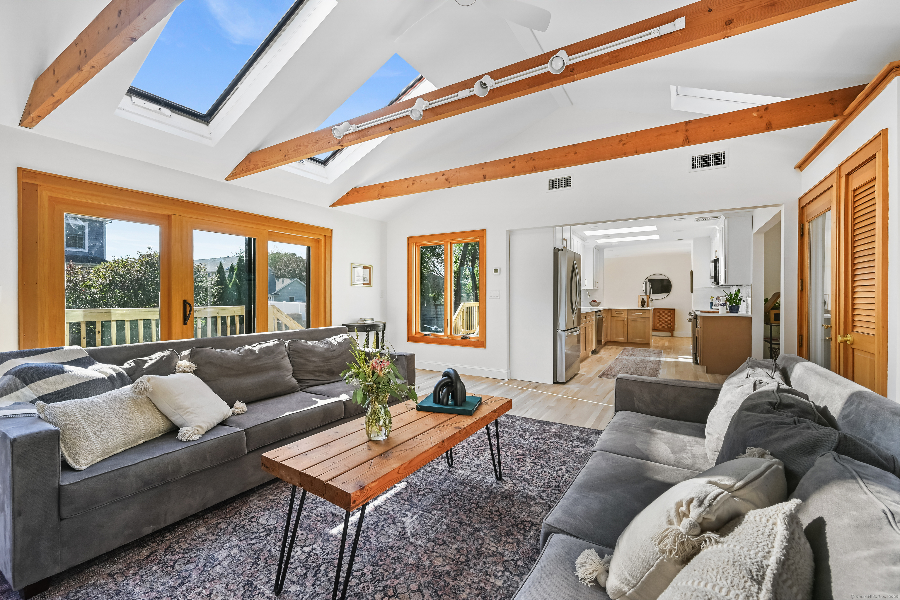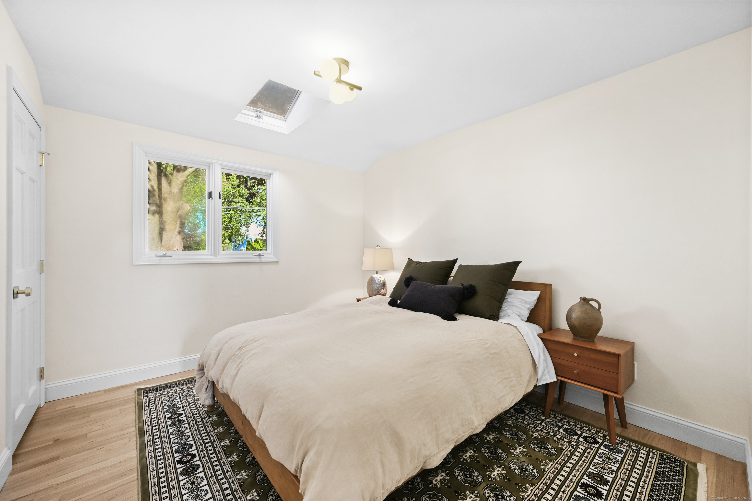 Exquisitely updated ranch-style home situated on a quiet cul-de-sac in the coveted beach area as well as just steps to Fairfield's vibrant downtown and the train station. This inviting, newly renovated home features a wonderful open floor plan and is filled with natural light, enhanced by multiple skylights throughout. Step into the welcoming living room featuring a wood burning fireplace, large bay window, and recessed lighting. This space seamlessly flows into the family room, which boasts vaulted ceilings with wood beams, skylights, a second fireplace, and sliders leading to the fully fenced backyard. The family room opens to a stunning chef's kitchen with stainless steel appliances, quartz countertops, and more skylights. Adjacent to the kitchen is the dining room with a vaulted ceiling and access to the back patio - ideal for indoor-outdoor entertaining. This home offers three bedrooms and two beautifully renovated full baths, including a primary suite with custom closet built-ins. Newly finished hardwood floors and fresh paint extend throughout, creating a bright and cohesive feel. The level, fenced in backyard provides plenty of space for relaxation and gatherings, featuring a large patio perfect for dining or entertaining. Centrally and perfectly located to easily enjoy beaches, shopping, restaurants, train, library, schools and more. Move in and begin enjoying one-level living and this incredible lifestyle!