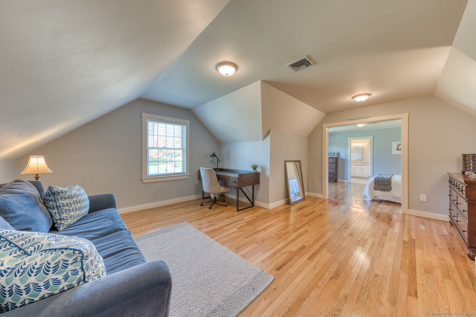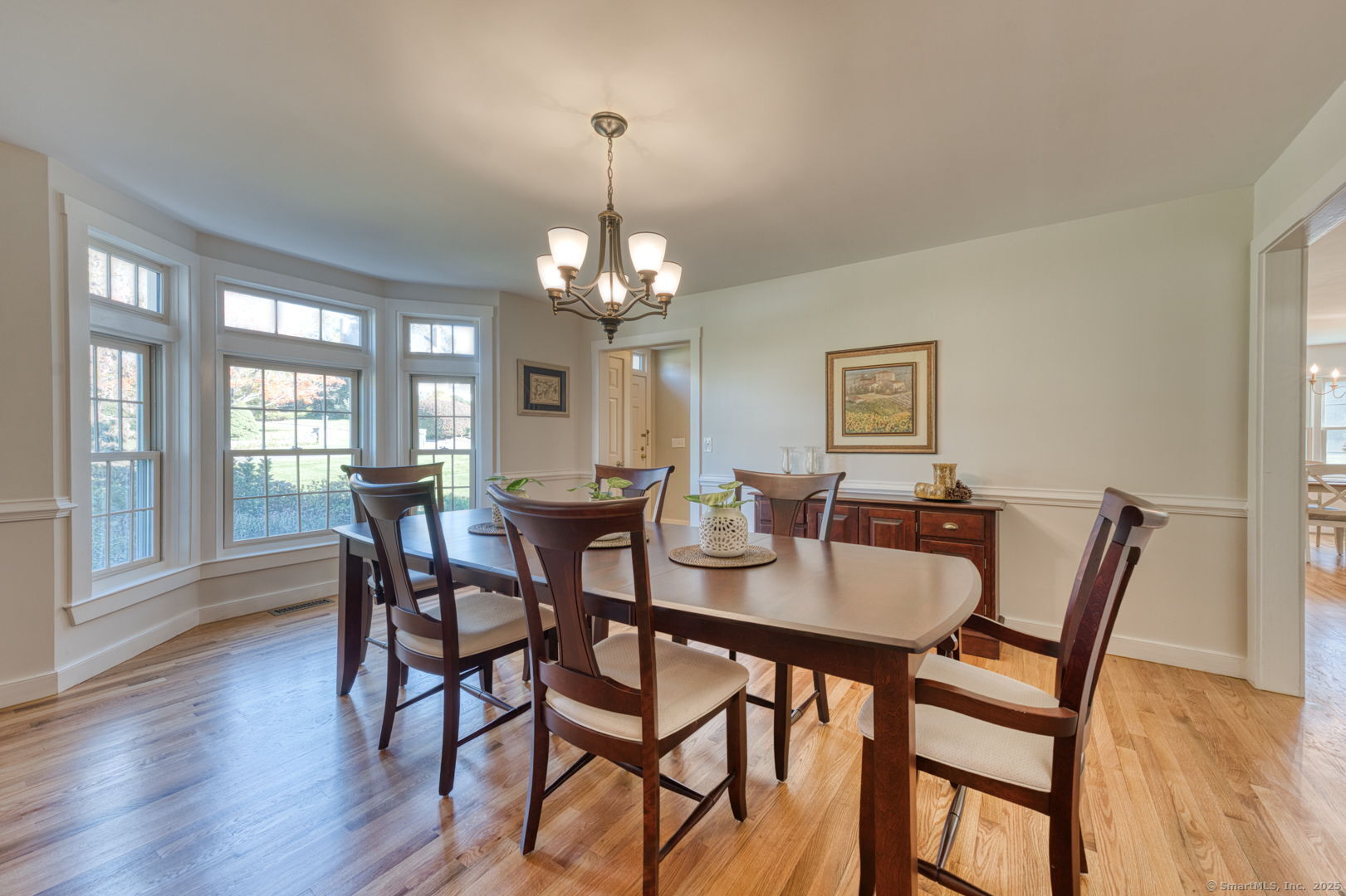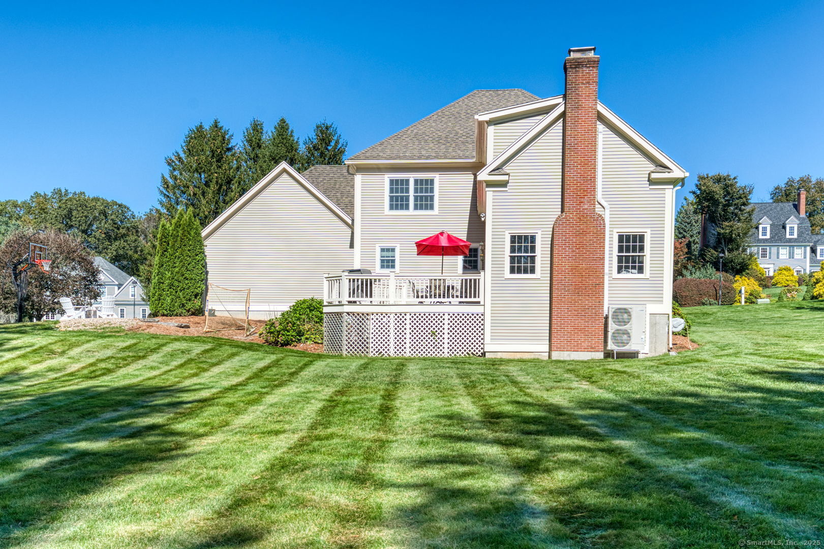 Exceptionally well-maintained home in highly desirable Balmoral neighborhood! Gleaming hardwood floors throughout, tons of natural light & a beautiful yard! Oversized dining room w/ elegant trim & bay window can accommodate a large group. Formal living room is an ideal gathering space, also accented with a large bay window. Plenty of storage in the kitchen, anchored by an island & flowing seamlessly into the large breakfast nook that has matching cabinetry & built-in desk. Stainless steel appliances & classic choices make this a space to suit all tastes. Sun-splashed family room leads out onto the deck & features a cozy fireplace. Upstairs, the primary suite will wow you with its cavernous dressing room that can be repurposed as a private office or gym. Primary bathroom boasts a tub, separate shower, makeup vanity & some updated fixtures. 3 more generous bdrms, a large bonus space (currently used as a 5th bdrm) & a hallway bath round out the upper level. Recently remodeled in 2021, the partially finished bsmt is the den you have been waiting for! Abundant room for games & entertainment, modern lighting & tasteful flooring make it an ideal extension of the rest of the home. Outside, enjoy the large, level yard & perennial landscaping. 2025 exterior paint & trim repair, 2015 roof, 2016 hardwood upstairs & in living room, 2020 Buderus boiler & AC, newer well tank & recently replaced chimney liner. Pet fence, gutter guards, wifi-enabled heat zones & generator ready. Take a look!