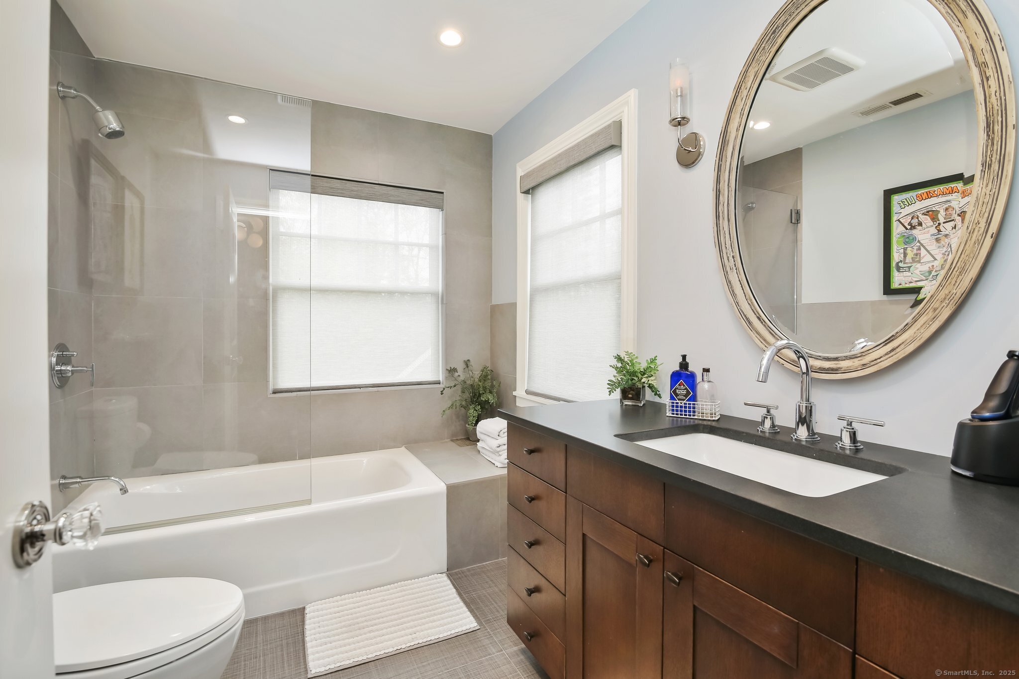 Nestled in the heart of Westport's coveted Old Hill neighborhood, this home offers the charm of an English cottage and a thoughtful design that blends classic character with the modern desire for open, connected living. Encompassing nearly 4,000 square feet, it features four ensuite bedrooms, walk-in closets, and a curated layout that combines timeless architectural details with contemporary comfort. At its center, a sunlit great room anchors the home, seamlessly connecting the custom kitchen, dining area, and living room-ideal for casual family living. While the open-concept design fosters connection, the home also offers refined spaces for formal entertaining. A versatile third-floor retreat provides a spacious bedroom or office that opens to a generous outdoor deck-perfect for morning coffee, remote work, or unwinding under the stars. Meticulous millwork, bespoke cabinetry, and finely crafted finishes are paired with a clean, modern aesthetic, creating a home both rooted in tradition and refreshingly current. Outside, an expansive bluestone patio invites alfresco dining and relaxed gatherings. Mature evergreen trees and fragrant plantings surround the property offering exceptional privacy. Just a short stroll to downtown Westport's restaurants, shopping, library, and the Levitt Pavilion, this home offers historic charm, modern ease, and in-town living.