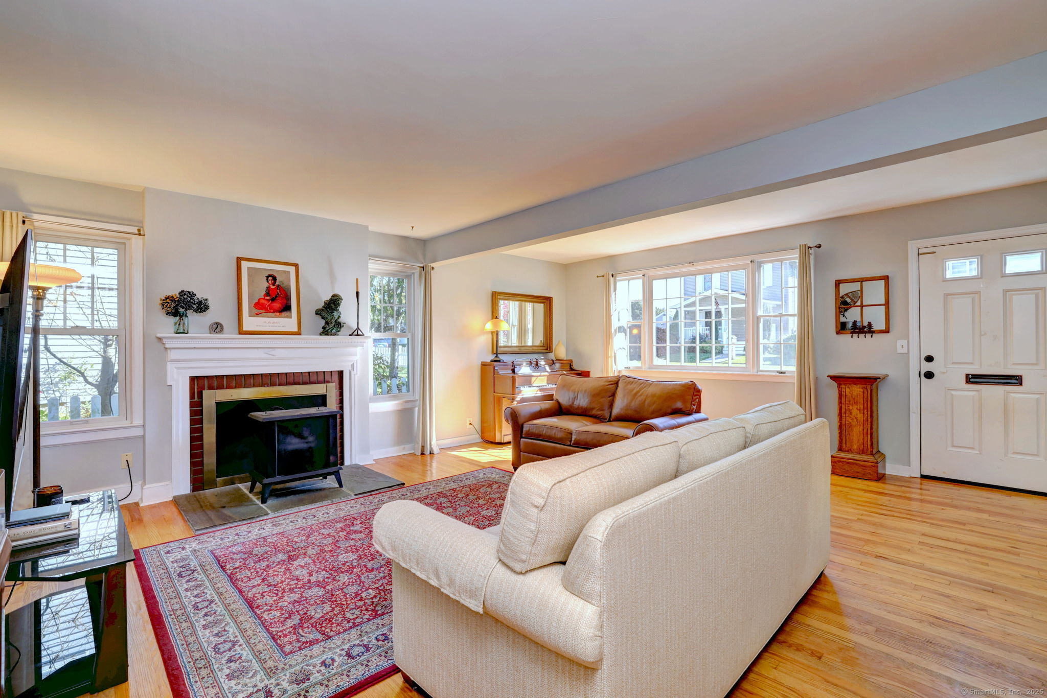 Custom Colonial/Cape filled with charm. Welcome to this beautifully maintained, sun-filled home offering 1,850 sq ft of comfortable living space on a lovely landscaped lot in Milford's desirable Rivercliff neighborhood. Enjoy the convenience of ranch-style living with a first-floor bedroom and full bath, perfect for guests, or single-level living. The home features hardwood floors throughout, adding warmth and character to the expansive layout. The inviting formal living room boasts a classic brick fireplace with a wood mantle, ideal for cozy evenings. The well-appointed kitchen features an island for added storage and casual dining, which opens to a sunroom, a perfect spot for morning coffee or relaxing in warmer months, overlooking the fenced-in backyard. Host memorable gatherings in the formal dining room, designed for entertaining family and friends. Upstairs, you'll find a private primary bedroom, two additional bedrooms, and a full bath, offering comfort and flexibility for any lifestyle. The unfinished basement with access to the backyard and detached garage are just a few more things you will appreciate. This home is truly move-in ready. Located just minutes from I-95, Milford's vibrant town center, train station, fine dining, river and harbor access, and fabulous beaches, this property offers the perfect blend of coastal charm and commuter convenience. Don't miss your chance to own a slice of paradise in Rivercliff!