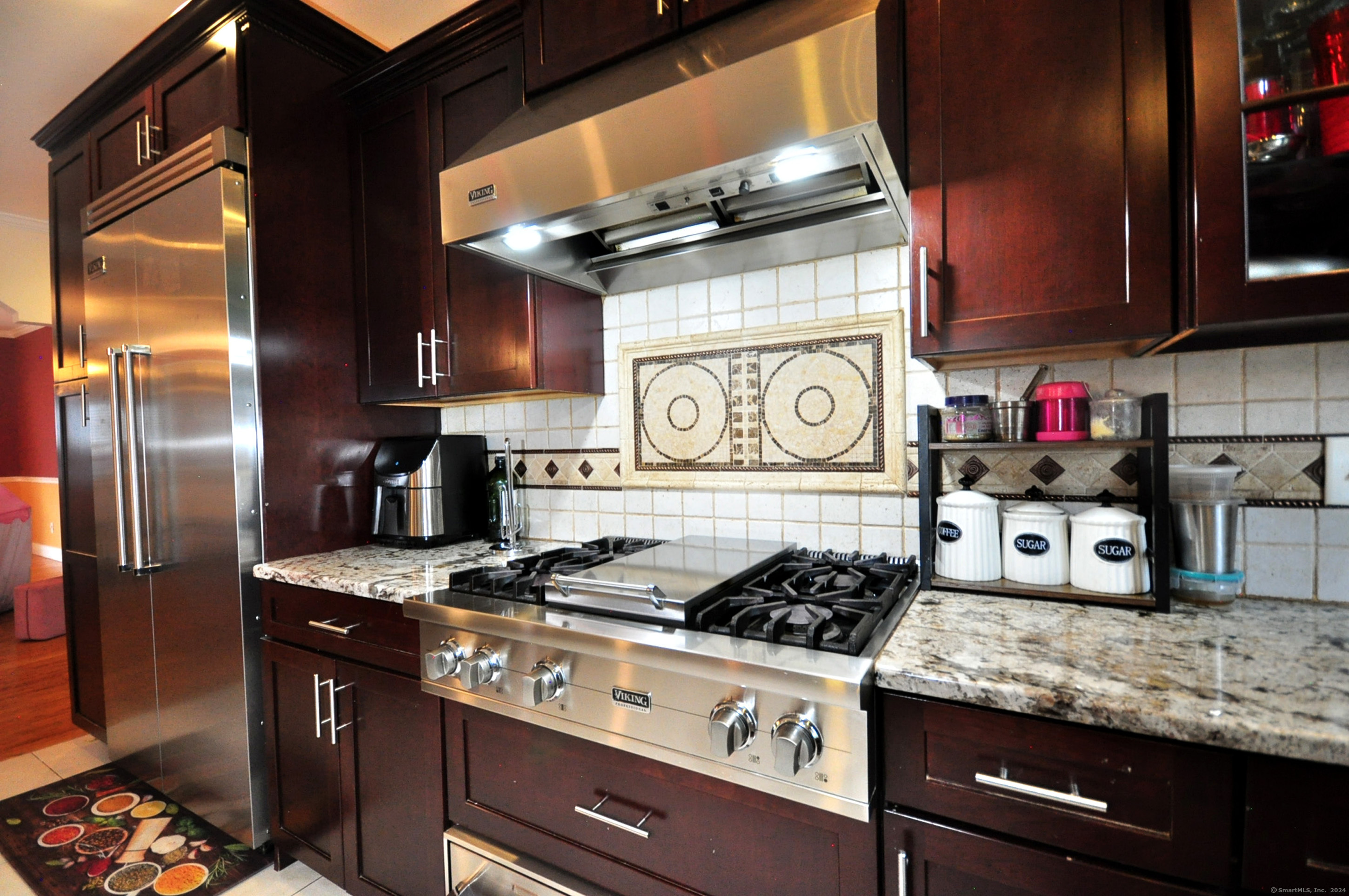 Welcome to your dream home! This custom-built Colonial offers seven bedrooms, 5.5 baths, and over 7,000 sq ft of beautifully finished living space. The grand two-story foyer with a split staircase opens to a stunning family room featuring a 19-foot cathedral ceiling and a gas fireplace. The gourmet kitchen is a chef's delight, featuring granite countertops, Viking stainless-steel appliances, custom tilework, and cherry oak cabinetry. A formal dining room with 9-foot ceilings, crown molding, and French doors provides an elegant setting for entertaining. The first-floor primary suite includes walk-in closets and a luxurious bath with a stall shower. A second spacious primary suite on the upper level offers additional comfort and privacy. The upper floor also features four further bedrooms and three full baths, providing ample space for family and guests. Gleaming hardwood floors, detailed millwork, and abundant natural light flow throughout. Perfect for both grand gatherings and everyday living, this exceptional home combines style, comfort, and quality craftsmanship.