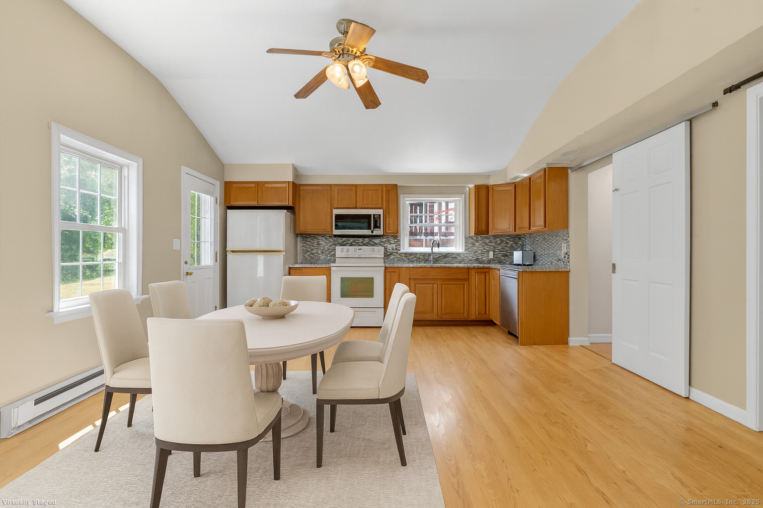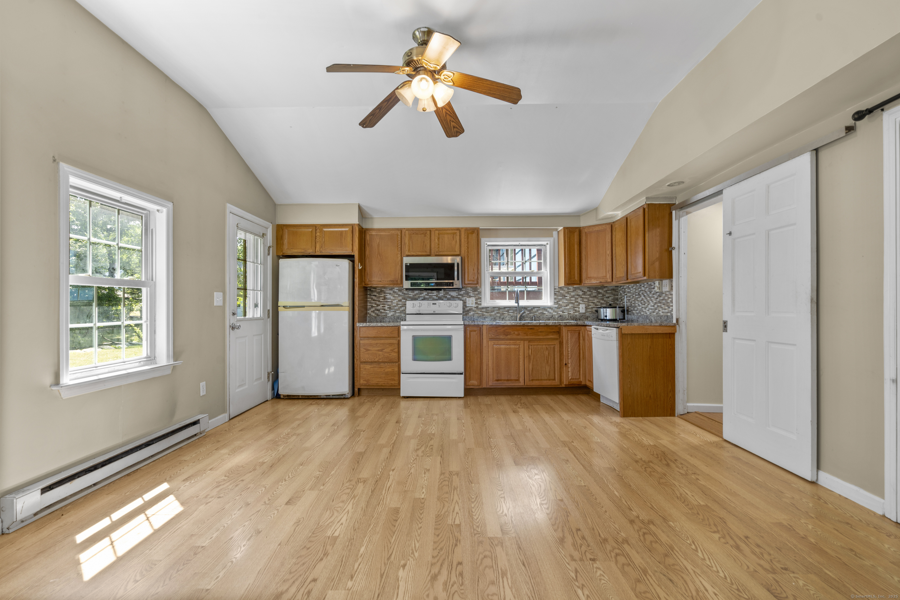 Tucked into Hamden's highly desirable Whitneyville neighborhood, this multi-level residence delivers space, flexibility, and thoughtful updates across four finished levels. Step inside to a bright, open layout where the living room is anchored by a classic wood-burning fireplace, creating a cozy focal point that flows naturally into the dining area and kitchen. Sliding doors open to a brand-new vinyl deck-perfect for grilling, entertaining friends, or unwinding as the sun sets. Upstairs, you'll find three comfortable bedrooms and a full bath. The top floor offers a private retreat with a spacious bedroom, two walk-in closets, and an oversized en-suite bath featuring a jetted soaking tub. The finished lower level adds incredible value and versatility. With an in-law suite that includes a private entrance, full eat-in kitchen, bonus room, and full bath, it's ideal for multi-generational living or generating rental income. Whether you're looking for space to grow into or a smart house-hacking opportunity, this setup checks all the boxes. Recent upgrades include a new roof, new furnace, and new water heater. The level backyard offers space to unwind, garden, or entertain. Rarely does a home with this level of function, flexibility, and upside potential hit the market-schedule your showing today.