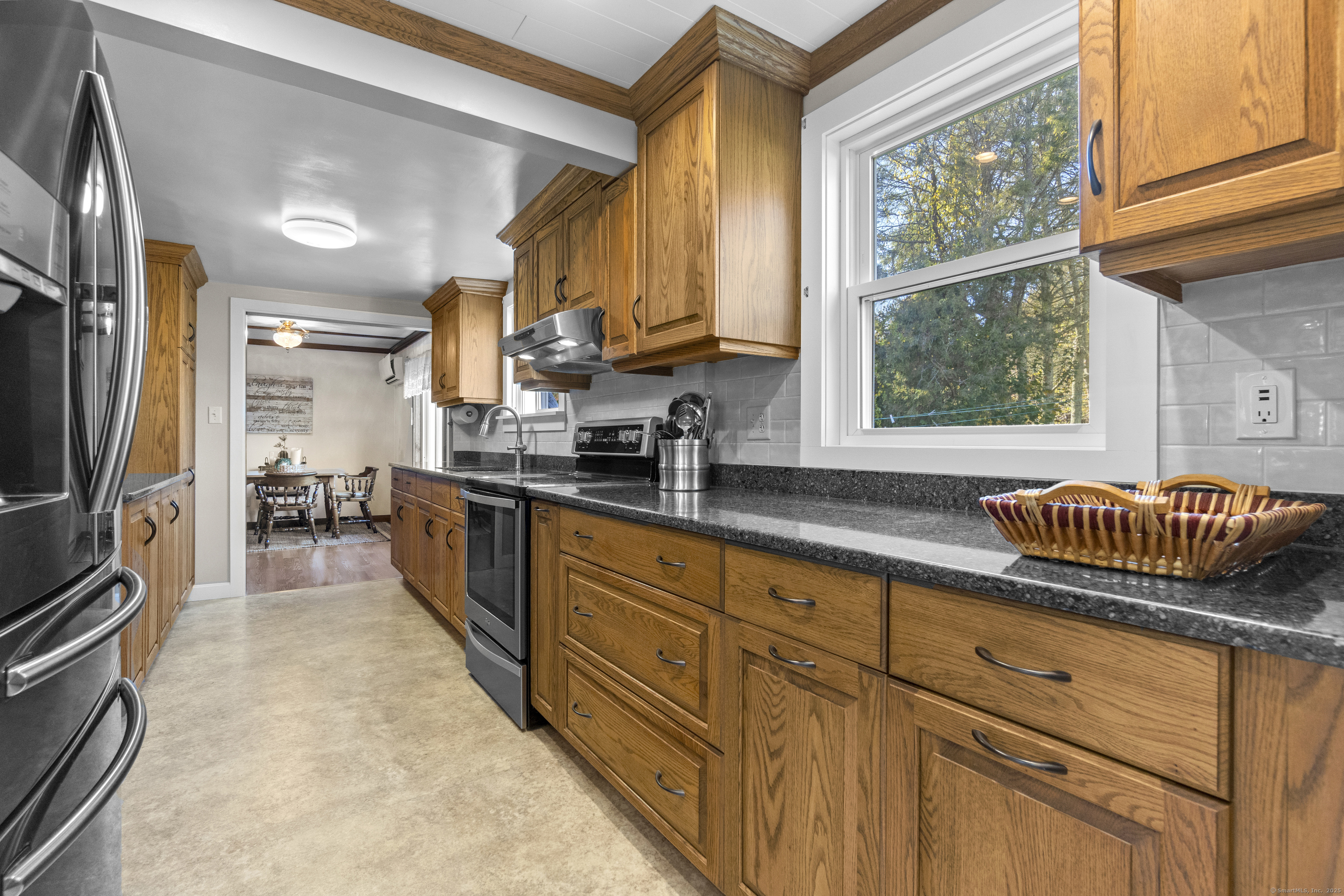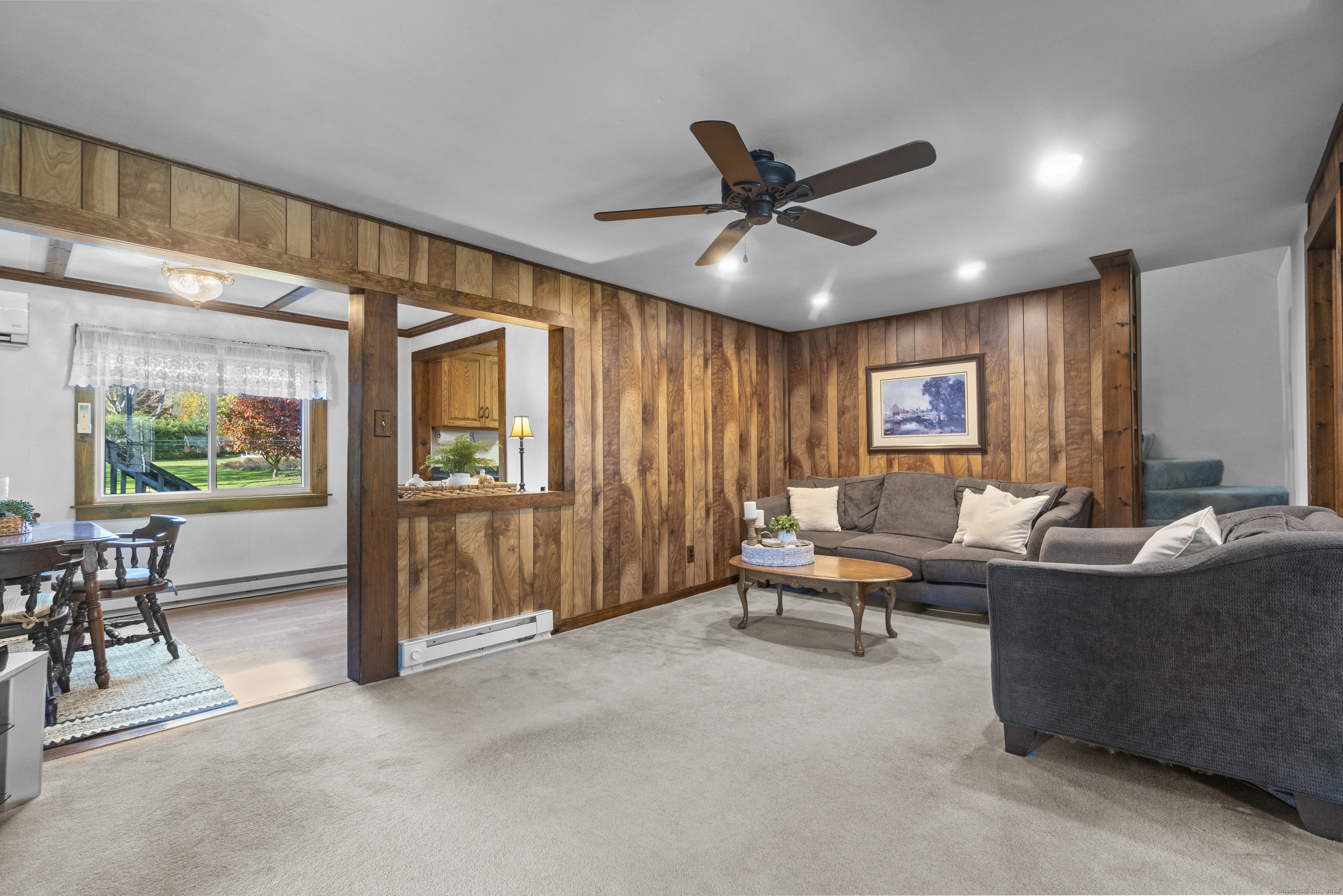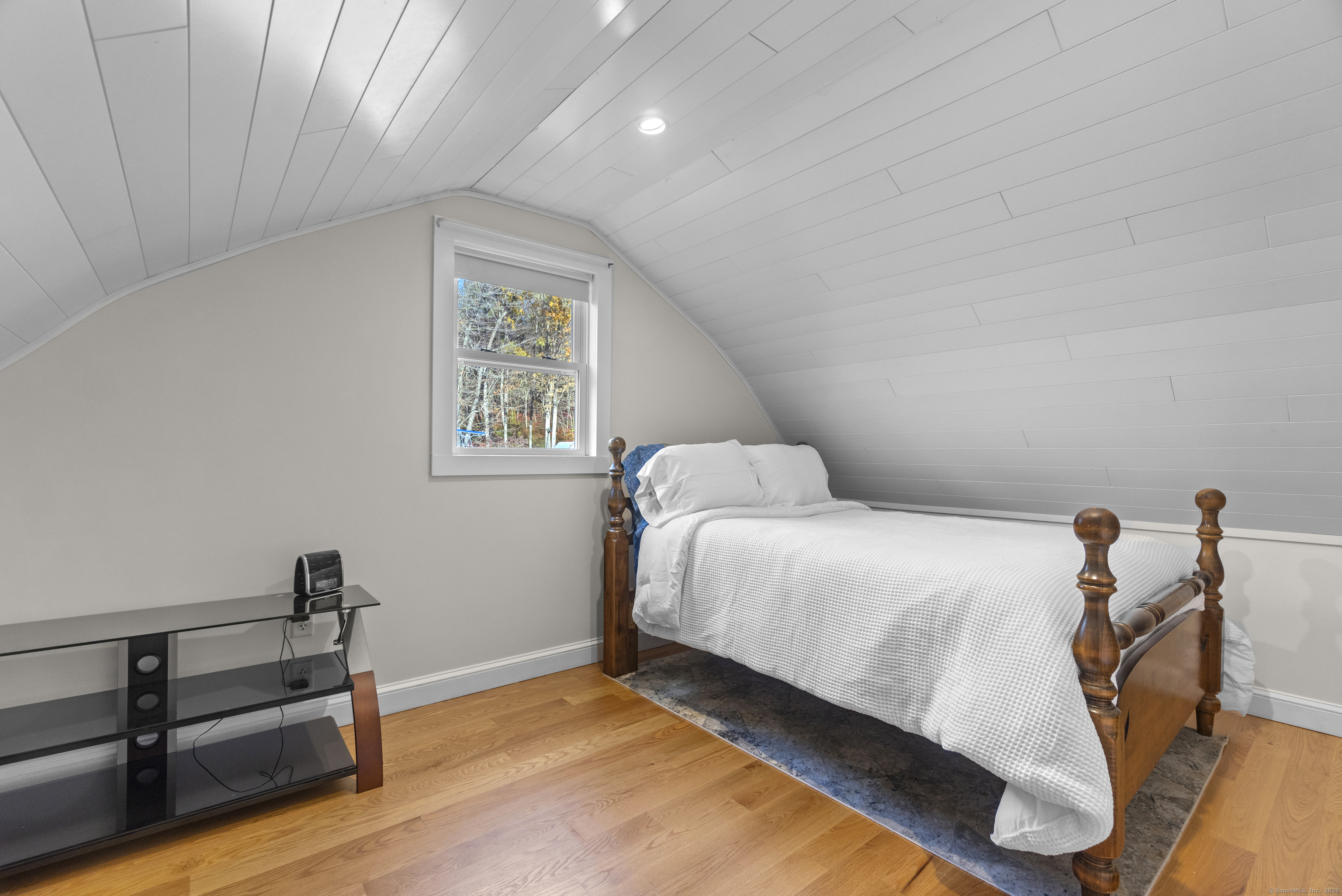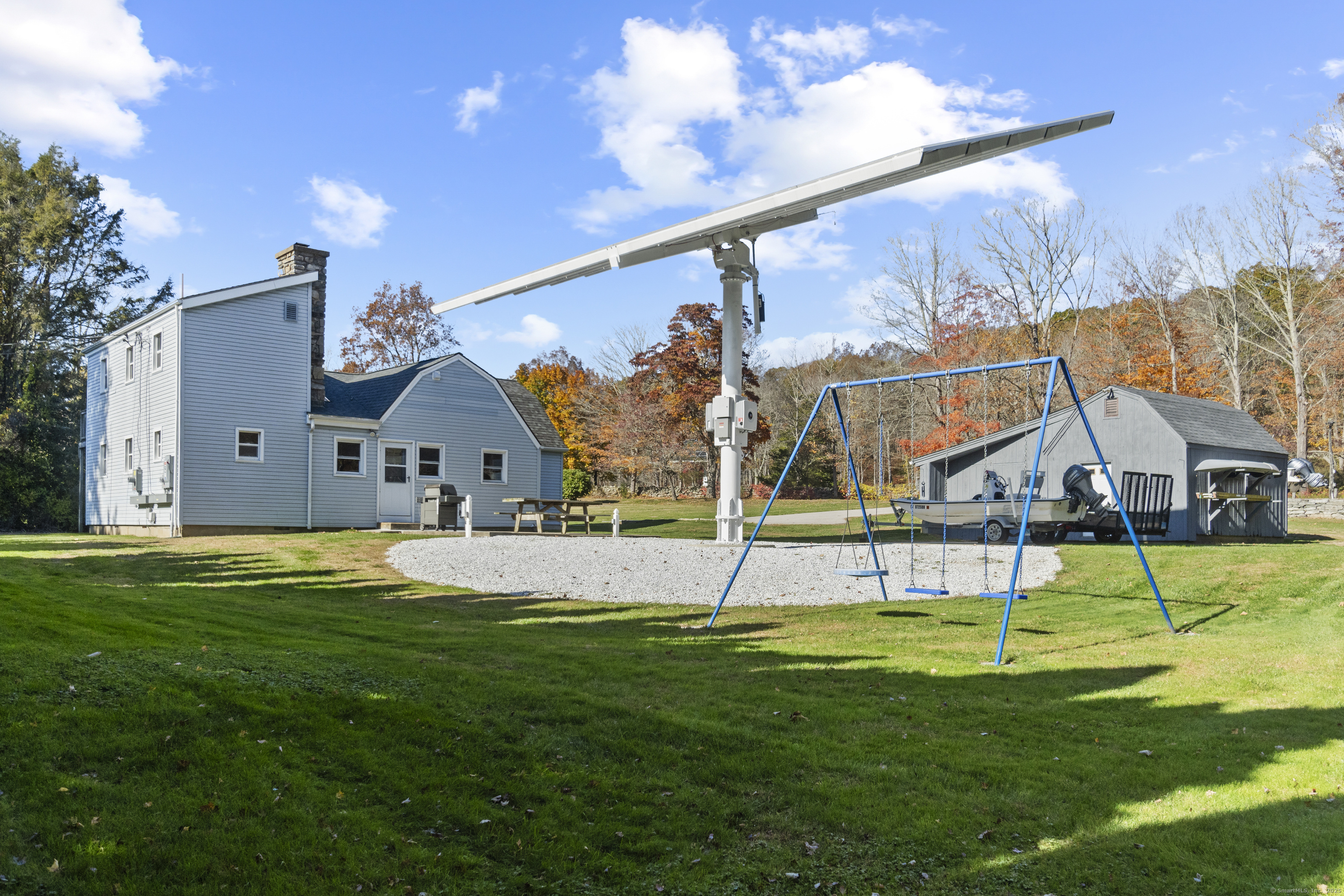 This charming cape has grown with this family in their 50+ years residing just 2 miles north of Old Lyme village. Well maintained and loved, enter a spacious and functional mudroom/laundry room. A well planned and updated granite/stainless kitchen opens to the dining area. There is a spacious family room with a large stone surround and wood pellet stove. There is a first floor office and a first-floor primary bedroom with full bath. Upstairs, find three additional bedrooms. The central bedroom is used as a den. Find a nicely remodeled full bath with heated marble basket weave floor and extensive closets. There is hardwood floor under carpets except for the two largest bedrooms - the primary and upper level BR. A Sun Tracker solar array was installed in 2024 providing all the electric necessary to operate the home-heat, lights, laundry, cooking. Electricity cost is $14 per month covering the connection fee. This is owned - paid in full. Outside offers incredible space on nearly an acre of open land perfect for gardening and pets. The barn offers great workshop, and the shed houses your garden/mowing equipment. Enjoy all of the Old Lyme amenities white sand beaches, Rogers Lake, endless hiking preserves, Florence Griswold Museum, Lyme Art Academy and the treasures of the lower Connecticut River Valley! 20/45/40 minutes to Groton/New London and Hartford and New Haven. Welcome home!
