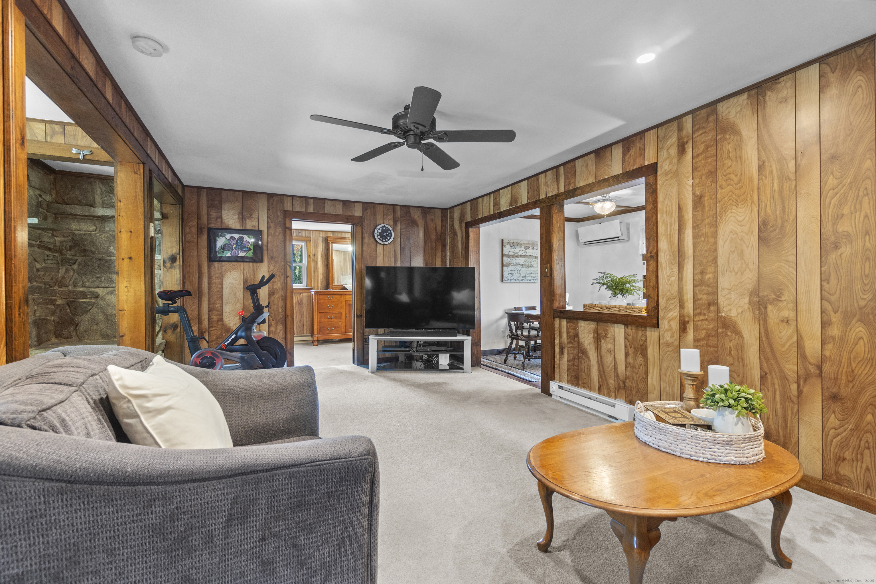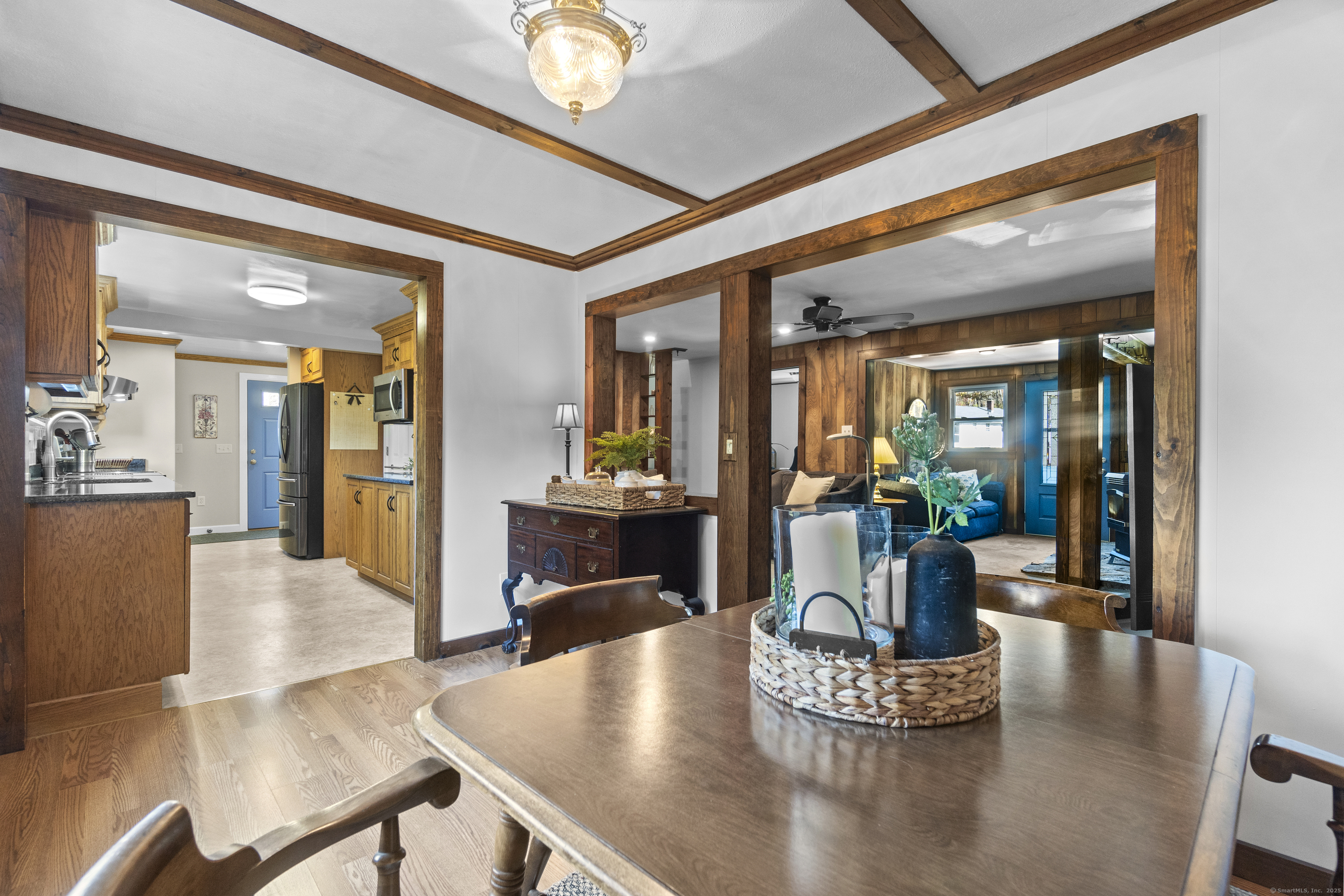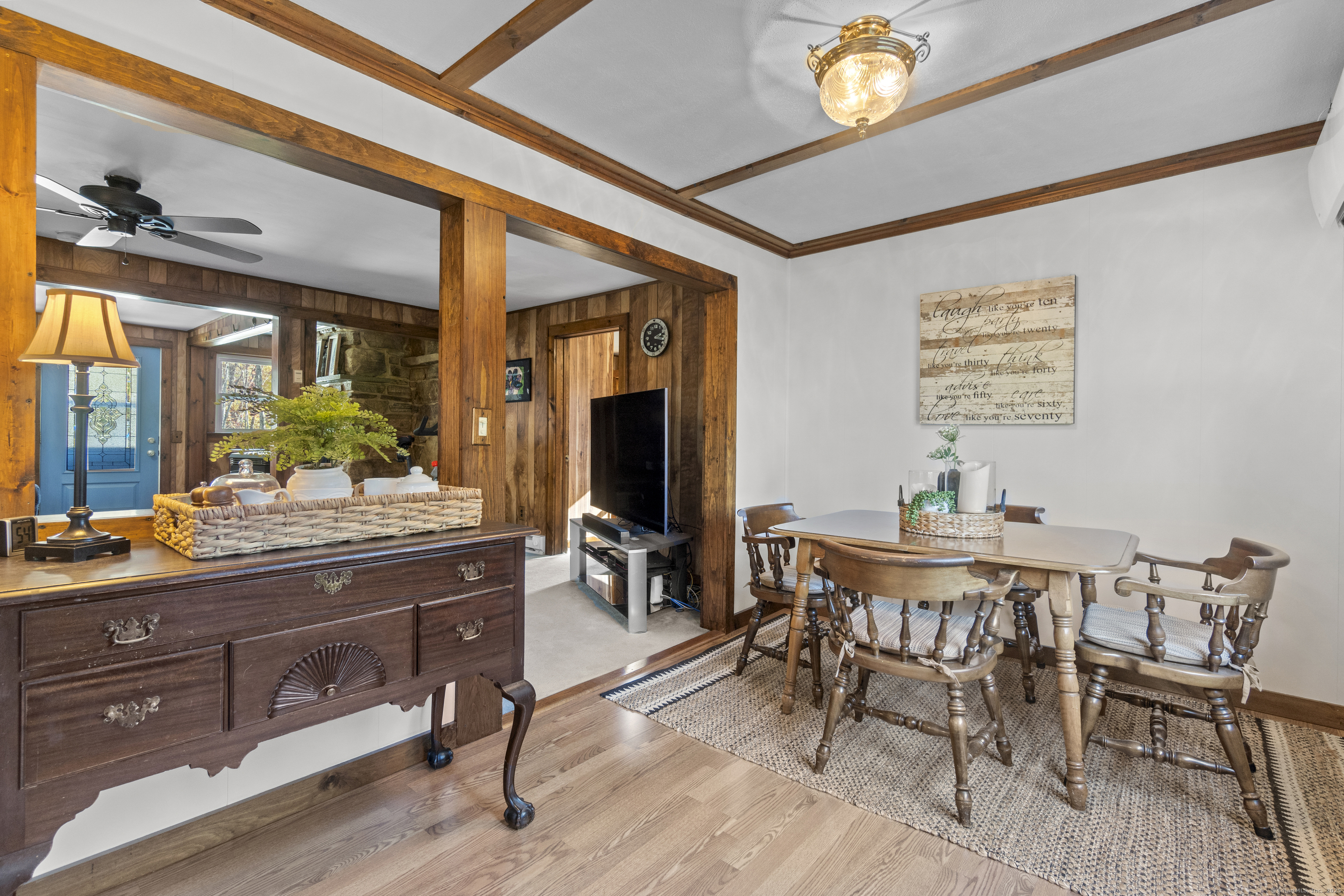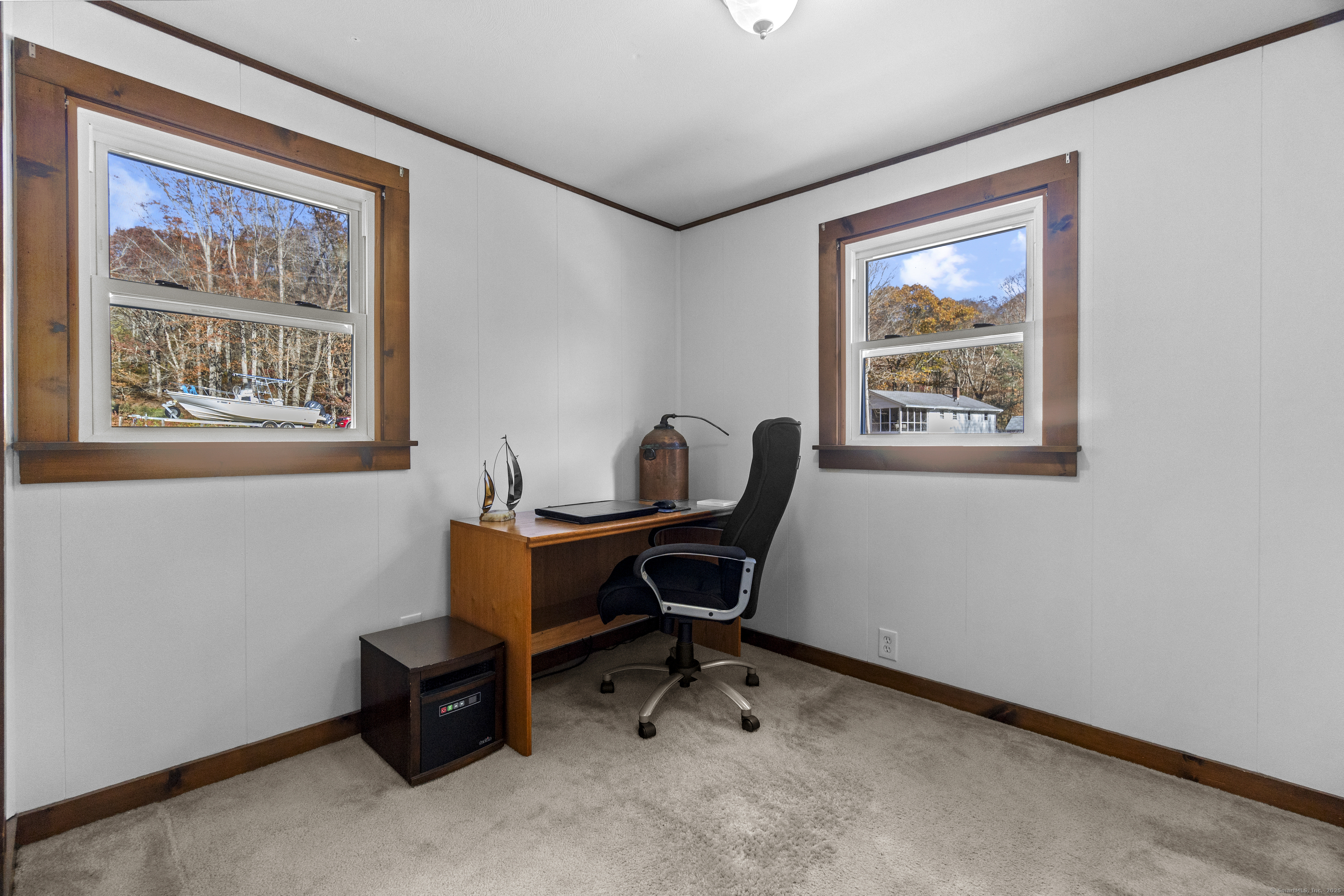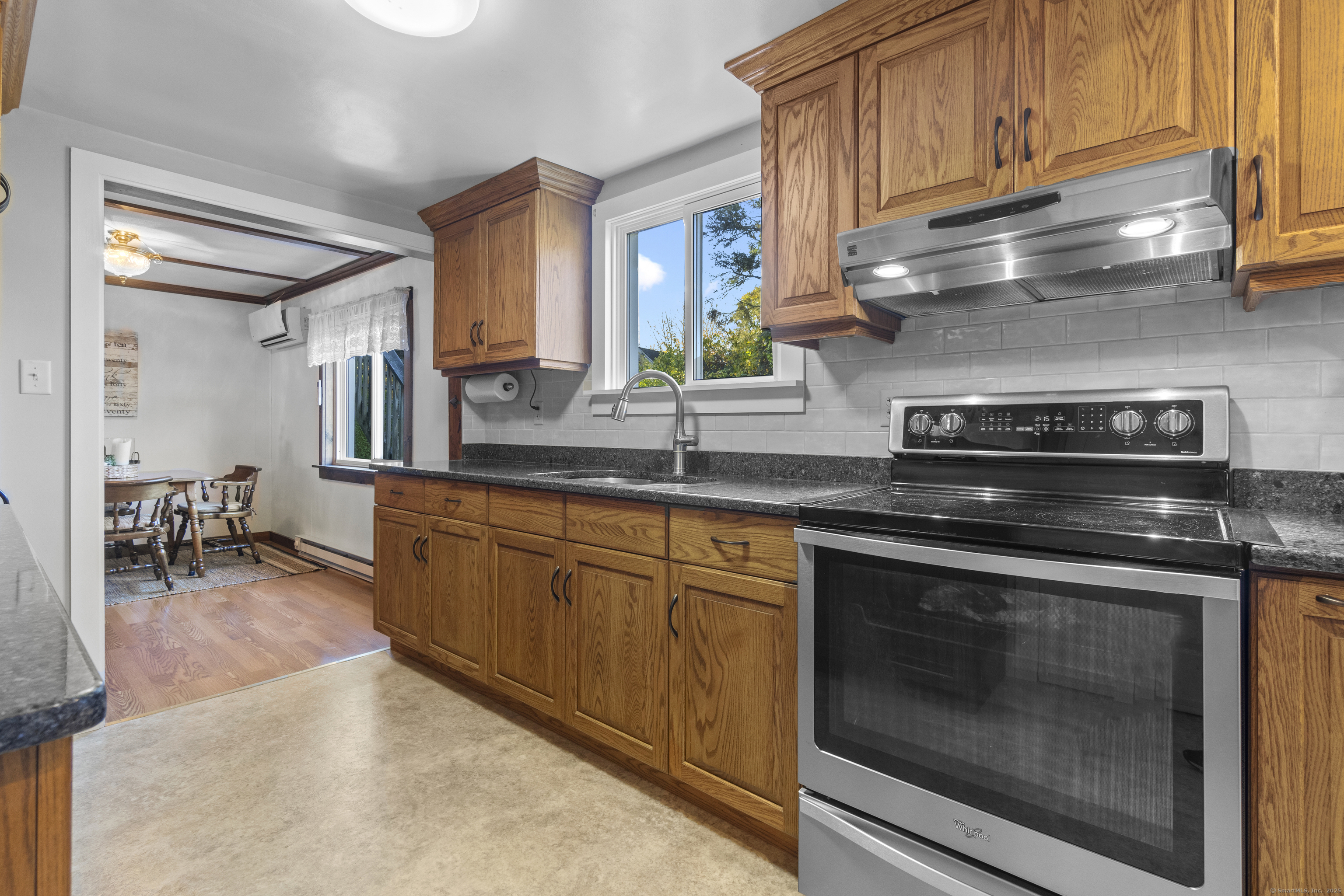 This charming cape has grown with this family in their 50+ years residing just 2 miles north of Old Lyme village. Well maintained and loved, enter a spacious and functional mudroom/laundry room. A well planned and updated granite/stainless kitchen opens to the dining area. There is a spacious family room with a large stone surround and wood pellet stove. There is a first floor office and a first-floor primary bedroom with full bath. Upstairs, find three additional bedrooms. The central bedroom is used as a den. Find a nicely remodeled full bath with heated marble basket weave floor and extensive closets. There is hardwood floor under carpets except for the two largest bedrooms - the primary and upper level BR. A Sun Tracker solar array was installed in 2024 providing all the electric necessary to operate the home-heat, lights, laundry, cooking. Electricity cost is $14 per month covering the connection fee. This is owned - paid in full. Outside offers incredible space on nearly an acre of open land perfect for gardening and pets. The barn offers great workshop, and the shed houses your garden/mowing equipment. Enjoy all of the Old Lyme amenities white sand beaches, Rogers Lake, endless hiking preserves, Florence Griswold Museum, Lyme Art Academy and the treasures of the lower Connecticut River Valley! 20/45/40 minutes to Groton/New London and Hartford and New Haven. Welcome home!