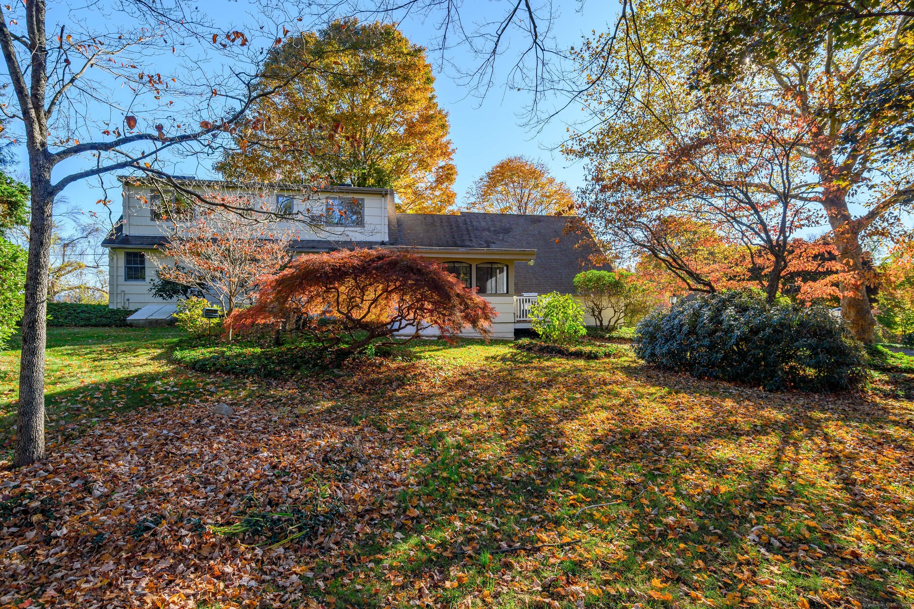Classic Charm can easily describe this house and property which are uniquely located within two miles (as the crow flies) from the Iconic flagpole in Newtown. This custom Cape Cod style home is situated on nearly one acre of land. The property shows magnificently with mature trees, shrubs and a pergola located in the back yard. At one time there was a small man-made pond just north of the pergola; the lower elevation can still be seen among the plantings. The front yard faces east with a unique view over Newtown Forest Association's Deep Brook Preserve, Dickinson Park, Fairfield Hills, and more far-reaching views towards Southbury and Oxford. There is a subtle privacy and yet connective flow with the neighboring properties. Interior to the house on the first floor, there is a nice circular flow allowing easy access between Livingroom, Dining and Kitchen. Two bedrooms are located on the second level; with the third located at the end of a short hallway on the first floor. The unfinished basement is accessed both from the kitchen through a doorway; as well as via hatchway door from the backyard. Off the rear (with western views) is a three-season room and adjoining deck. The two-car garage has additional space off to one side. This home is equipped with Guardian 16kw generator. This classic well maintained home offers both charm and practicality. In the springtime, an impressive array of bulbs and buds bloom in nearly every corner of this yard.