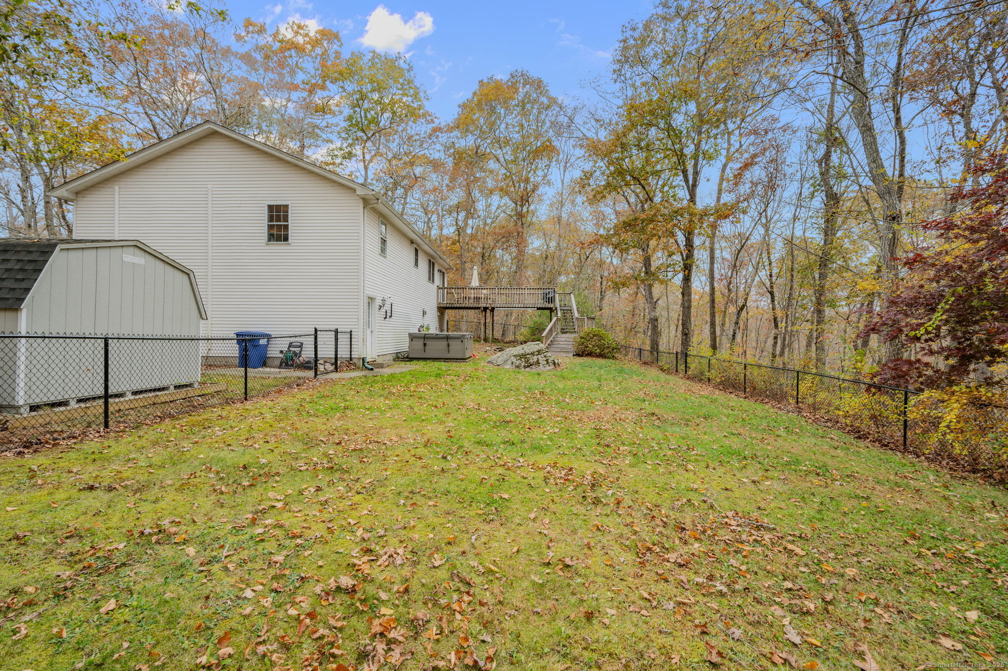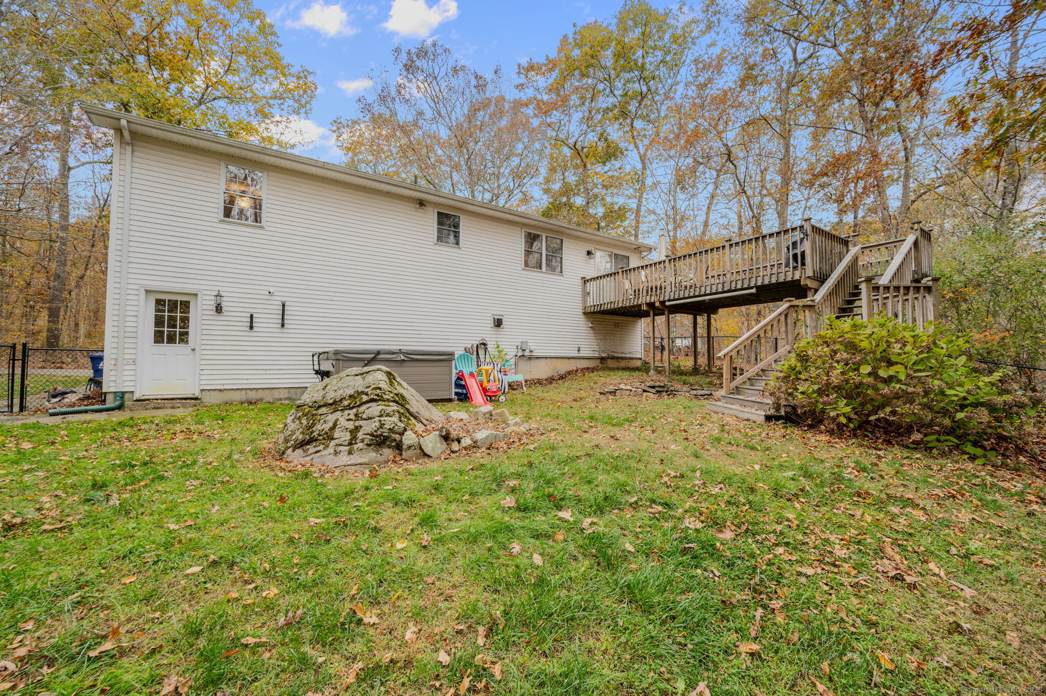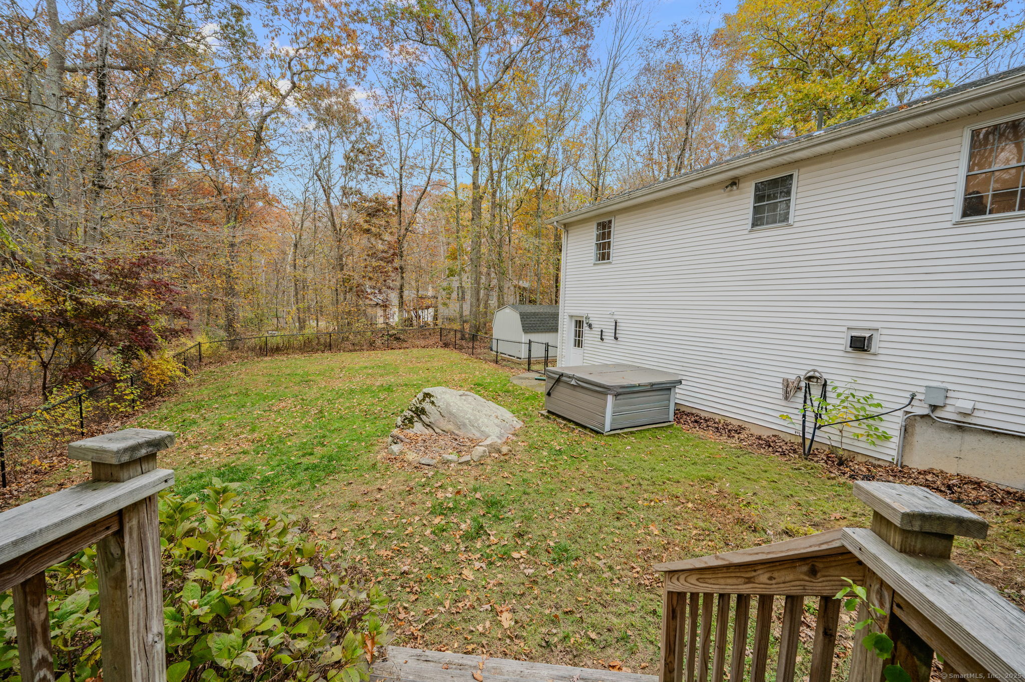 HIGHEST & BEST DUE BY MONDAY (11/3) AT 12 NOON. - It's the home you have been waiting for! Nestled at the end of a peaceful cul-de-sac and surrounded by trees, this beautifully maintained and move-in-ready residence sits back from the road offering privacy on nearly 2 acres. The spacious 3 bed, 2.5 bath home will not disappoint with its newer roof(Dec 2021), mini-split system(2023), hot tub(2022) with pull-down screen under the deck for hot tub movie nights, and fans and lighting fixtures updated within the past 4 yrs. Step inside to soaring vaulted ceilings and an open concept living & dining area, seamlessly connected to a 26x9' deck overlooking the fenced in backyard with plenty of nature. The kitchen boasts new vinyl flooring(2022), stainless appliances(2021), new kitchen sink (2023), a small convenient pantry and a large scenic window overlooking the woods. The primary suite includes two generous closets, - one a walk-in leading to a private bath. Two good sized additional bedrooms with ample closet space, another full bath, and more storage complete the main floor. Downstairs, enjoy a 20'x15' versatile finished heated space perfect for a rec room, gym, or family room, along with an updated half bath, laundry area, abundant storage, and a spacious garage with room for 2 cars and a workspace or storage. A whole house generator hook up is located on the side of the home, as well as a new shed (2022)! Close to Ledyard schools & major employers.