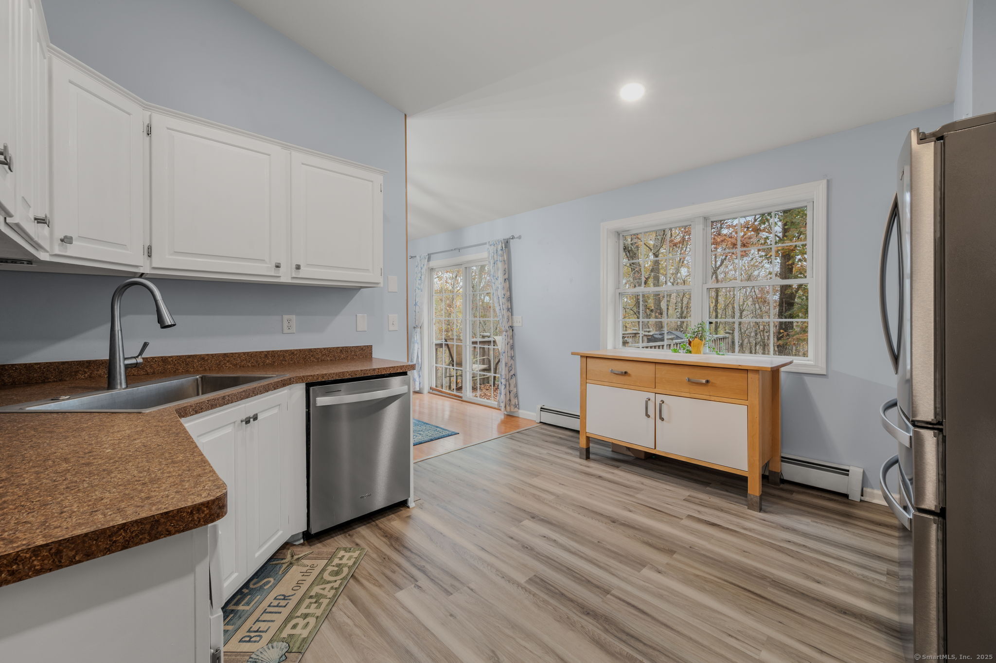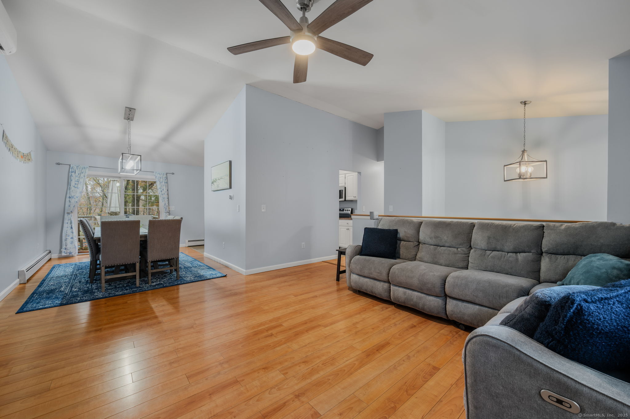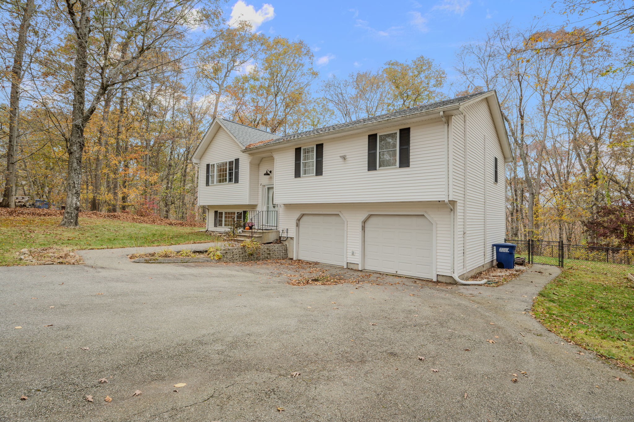 HIGHEST & BEST DUE BY MONDAY (11/3) AT 12 NOON. - It's the home you have been waiting for! Nestled at the end of a peaceful cul-de-sac and surrounded by trees, this beautifully maintained and move-in-ready residence sits back from the road offering privacy on nearly 2 acres. The spacious 3 bed, 2.5 bath home will not disappoint with its newer roof(Dec 2021), mini-split system(2023), hot tub(2022) with pull-down screen under the deck for hot tub movie nights, and fans and lighting fixtures updated within the past 4 yrs. Step inside to soaring vaulted ceilings and an open concept living & dining area, seamlessly connected to a 26x9' deck overlooking the fenced in backyard with plenty of nature. The kitchen boasts new vinyl flooring(2022), stainless appliances(2021), new kitchen sink (2023), a small convenient pantry and a large scenic window overlooking the woods. The primary suite includes two generous closets, - one a walk-in leading to a private bath. Two good sized additional bedrooms with ample closet space, another full bath, and more storage complete the main floor. Downstairs, enjoy a 20'x15' versatile finished heated space perfect for a rec room, gym, or family room, along with an updated half bath, laundry area, abundant storage, and a spacious garage with room for 2 cars and a workspace or storage. A whole house generator hook up is located on the side of the home, as well as a new shed (2022)! Close to Ledyard schools & major employers.
