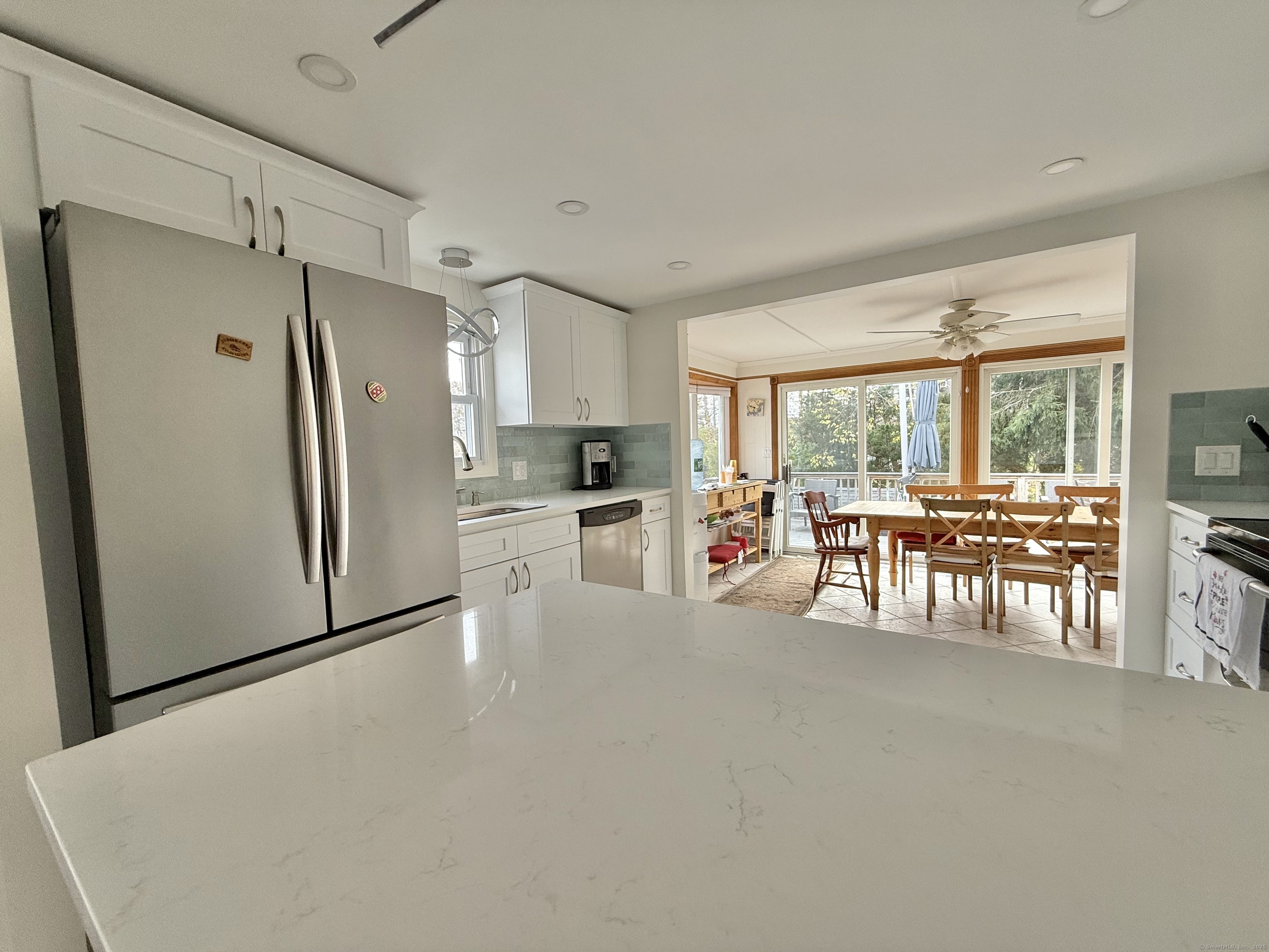 This charming, fully furnished 2-bedroom beach cottage is located in the desirable Indian Cove Beach Association. Available as an academic rental with some optional summer weeks, this cozy ranch offers comfort, convenience, and a true shoreline lifestyle. The home has been freshly painted and features new laminate flooring throughout. Inside, you'll find a welcoming layout with a bright living room, a separate dining area, and an updated kitchen with modern stainless steel appliances-including a new refrigerator, full-size stove, dishwasher, built-in microwave, and in-home stackable washer and dryer. Step through the dining room sliders onto the deck, the perfect place to unwind and enjoy the fresh sea air. From there, it's just a short stroll to Indian Cove's private beach. Downtown Guilford, local shops, and restaurants are only 5 minutes away, with easy access to I-95 and just 20 minutes to Yale New Haven. Whether you're in between homes, on a work or academic assignment, or simply looking for a peaceful getaway, this delightful cottage offers the best of coastal Connecticut living.